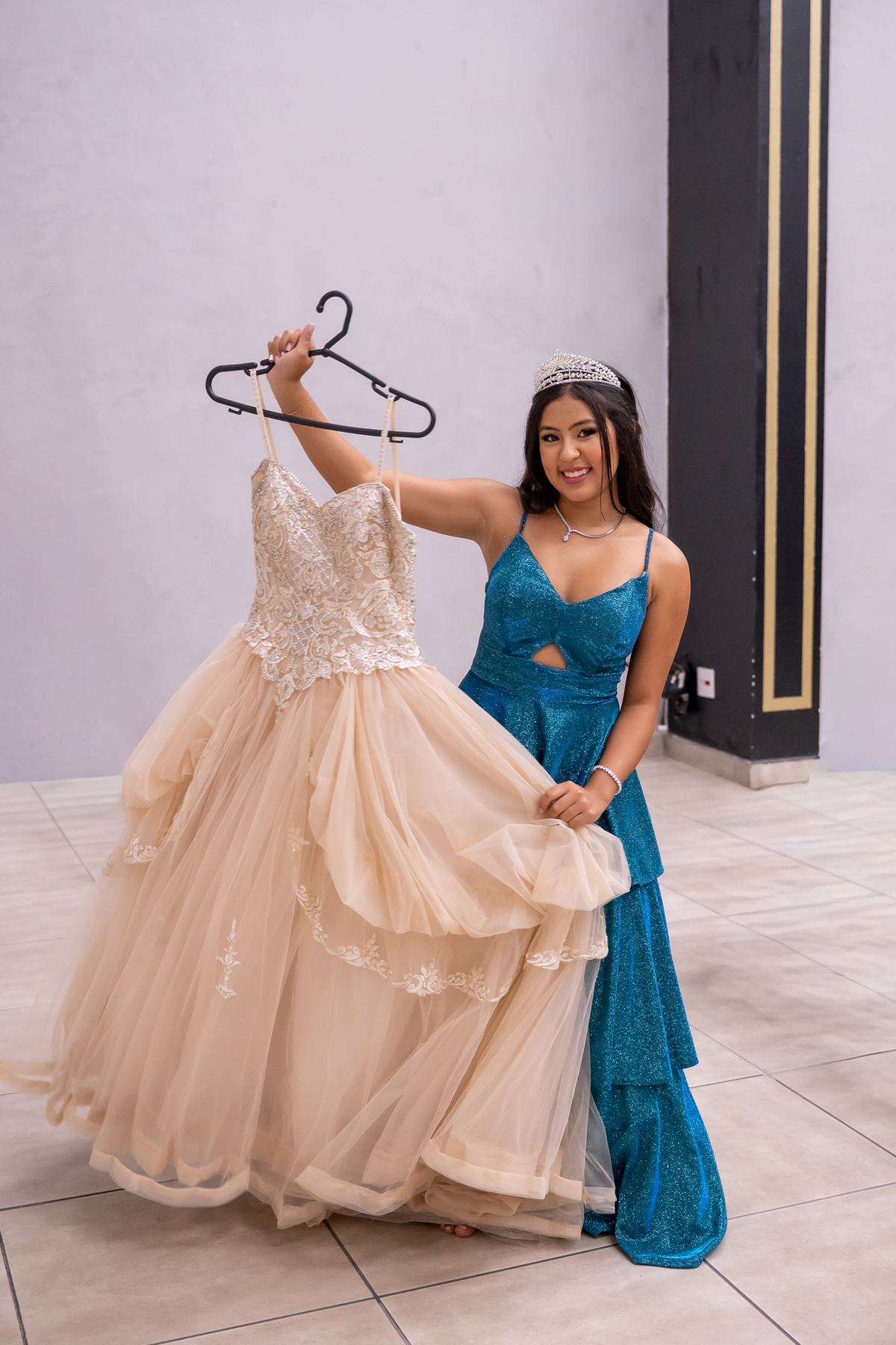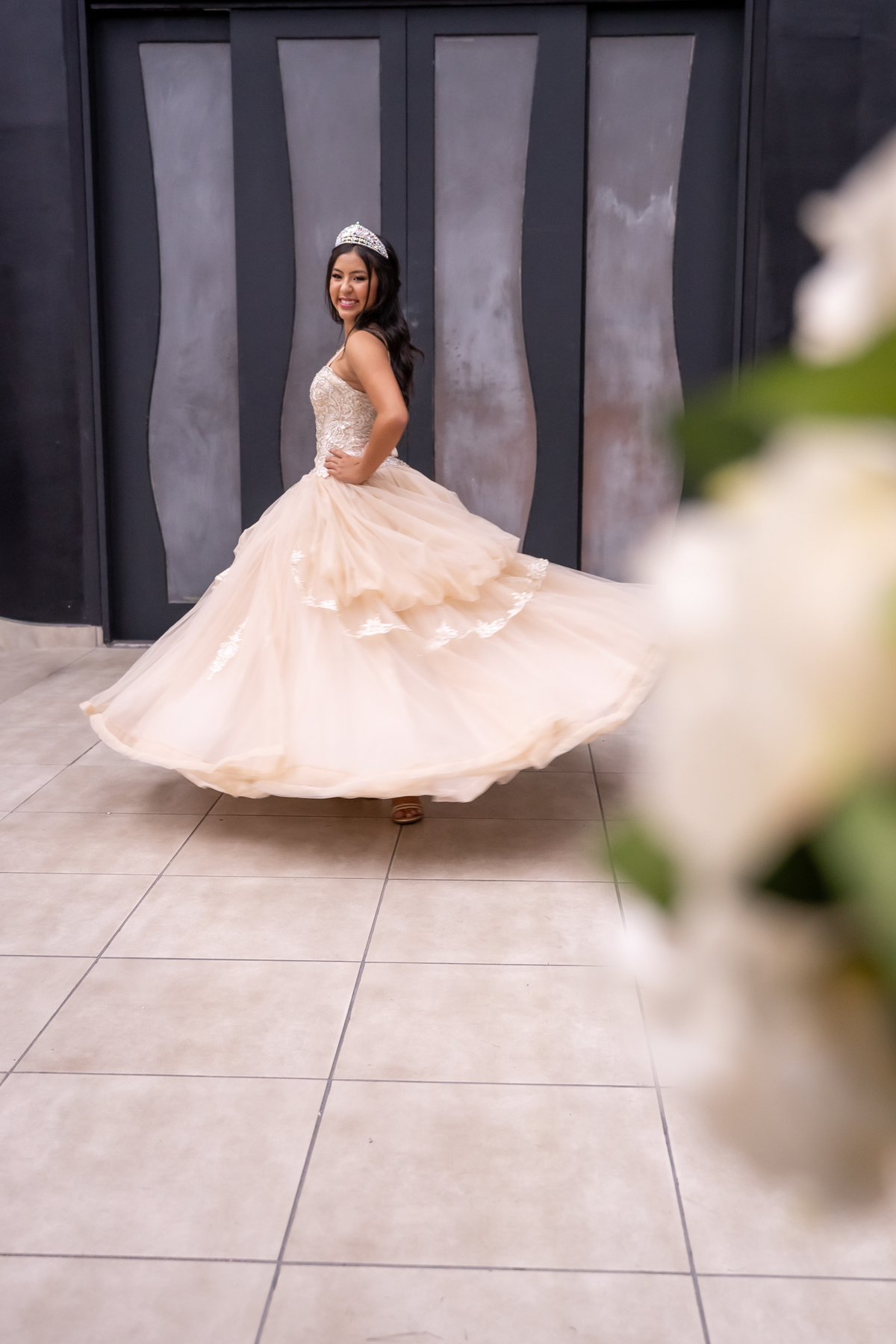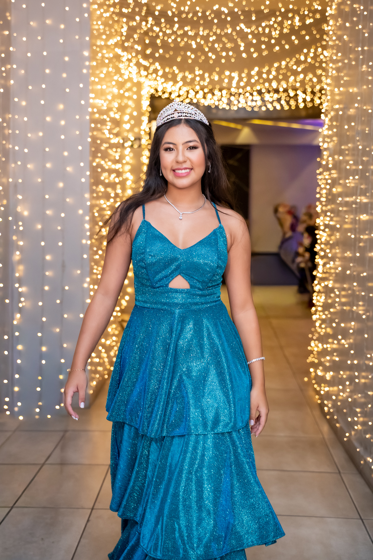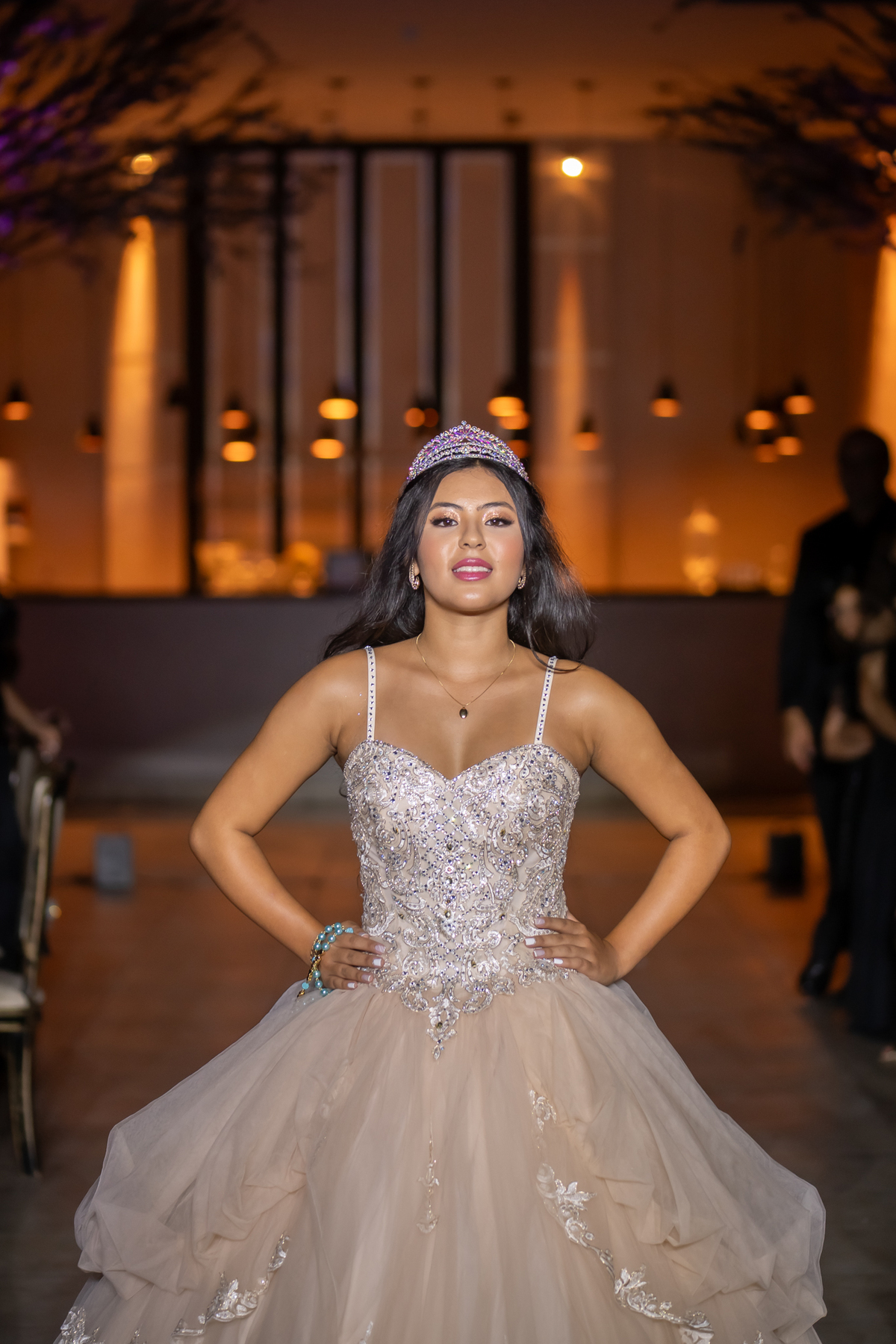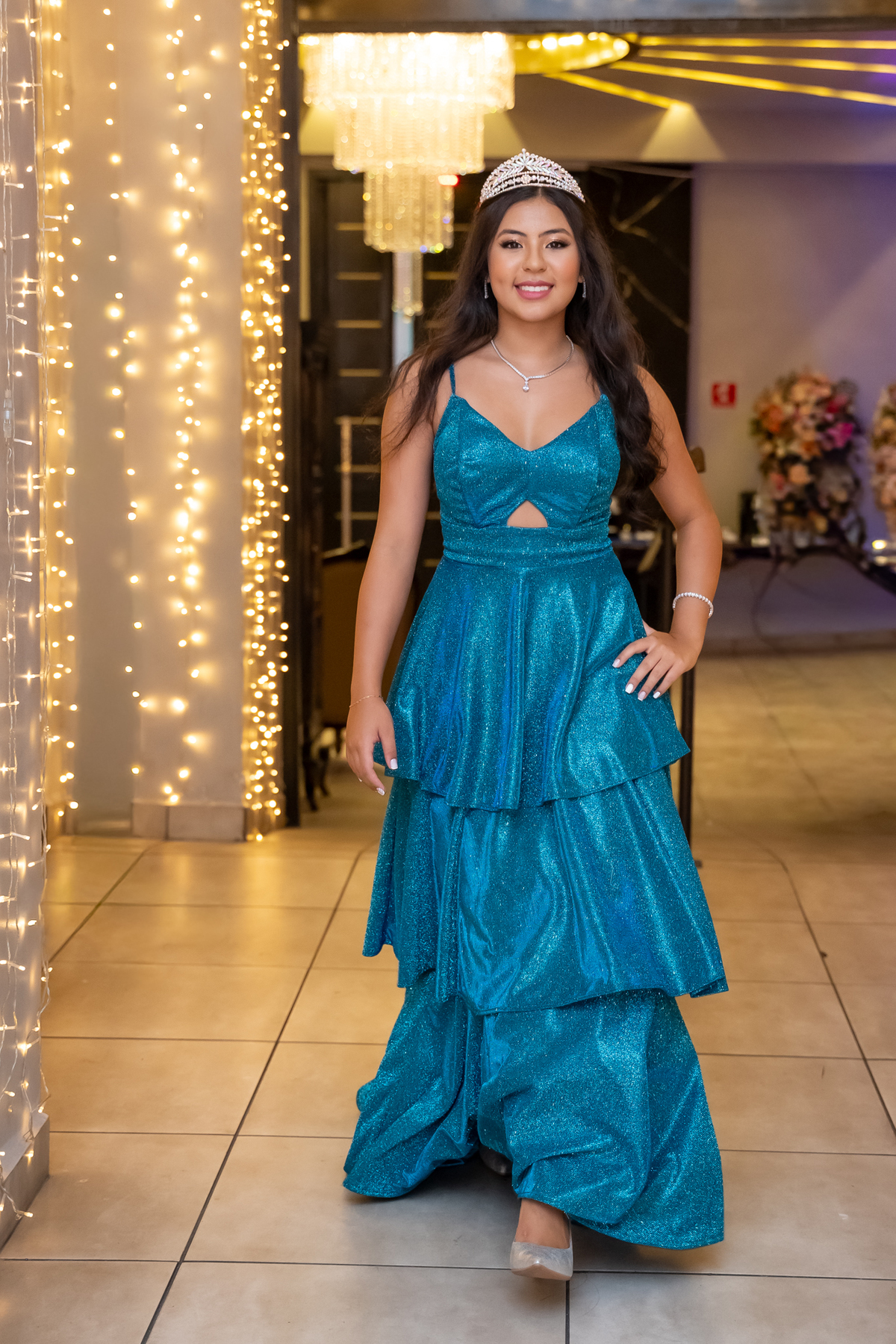 Sua primeira entrada foi simplesmente emocionante: vestida com o traje da valsa, ela desceu as escadas do Salão Sarah Soleil, enquanto seus pais a aguardavam para dar início à cerimônia. Um momento cheio de significado, que arrancou aplausos e olhares emocionados. Em seguida, a pista se transformou em palco para uma linda sequência de valsas, dançadas com os pais, o irmão, o tio e o avô, celebrando o amor, a família e essa nova fase da vida.