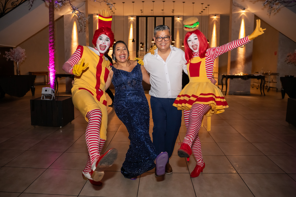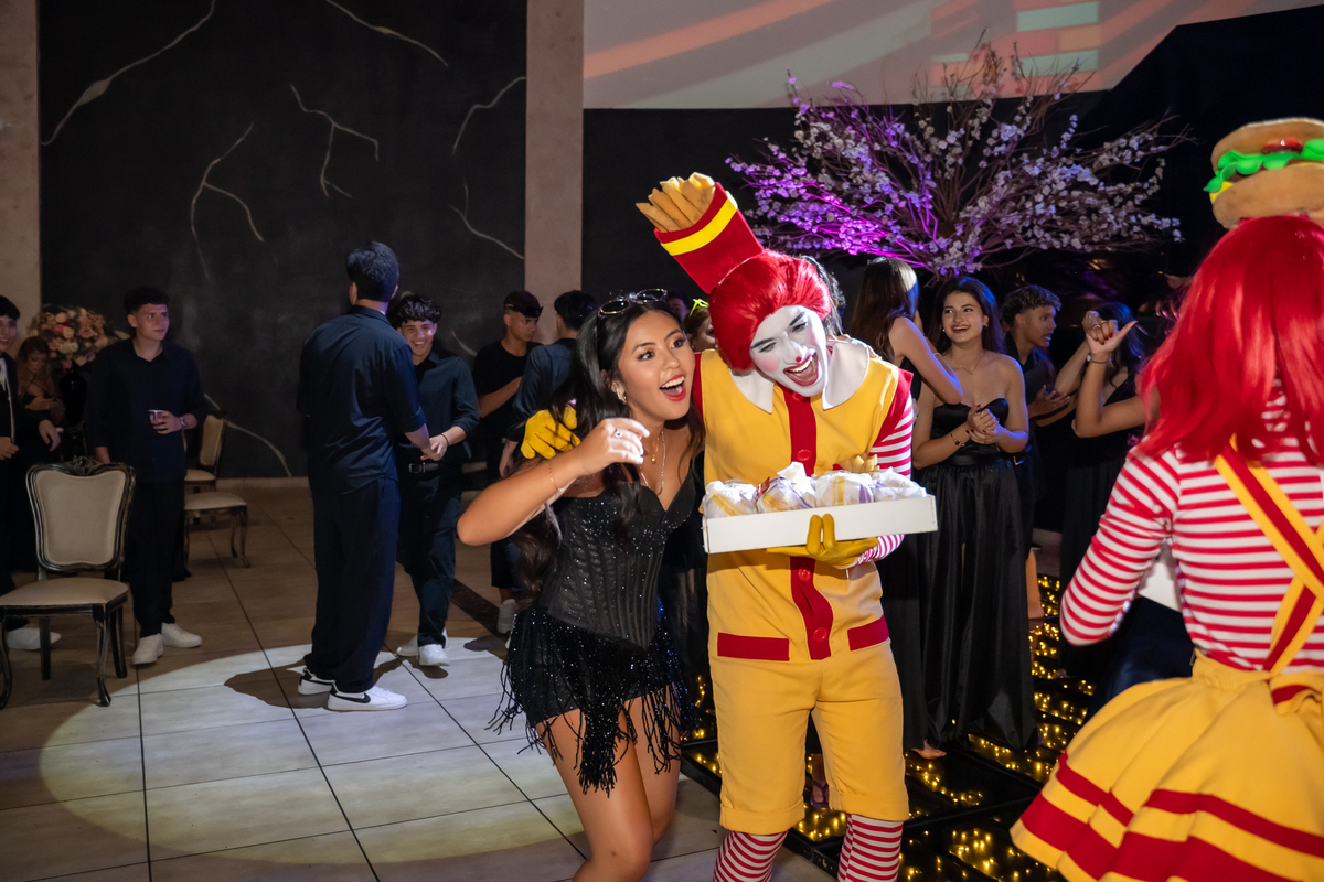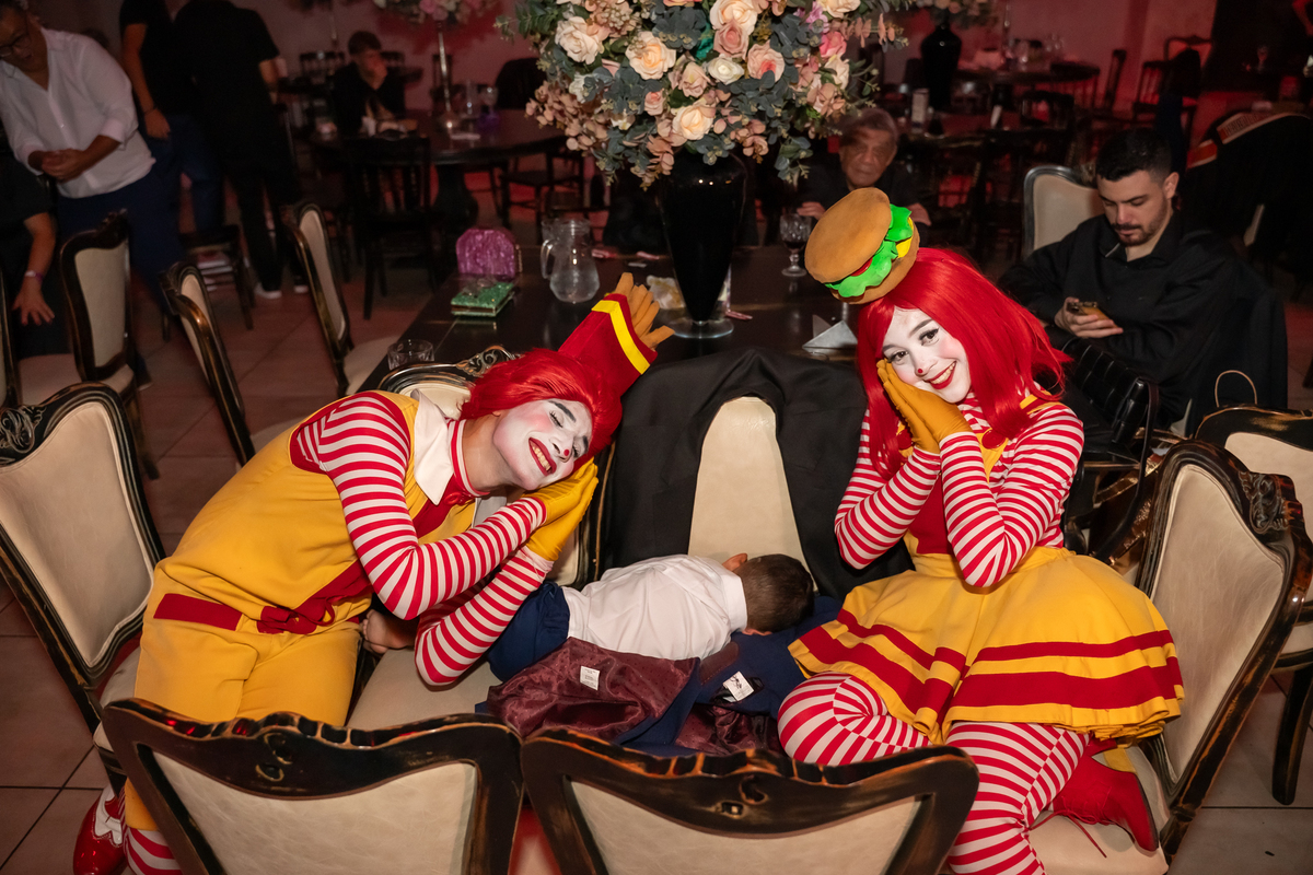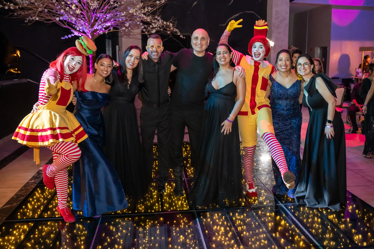 A festa seguiu com ainda mais energia quando uma super banda assumiu o palco e agitou a noite. Vitória não resistiu e subiu ao palco para dançar, mostrando toda sua alegria e espontaneidade. De repente, a animação ganhou um toque especial com a chegada da turma do Ronald McDonald’s, levando lanche para todos os convidados. Eles interagiram, tiraram fotos com a galera e deixaram o clima ainda mais descontraído.