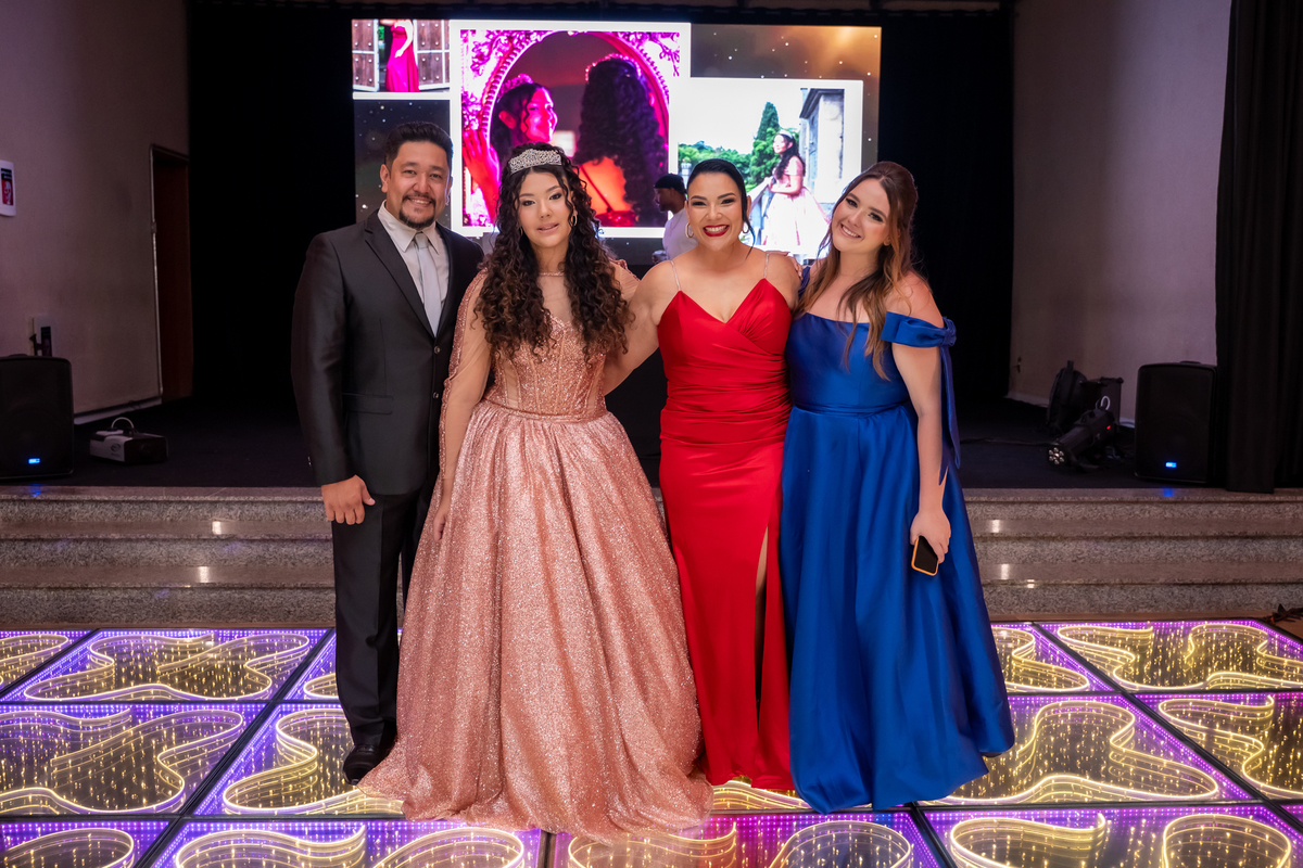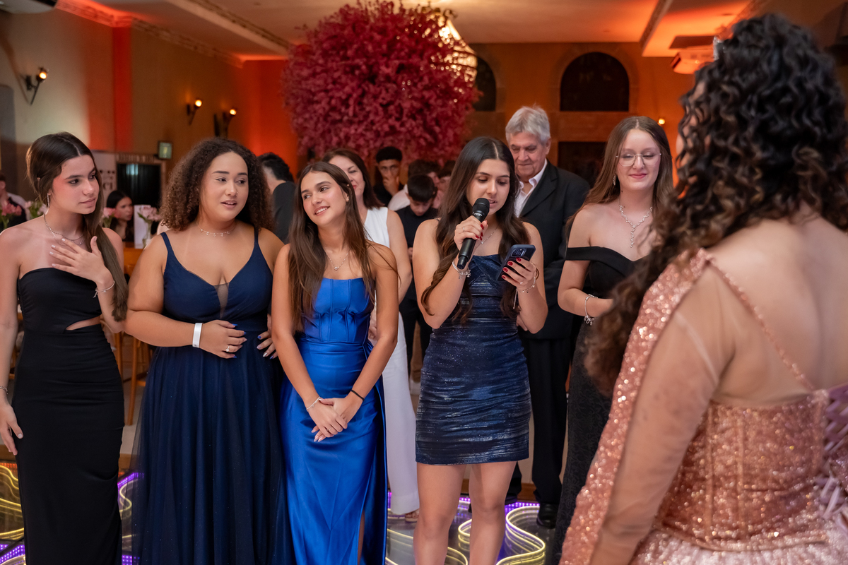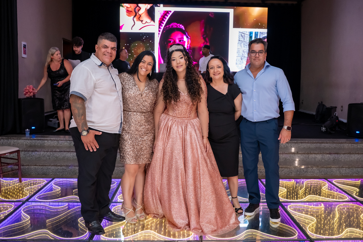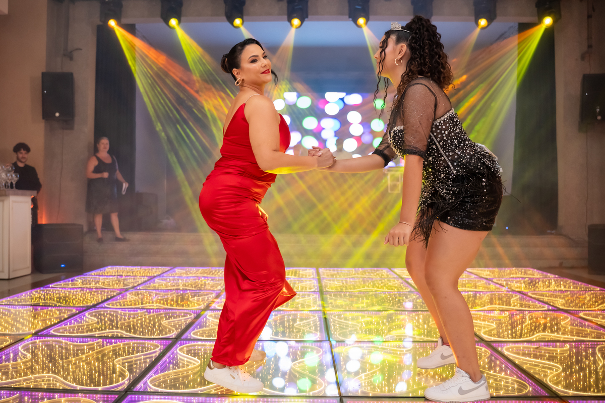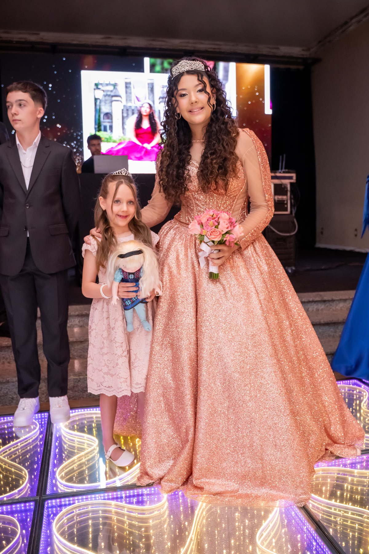 A animação tomou conta da festa graças aos amigos e familiares, que capricharam nos sorrisos, nas danças e na alegria compartilhada. Rafaela brilhou ao se apresentar lindamente ao lado de suas amigas, dançando e vivendo cada momento intensamente. Um dos pontos mais emocionantes da noite foi quando a mamãe Bianca se jogou na pista ao lado da filha, dançando juntas em um momento espontâneo, verdadeiro e inesquecível — um registro de amor que ficará para sempre na memória.