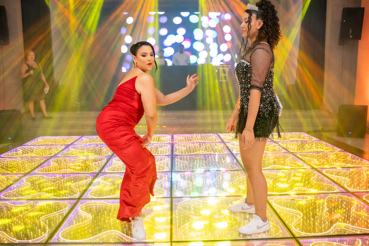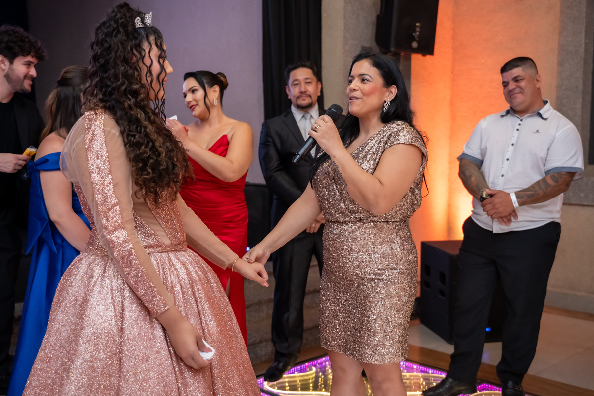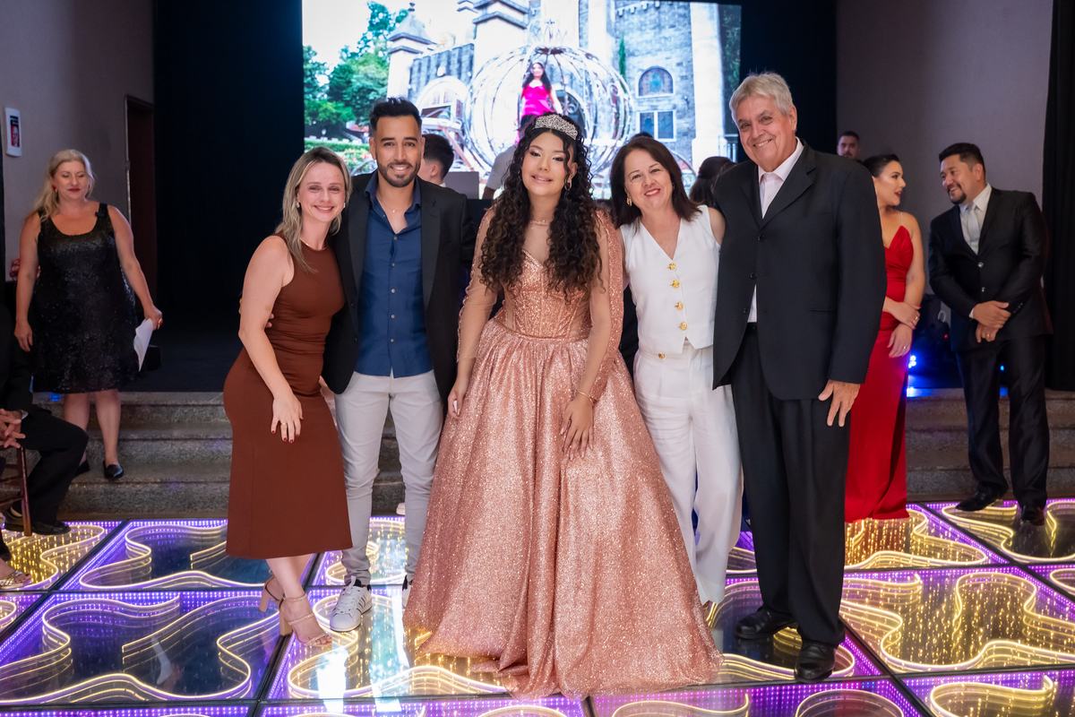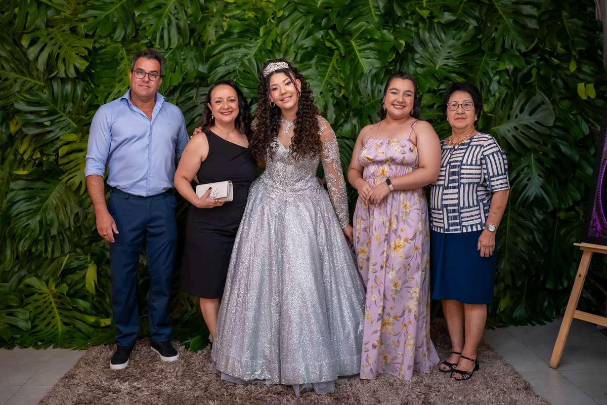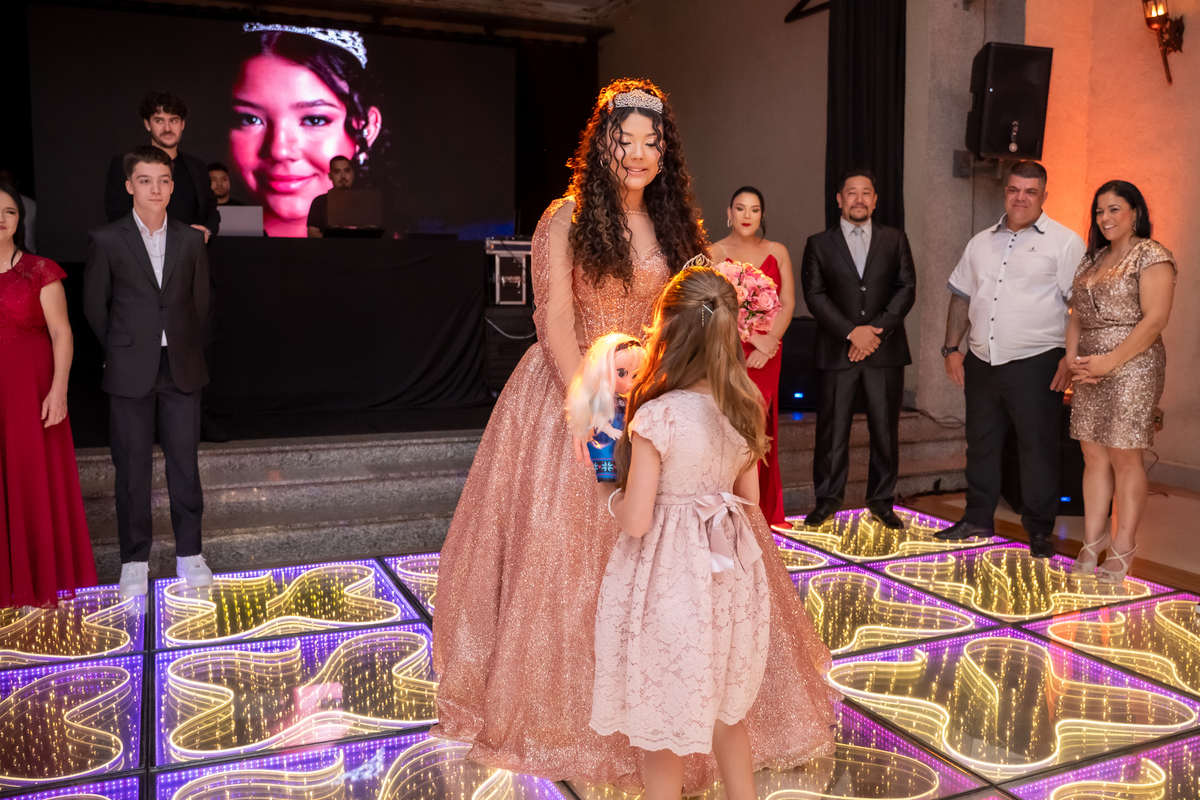 A animação tomou conta da festa graças aos amigos e familiares, que capricharam nos sorrisos, nas danças e na alegria compartilhada. Rafaela brilhou ao se apresentar lindamente ao lado de suas amigas, dançando e vivendo cada momento intensamente. Um dos pontos mais emocionantes da noite foi quando a mamãe Bianca se jogou na pista ao lado da filha, dançando juntas em um momento espontâneo, verdadeiro e inesquecível — um registro de amor que ficará para sempre na memória.
