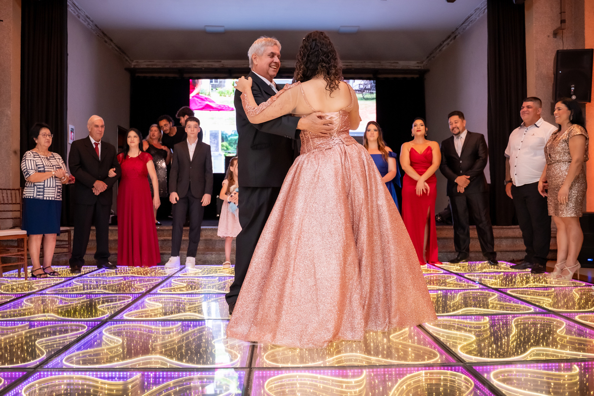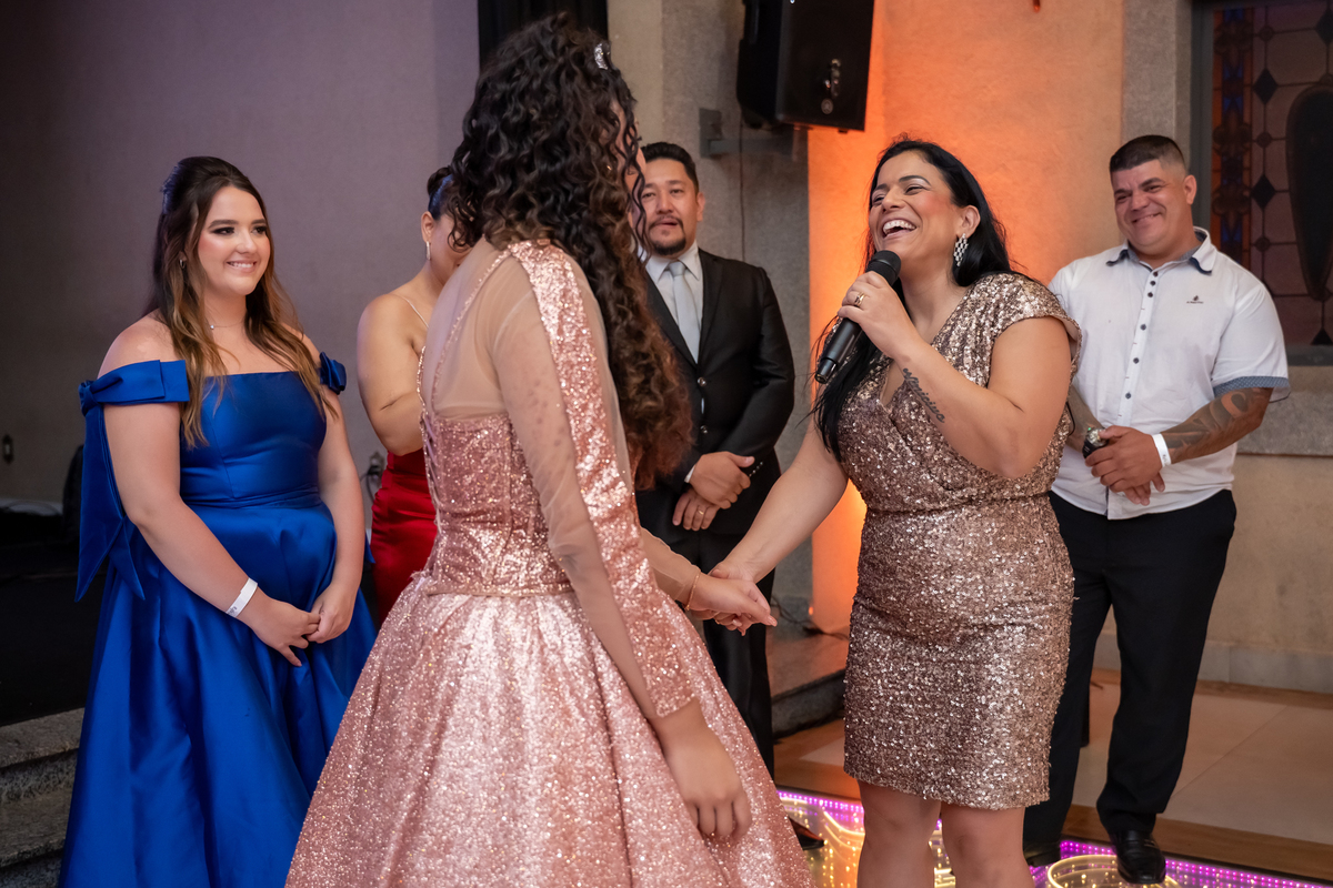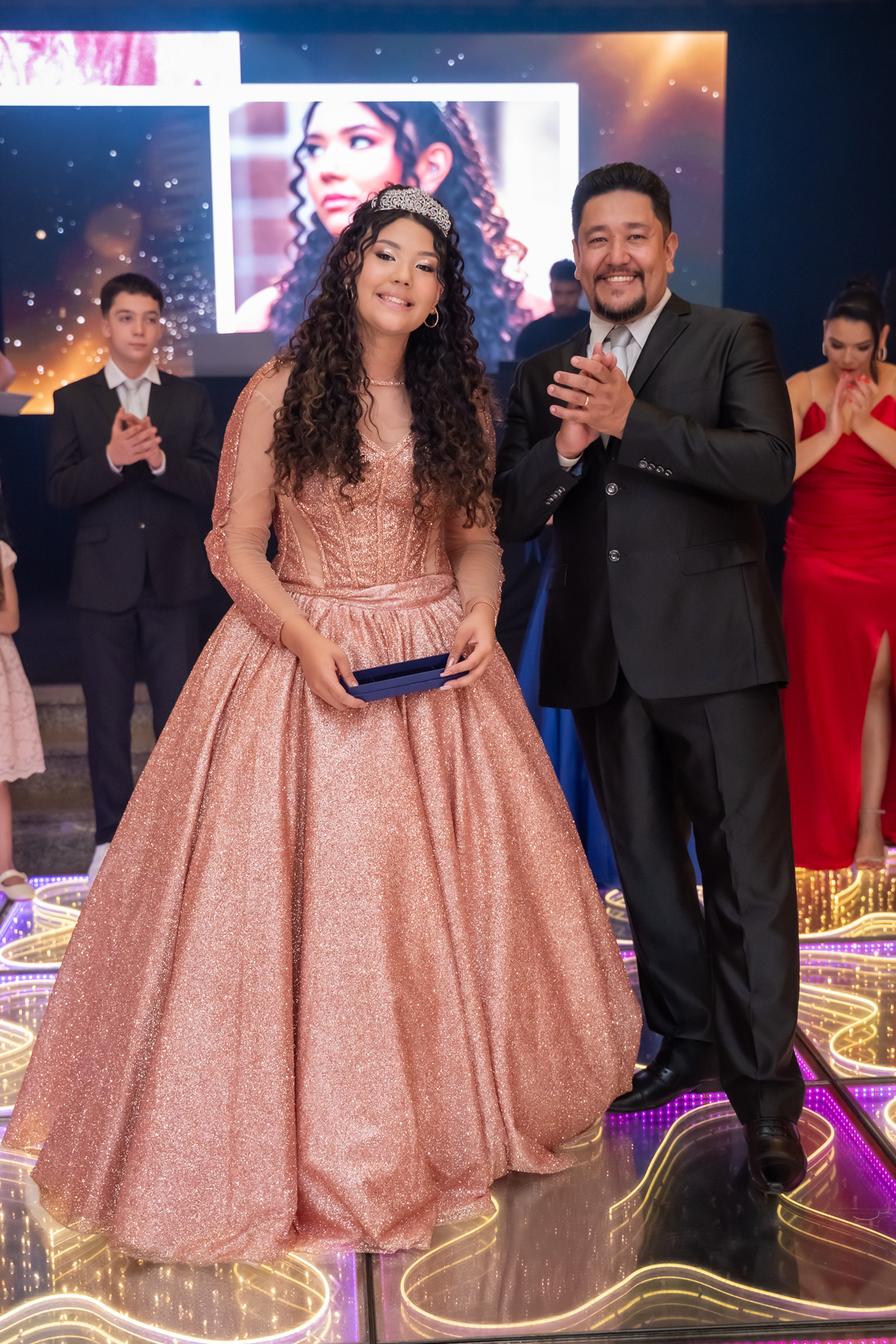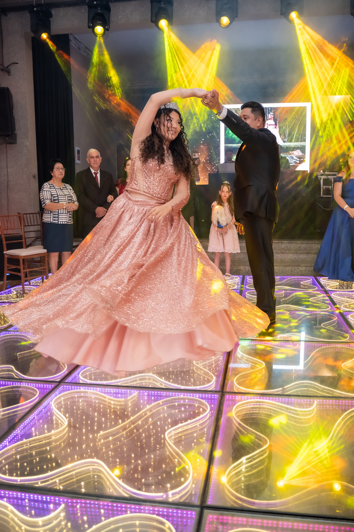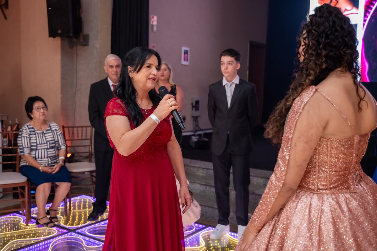 A animação tomou conta da festa graças aos amigos e familiares, que capricharam nos sorrisos, nas danças e na alegria compartilhada. Rafaela brilhou ao se apresentar lindamente ao lado de suas amigas, dançando e vivendo cada momento intensamente. Um dos pontos mais emocionantes da noite foi quando a mamãe Bianca se jogou na pista ao lado da filha, dançando juntas em um momento espontâneo, verdadeiro e inesquecível — um registro de amor que ficará para sempre na memória.