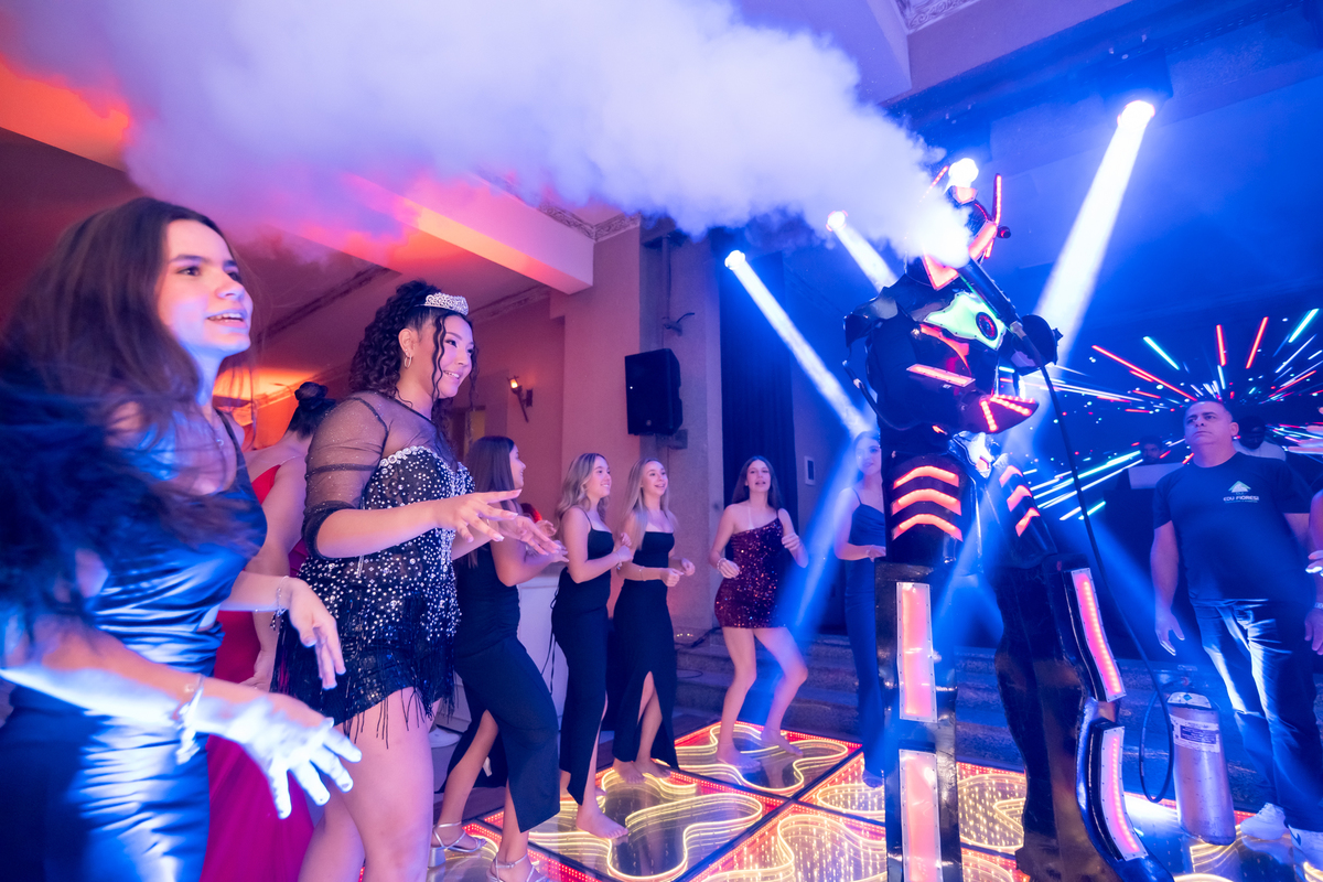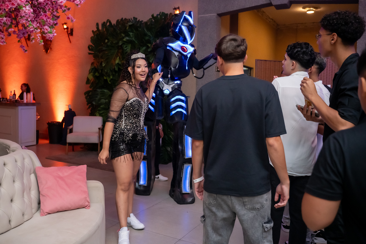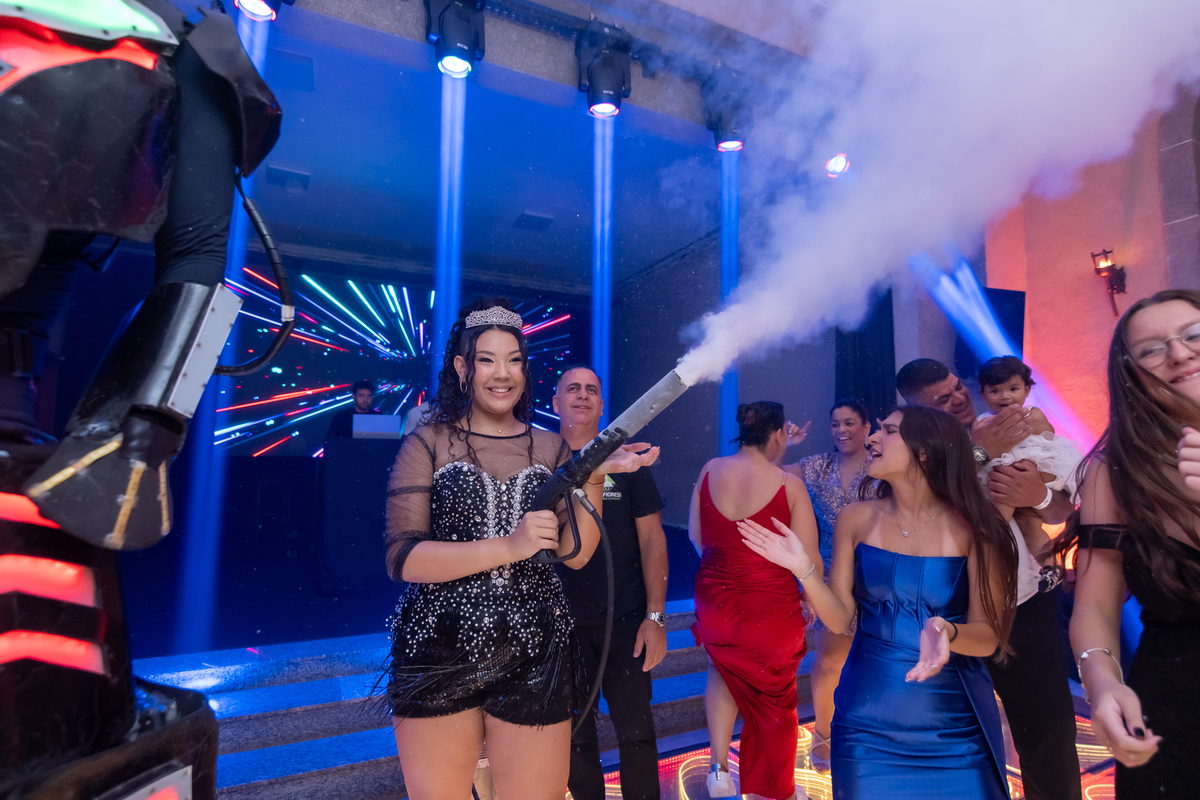 A decoração, assinada pelo talentoso Helder, trouxe ainda mais beleza e personalidade aos espaços do castelo. A pista de dança ficou sob o comando do animado DJ Igor Mezaki, que soube conduzir a energia da festa com muita alegria e envolvimento. Os drinks, preparados pela Liquid Coquetéis, encantaram os convidados, enquanto a chegada do Robozão de LED, levado pelo DJ Edu Fioresi, surpreendeu e elevou ainda mais o clima da celebração.