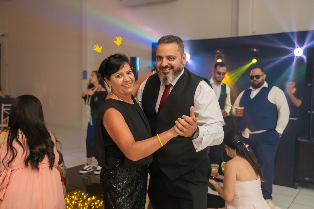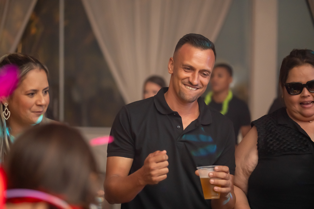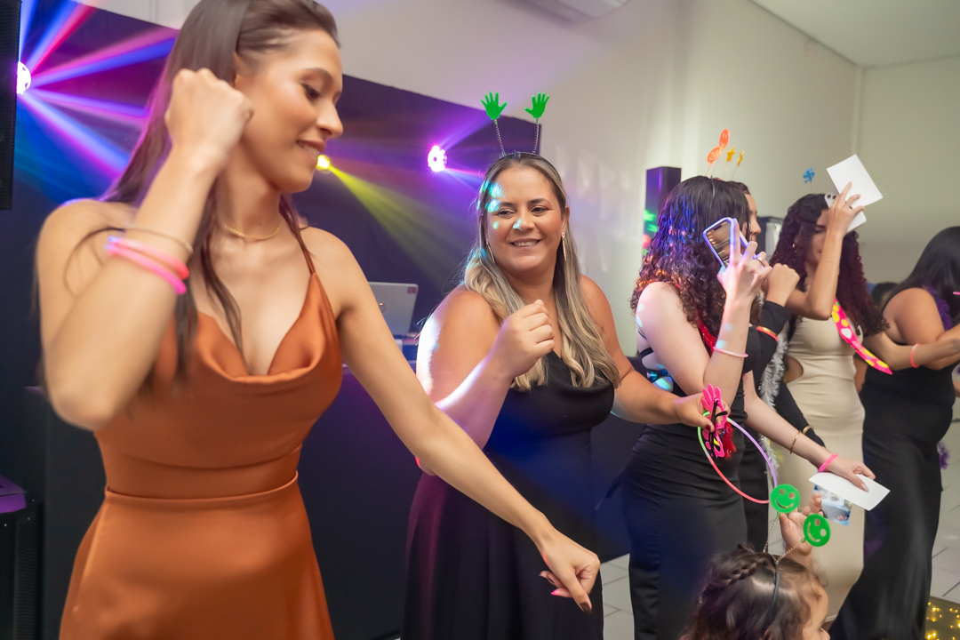 A pista ferveu com o comando do DJ Marlon Eventos, garantindo animação do começo ao fim. A Virtual Photo Cabine registrou momentos divertidos e espontâneos, e os drinks da The Martins Drinks deram um toque especial à celebração.