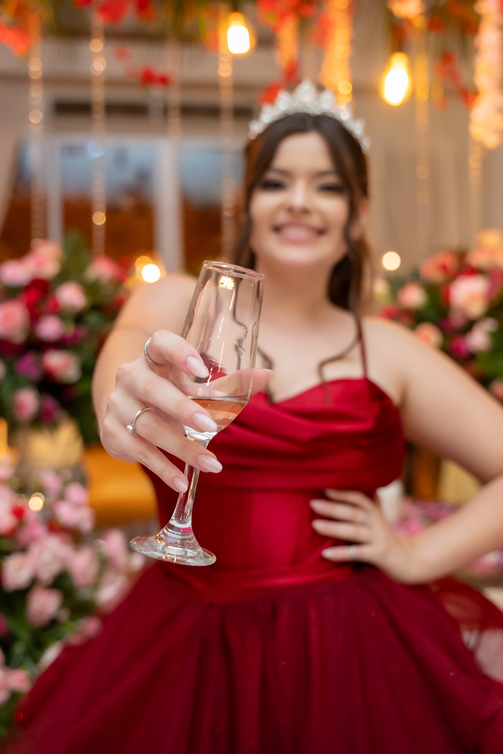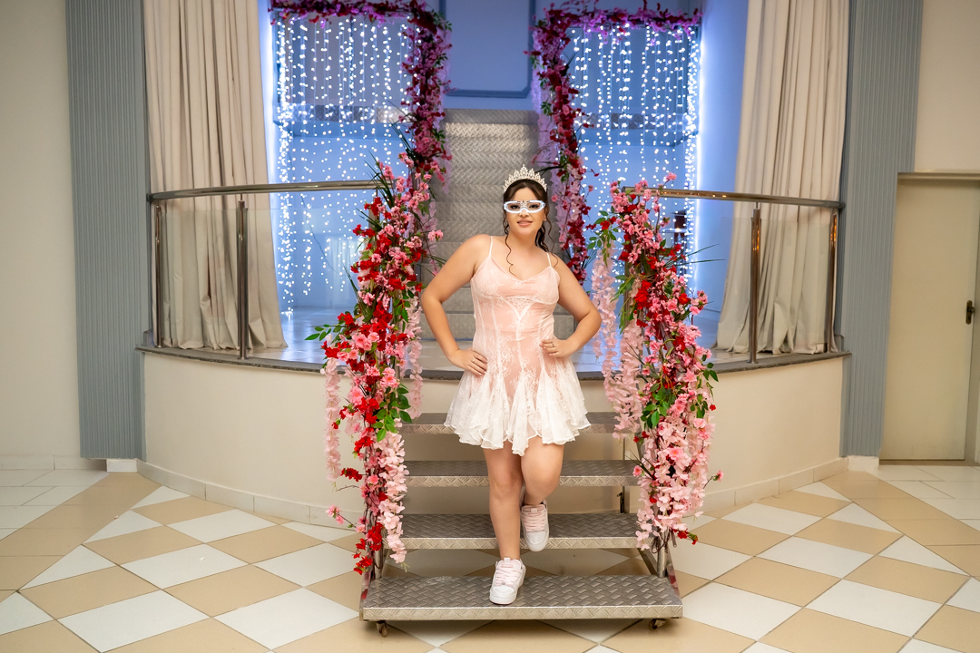 Uma noite preparada com muito carinho, onde cada detalhe refletia sua alegria, leveza e personalidade marcante.
