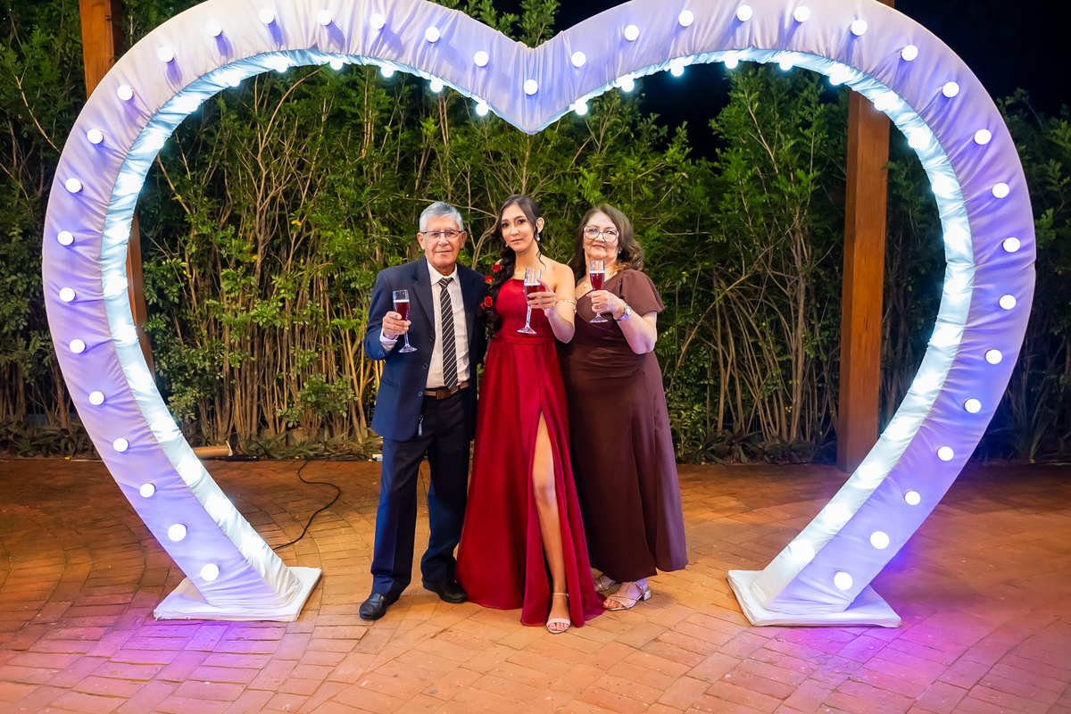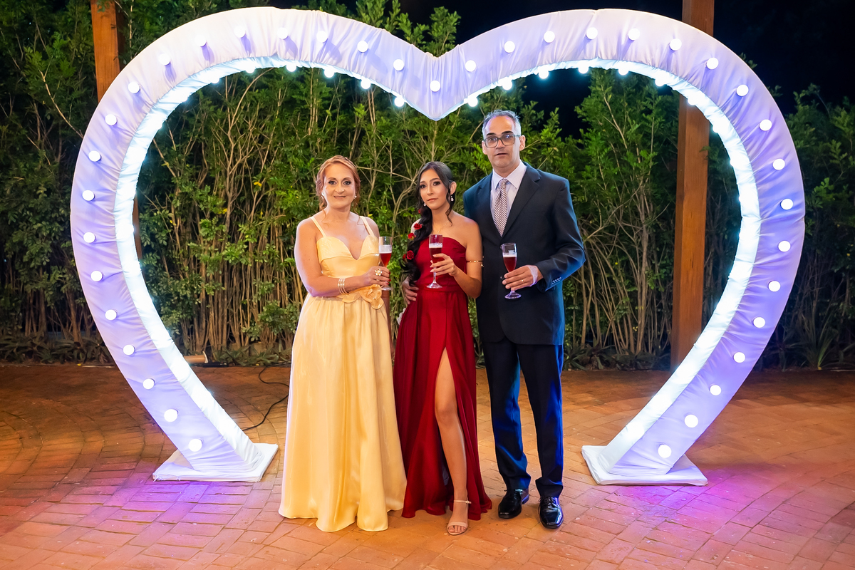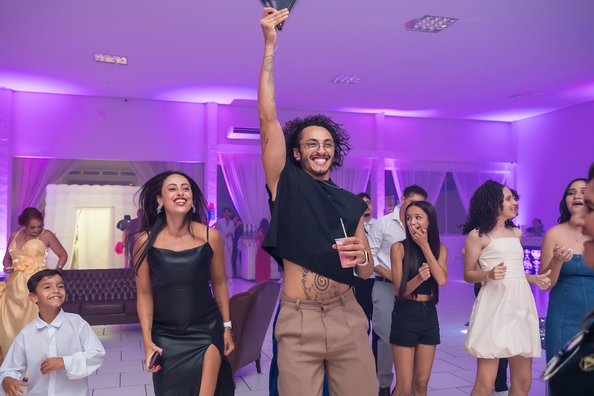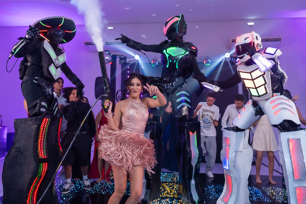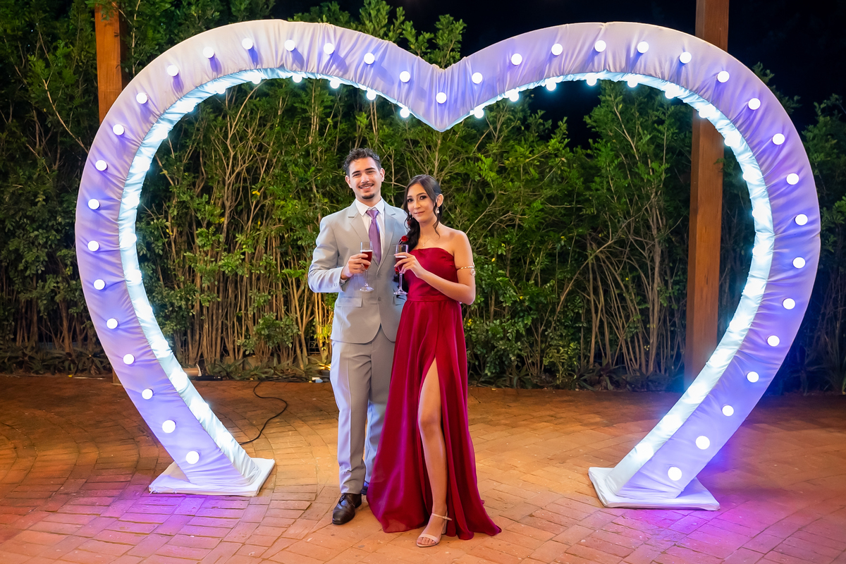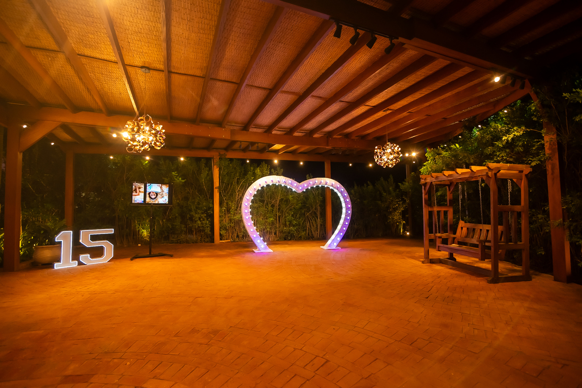 A pista ferveu sob o comando do @djmarcioeventos_jundiai, com uma estrutura incrível fornecida pela @arlete_eventos, incluindo a deslumbrante Pista Galáxia, o coração gigante iluminado (cenário de fotos lindas!), o número 15 e robôs de LED que deram um show à parte!
