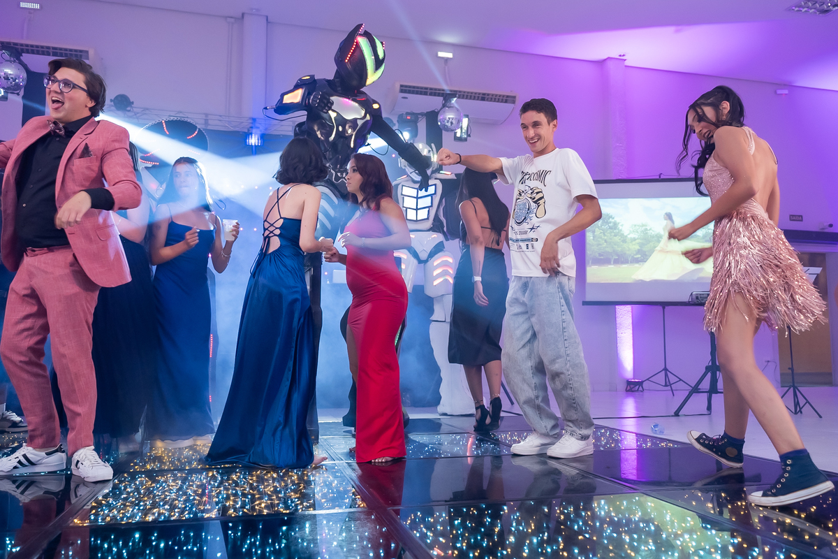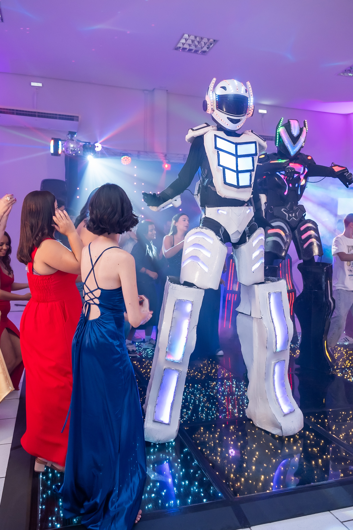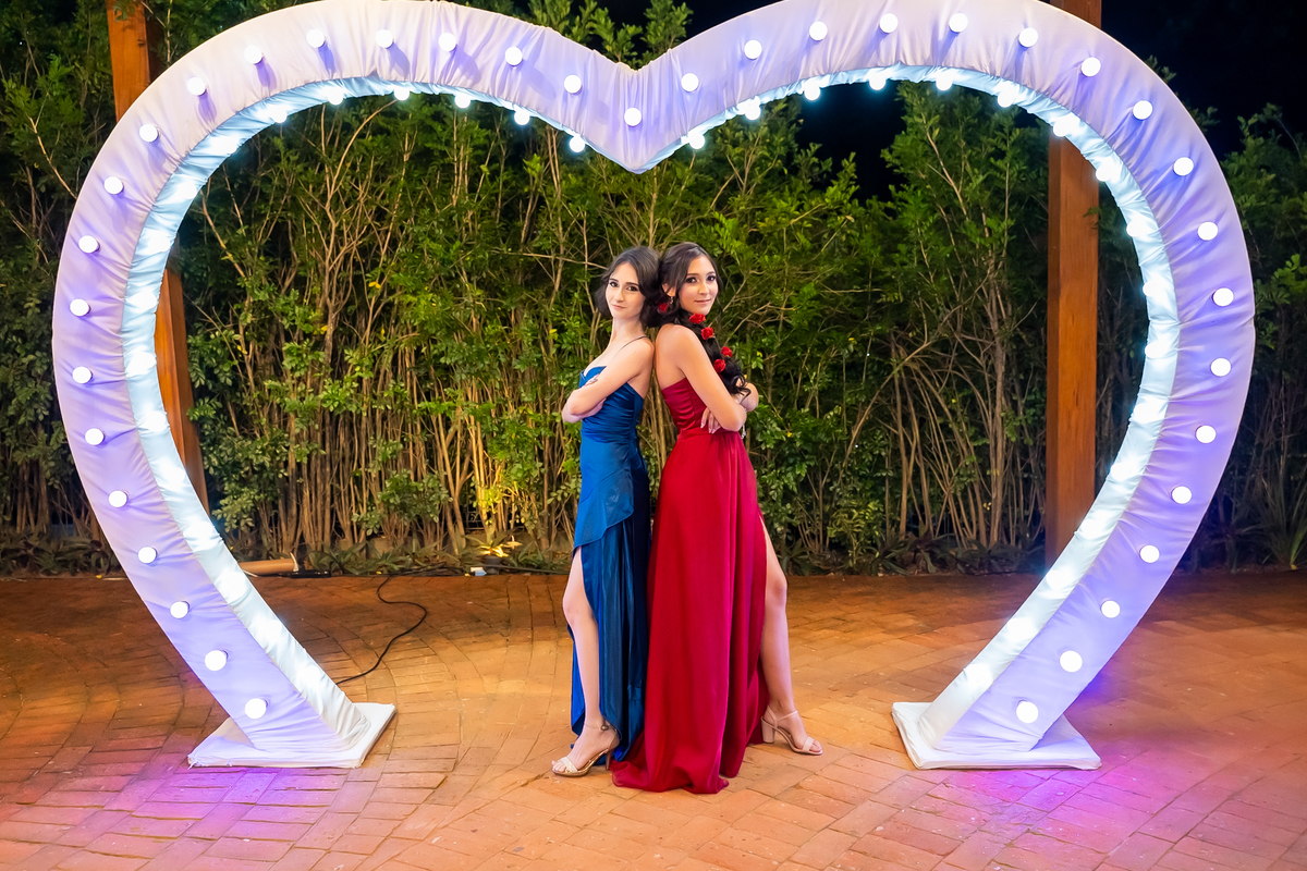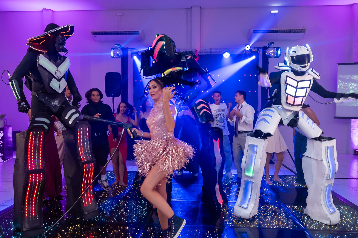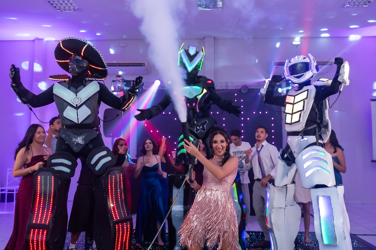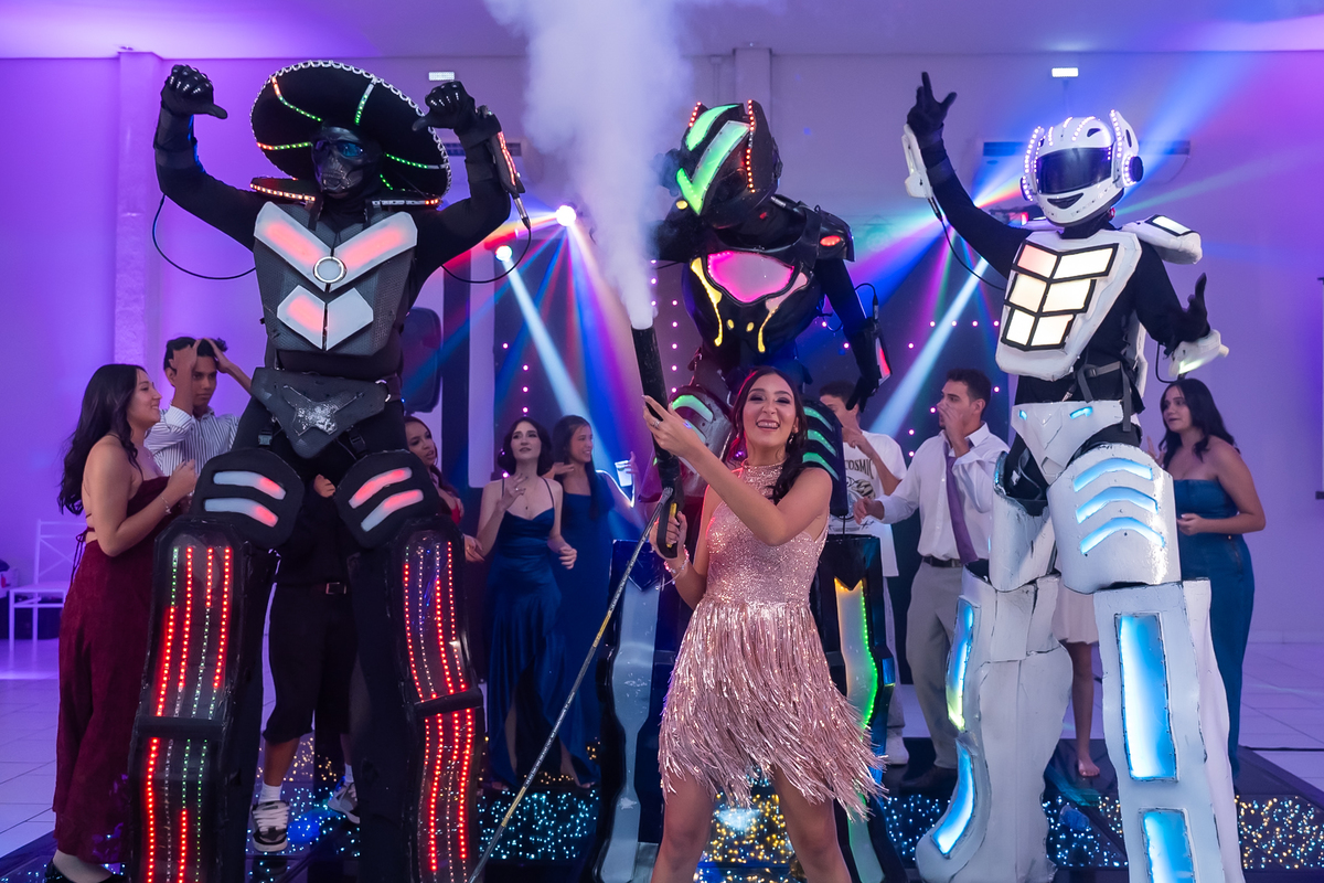 A pista ferveu sob o comando do @djmarcioeventos_jundiai, com uma estrutura incrível fornecida pela @arlete_eventos, incluindo a deslumbrante Pista Galáxia, o coração gigante iluminado (cenário de fotos lindas!), o número 15 e robôs de LED que deram um show à parte!