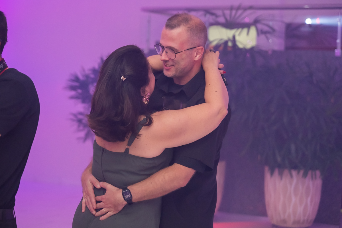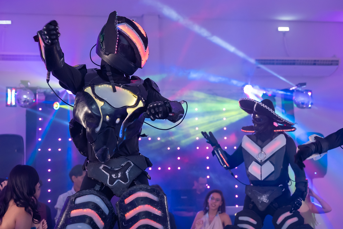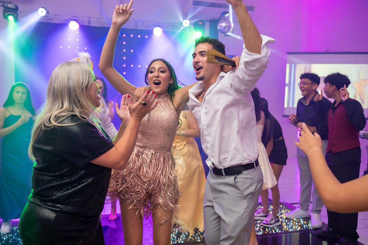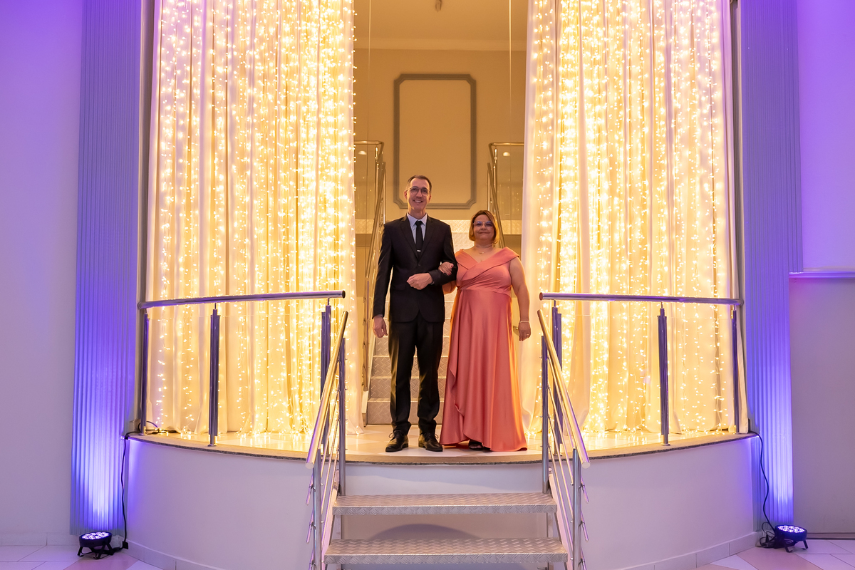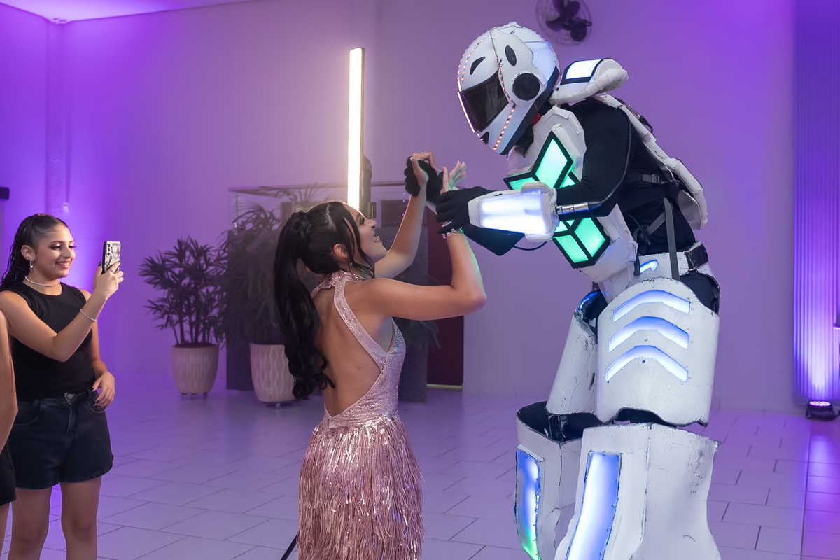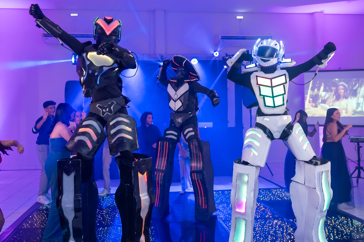 A pista ferveu sob o comando do @djmarcioeventos_jundiai, com uma estrutura incrível fornecida pela @arlete_eventos, incluindo a deslumbrante Pista Galáxia, o coração gigante iluminado (cenário de fotos lindas!), o número 15 e robôs de LED que deram um show à parte!