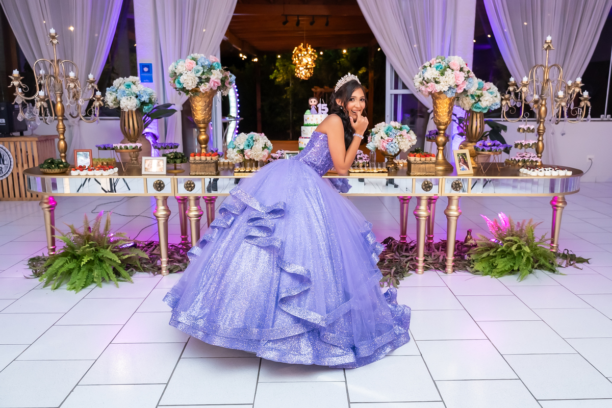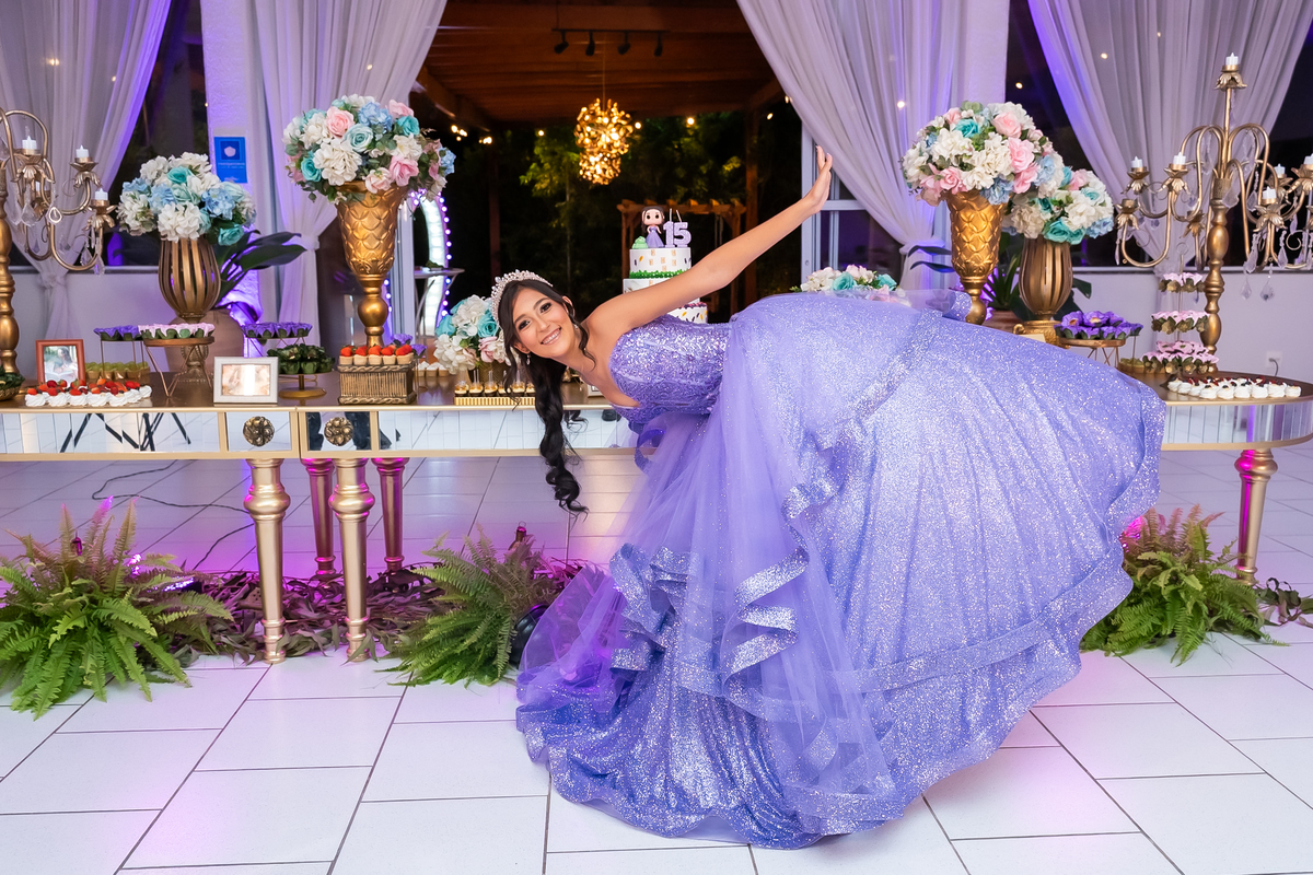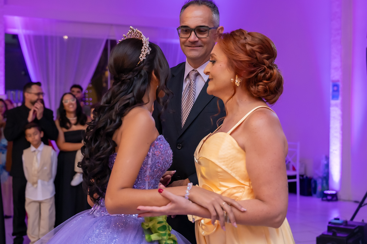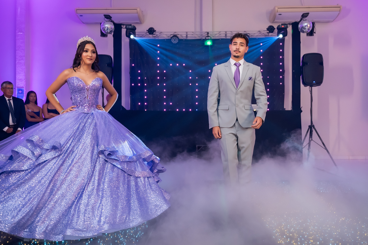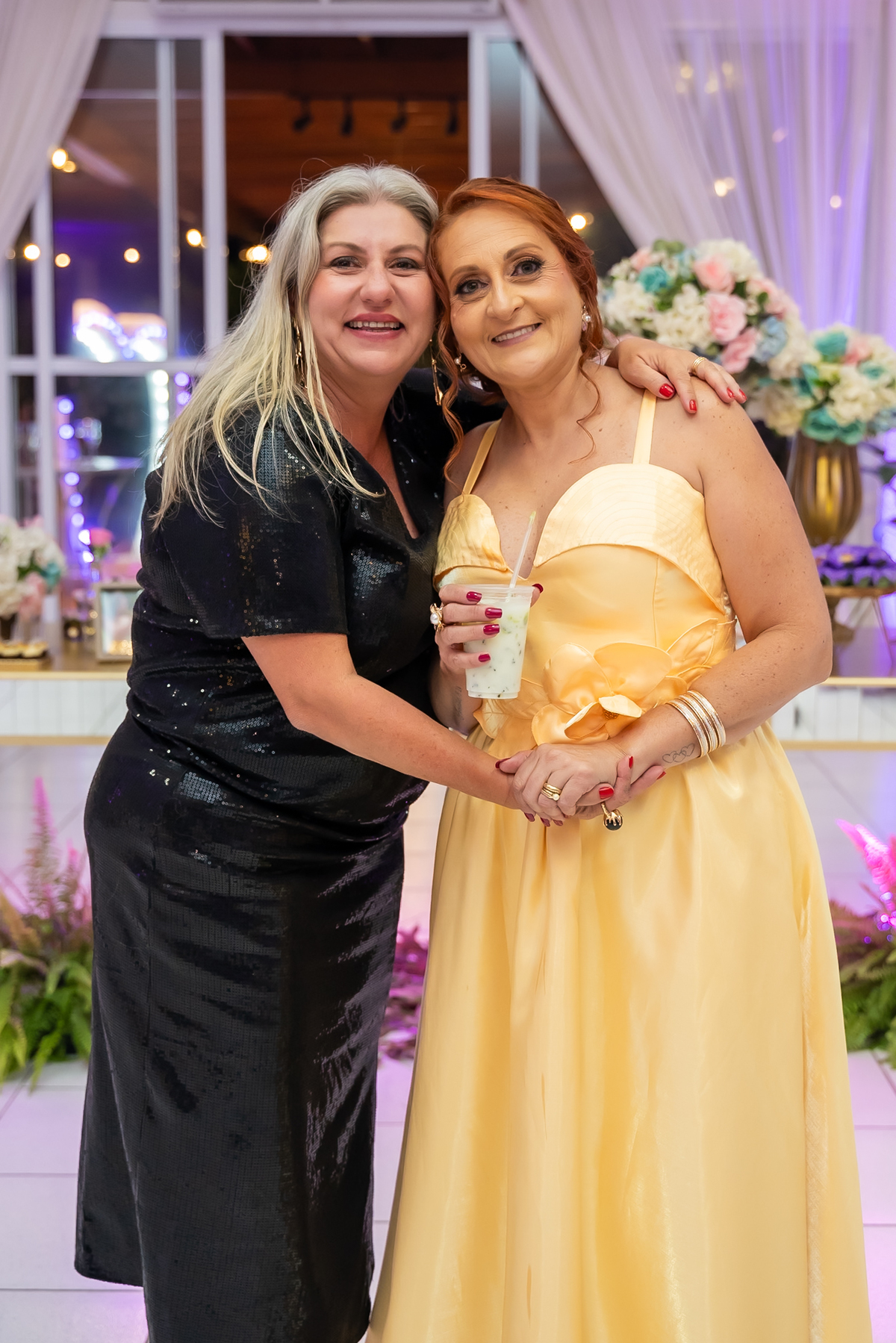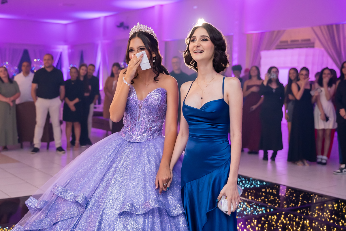 O @atelier.magali foi responsável pelo look da Bella durante a recepção e também pelos looks da mamãe Arlete, deixando ambas elegantes e deslumbrantes. A beleza da Arlete ficou ainda mais especial com a produção de cabelo e maquiagem assinada por @arecelisartori. Já toda a produção de cabelo, maquiagem e vestidos de valsa e balada da Bella ficou sob os cuidados de @edergouveia e @atelieedergouveia — simplesmente perfeitos!