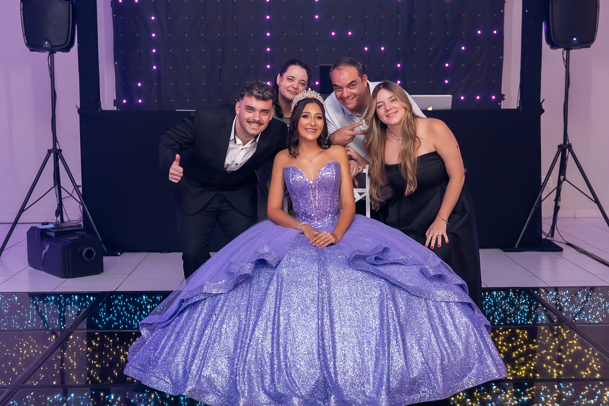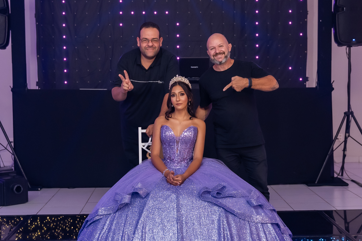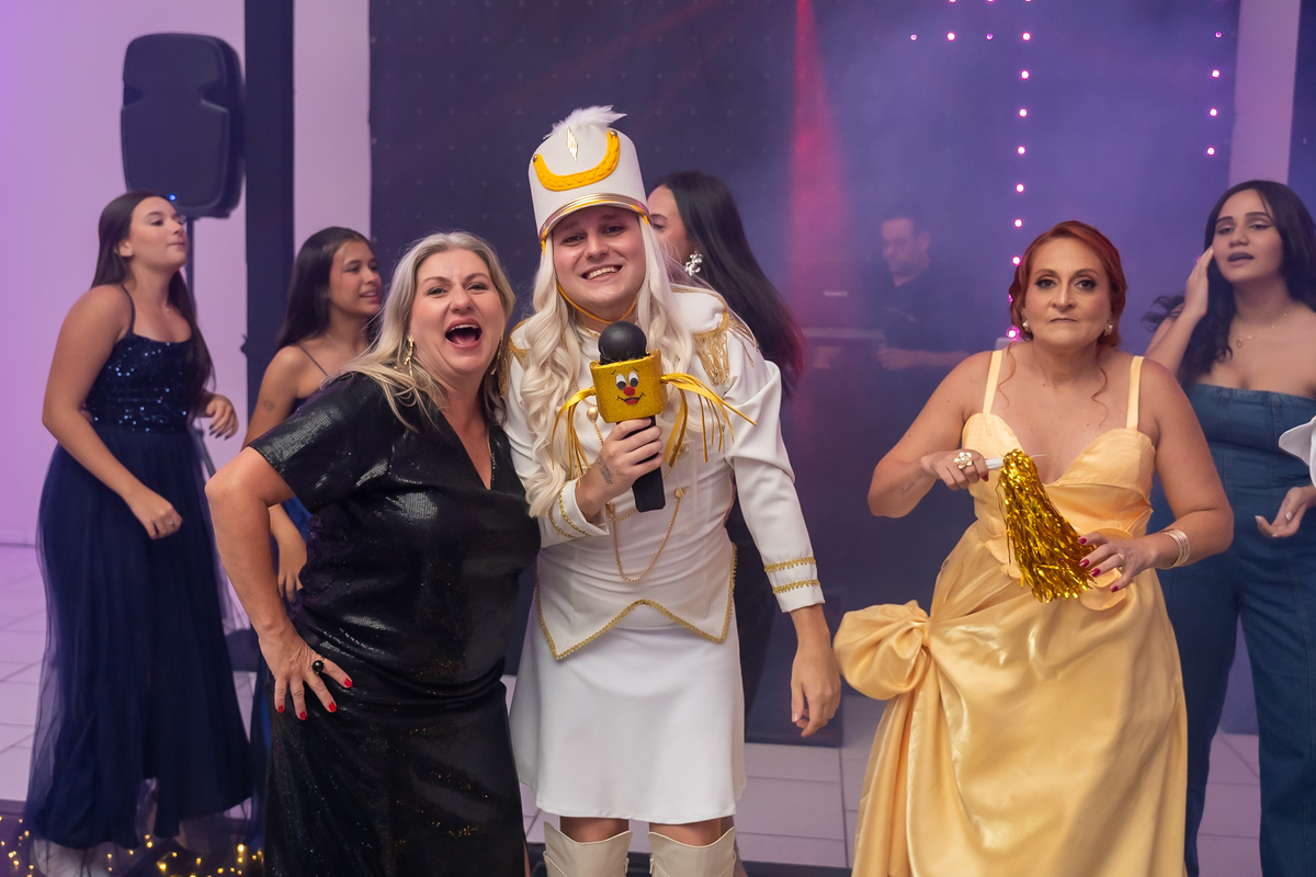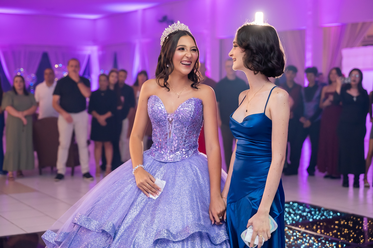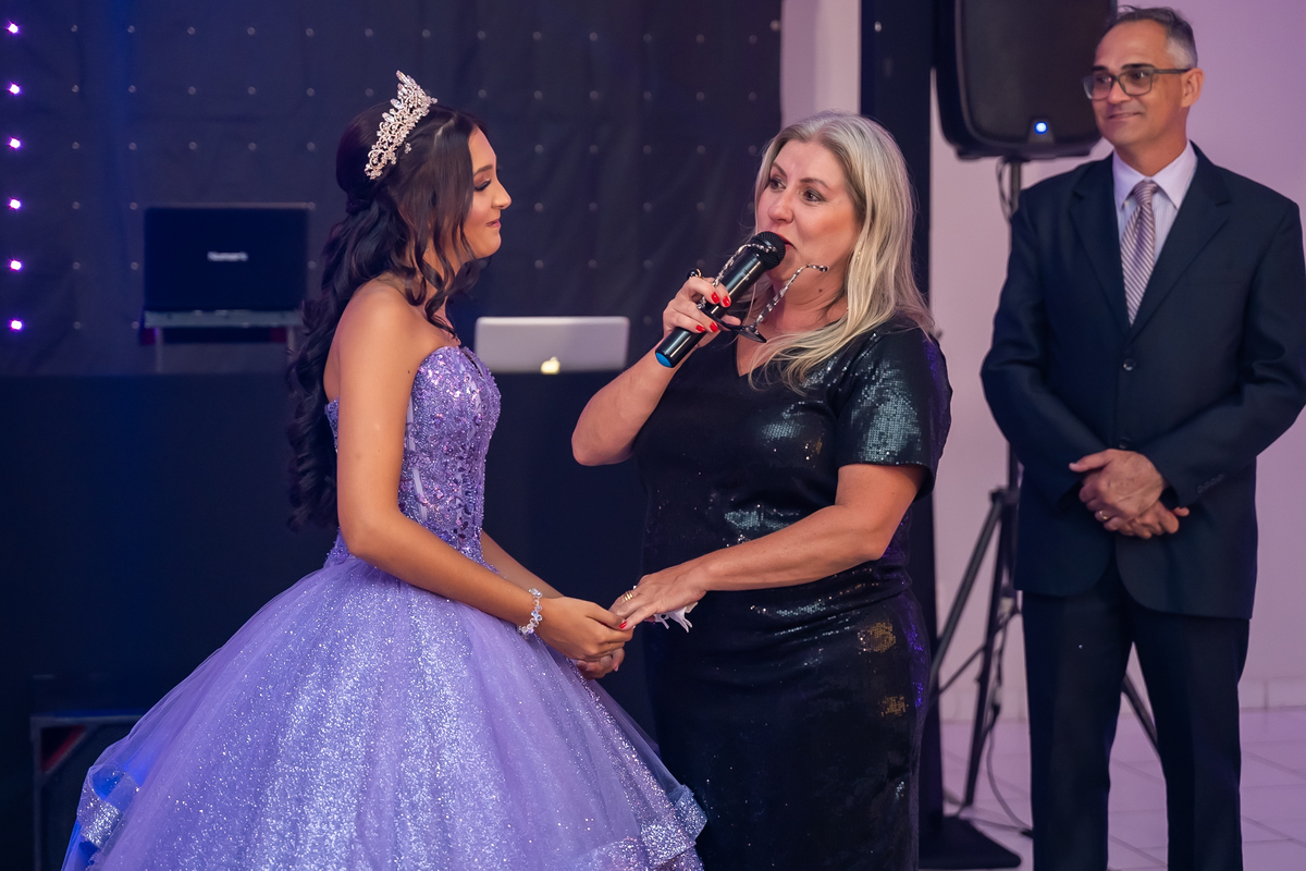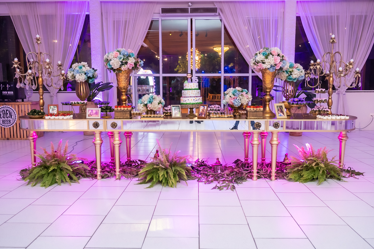 O @atelier.magali foi responsável pelo look da Bella durante a recepção e também pelos looks da mamãe Arlete, deixando ambas elegantes e deslumbrantes. A beleza da Arlete ficou ainda mais especial com a produção de cabelo e maquiagem assinada por @arecelisartori. Já toda a produção de cabelo, maquiagem e vestidos de valsa e balada da Bella ficou sob os cuidados de @edergouveia e @atelieedergouveia — simplesmente perfeitos!
