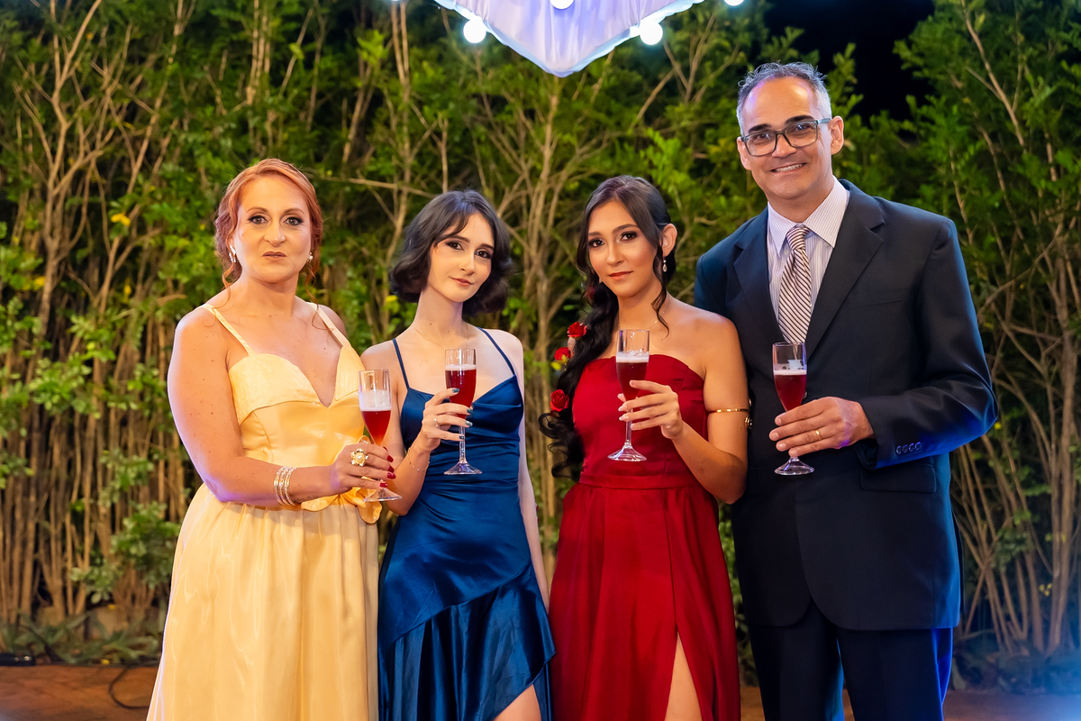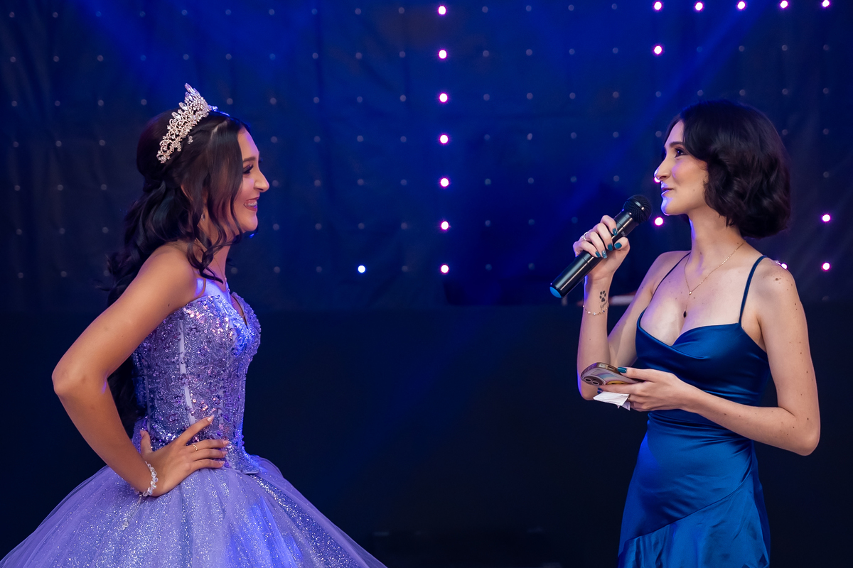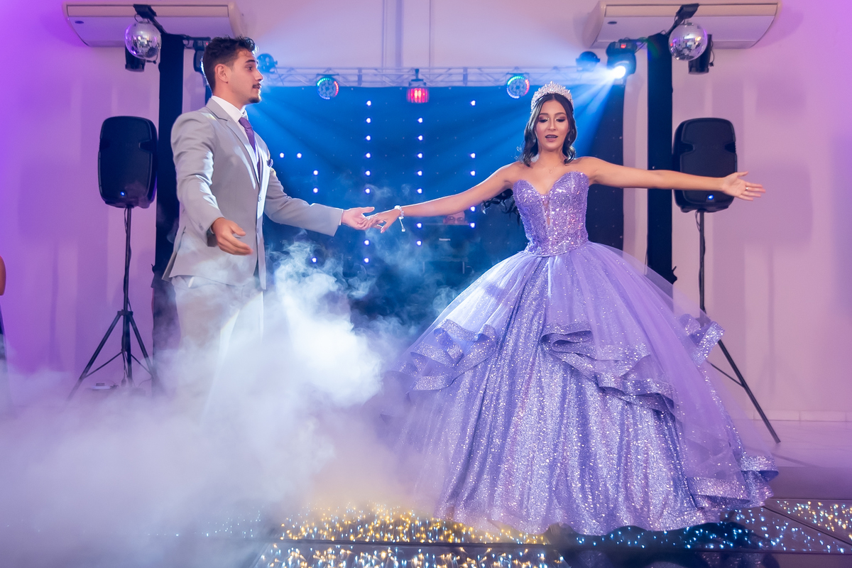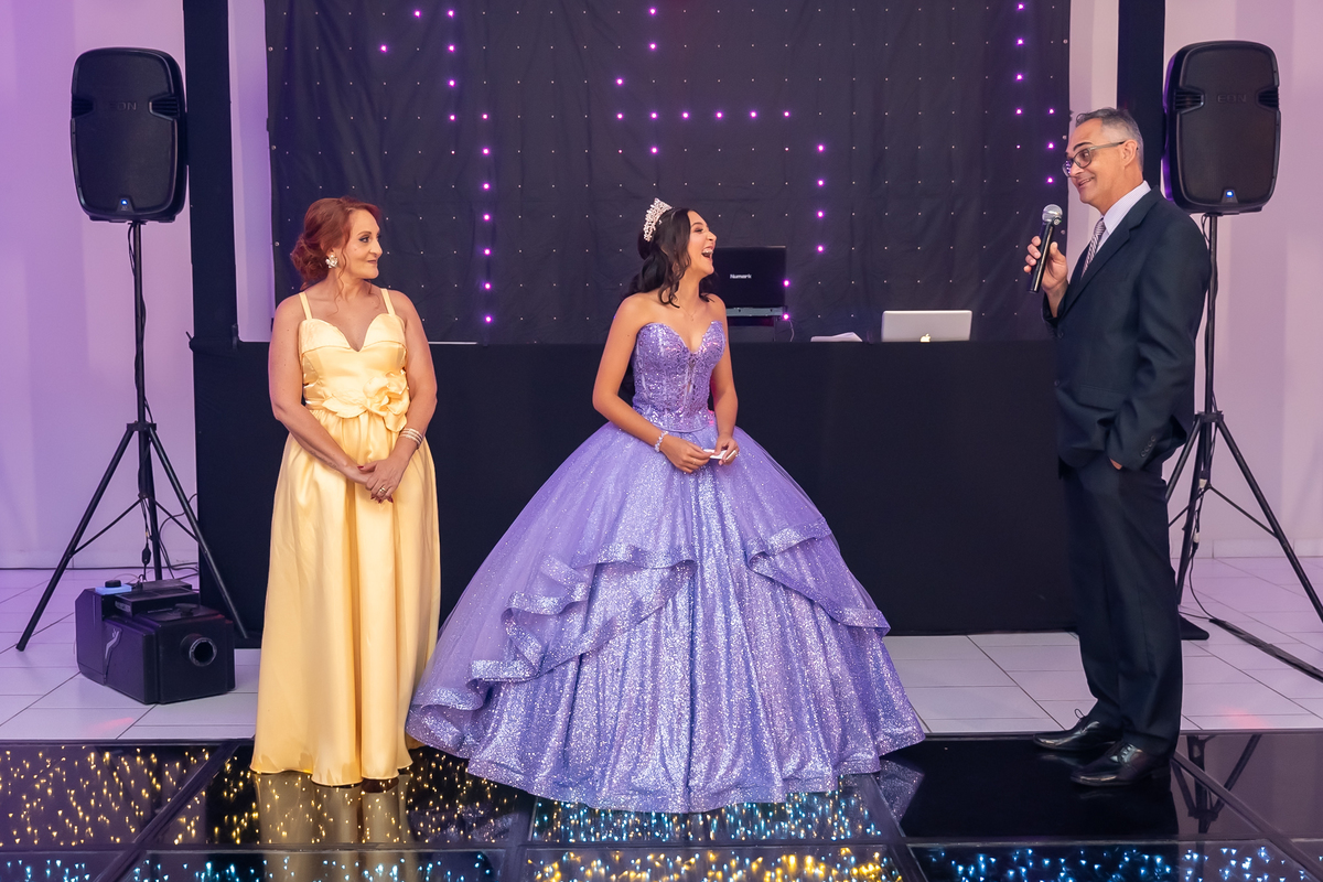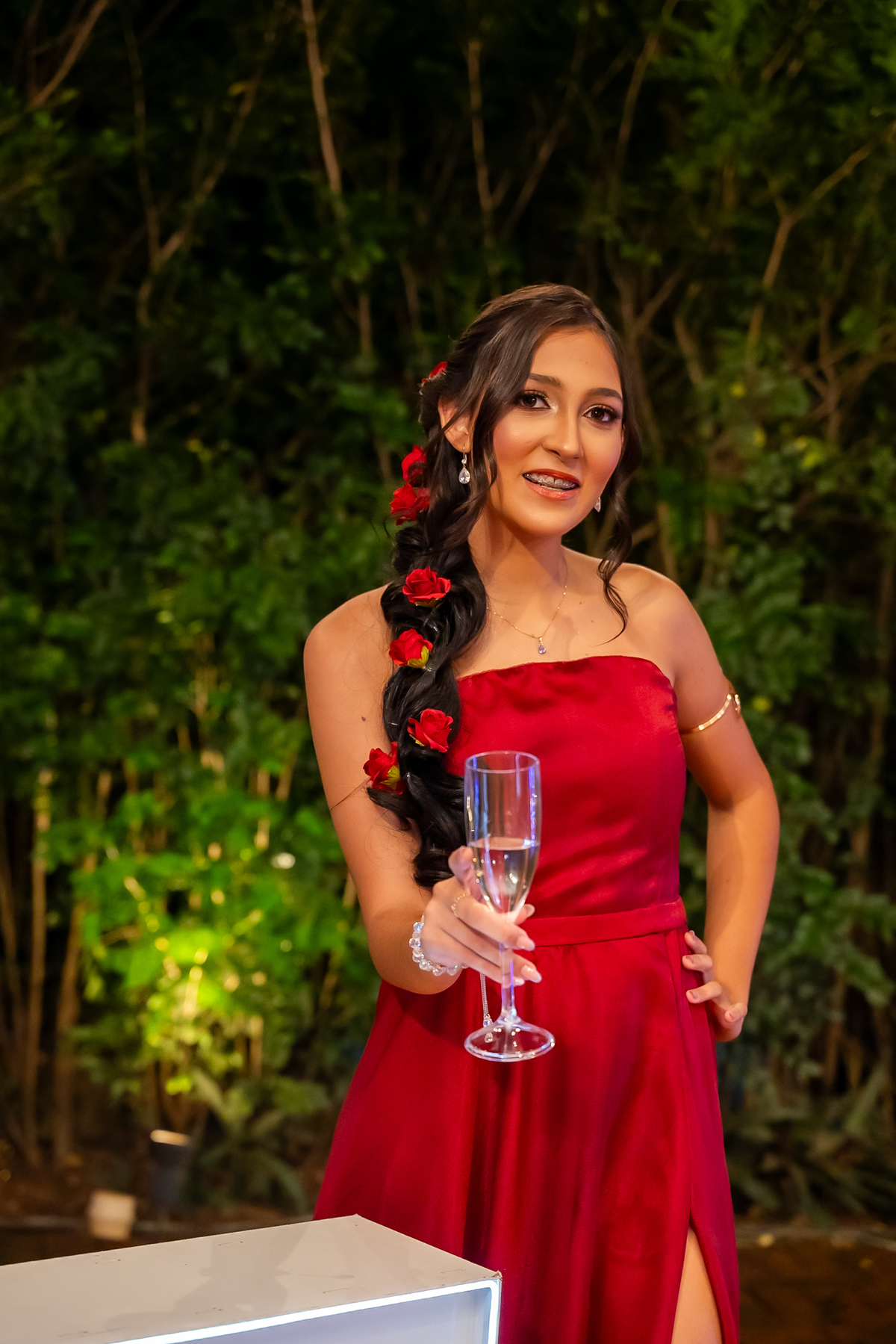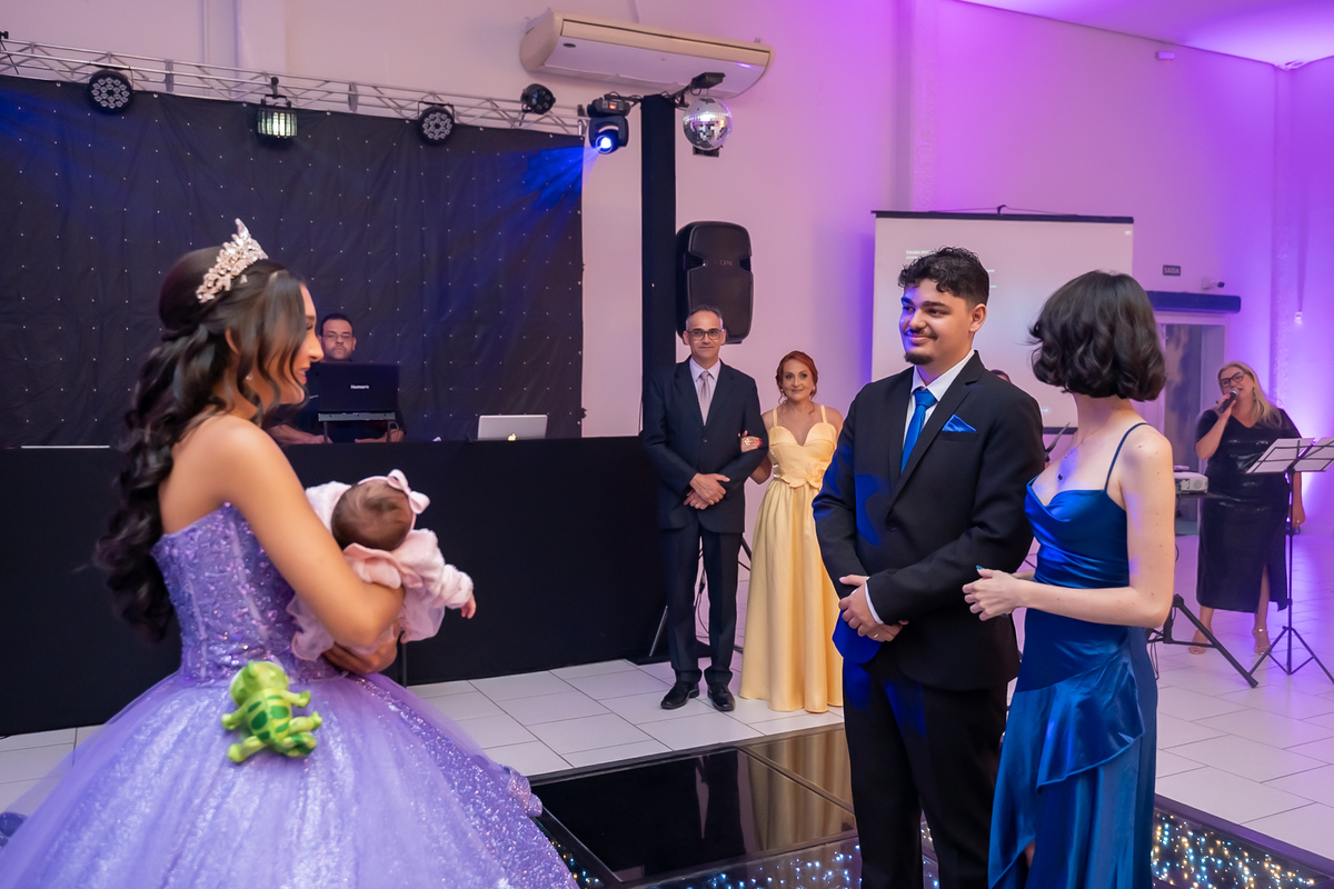 O @atelier.magali foi responsável pelo look da Bella durante a recepção e também pelos looks da mamãe Arlete, deixando ambas elegantes e deslumbrantes. A beleza da Arlete ficou ainda mais especial com a produção de cabelo e maquiagem assinada por @arecelisartori. Já toda a produção de cabelo, maquiagem e vestidos de valsa e balada da Bella ficou sob os cuidados de @edergouveia e @atelieedergouveia — simplesmente perfeitos!