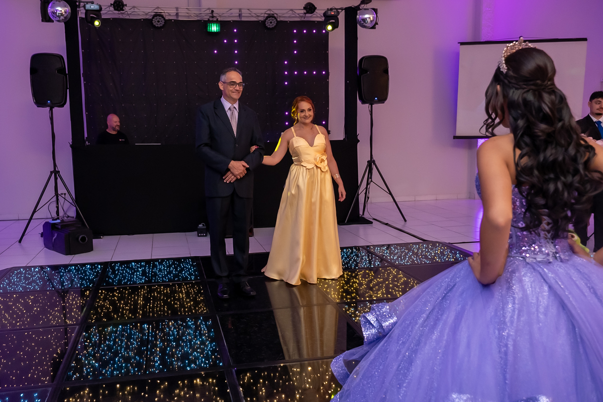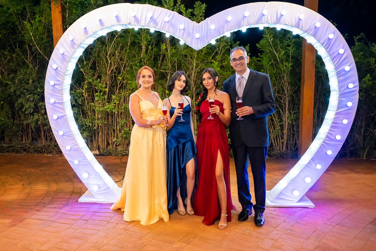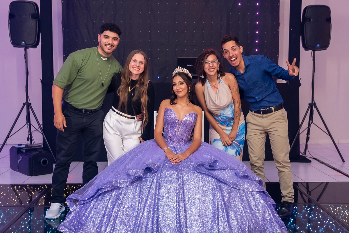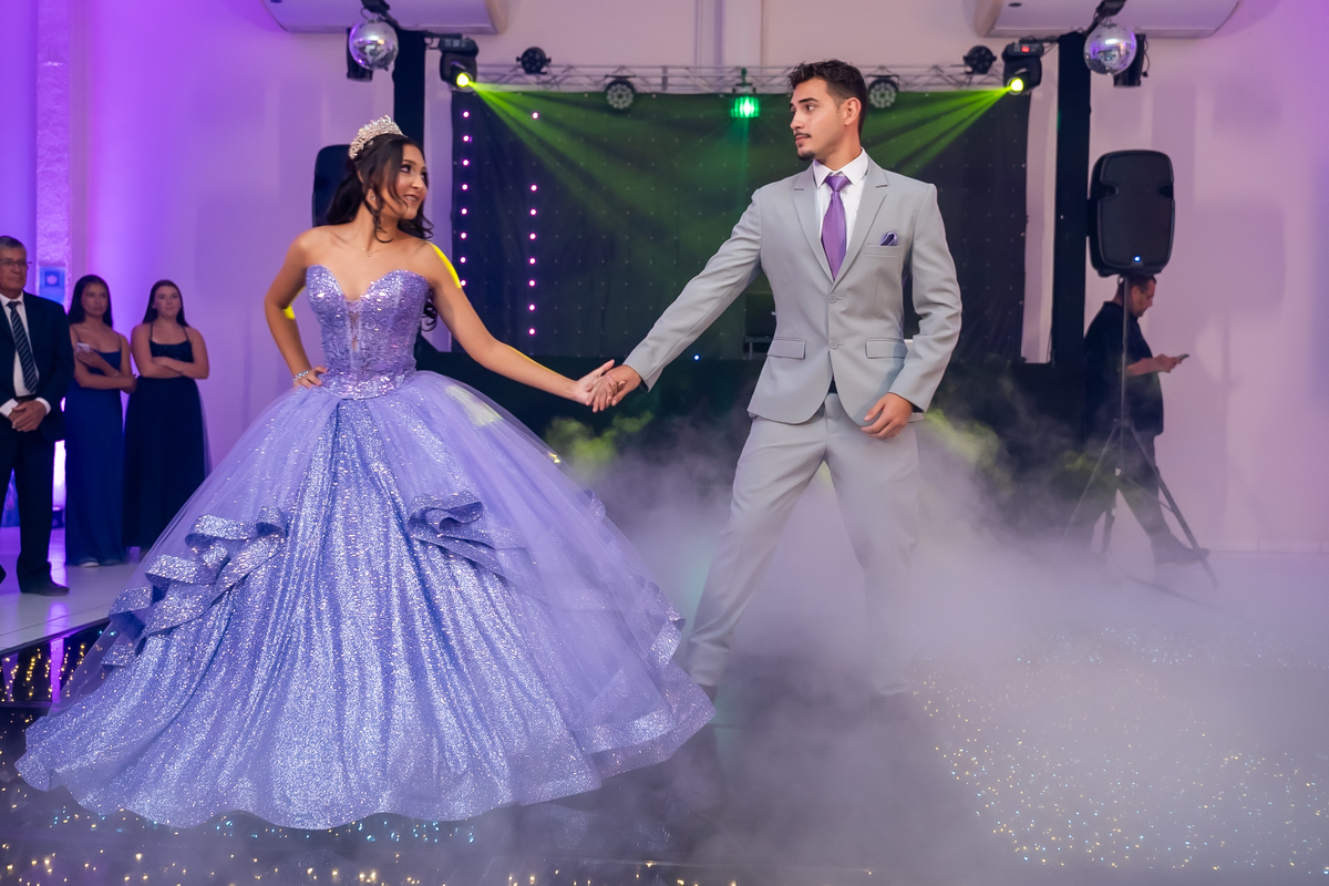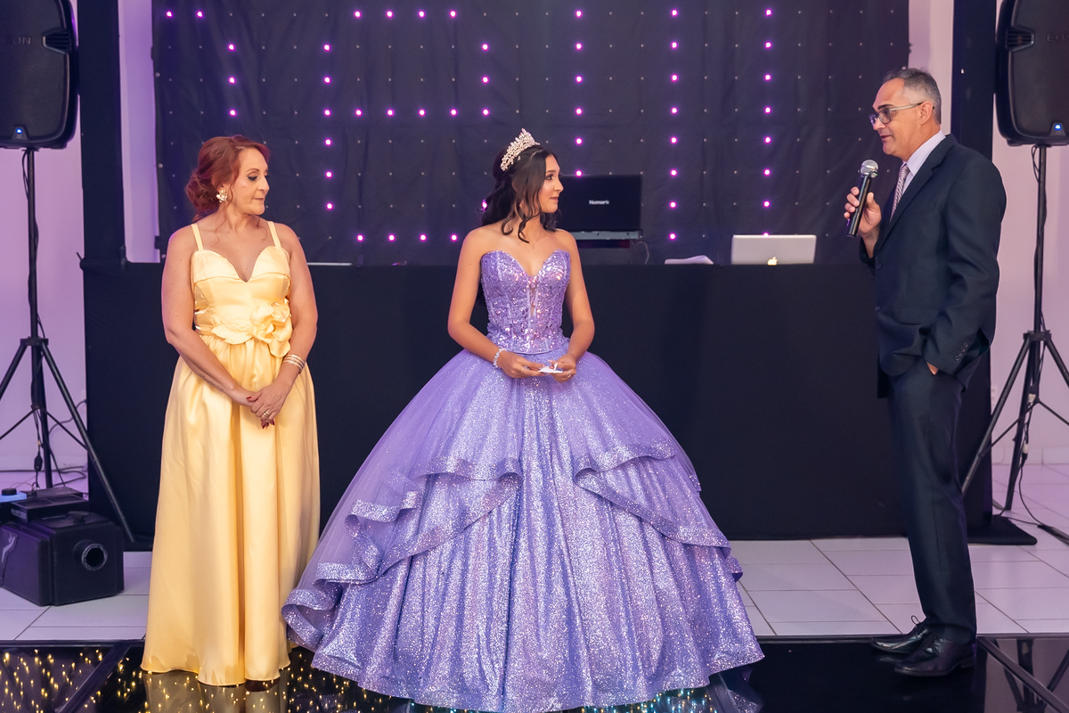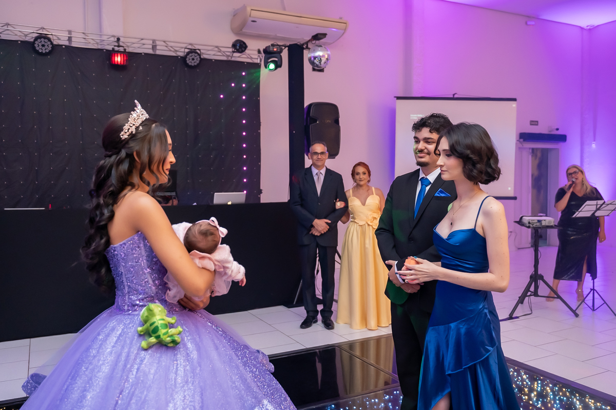 O @atelier.magali foi responsável pelo look da Bella durante a recepção e também pelos looks da mamãe Arlete, deixando ambas elegantes e deslumbrantes. A beleza da Arlete ficou ainda mais especial com a produção de cabelo e maquiagem assinada por @arecelisartori. Já toda a produção de cabelo, maquiagem e vestidos de valsa e balada da Bella ficou sob os cuidados de @edergouveia e @atelieedergouveia — simplesmente perfeitos!