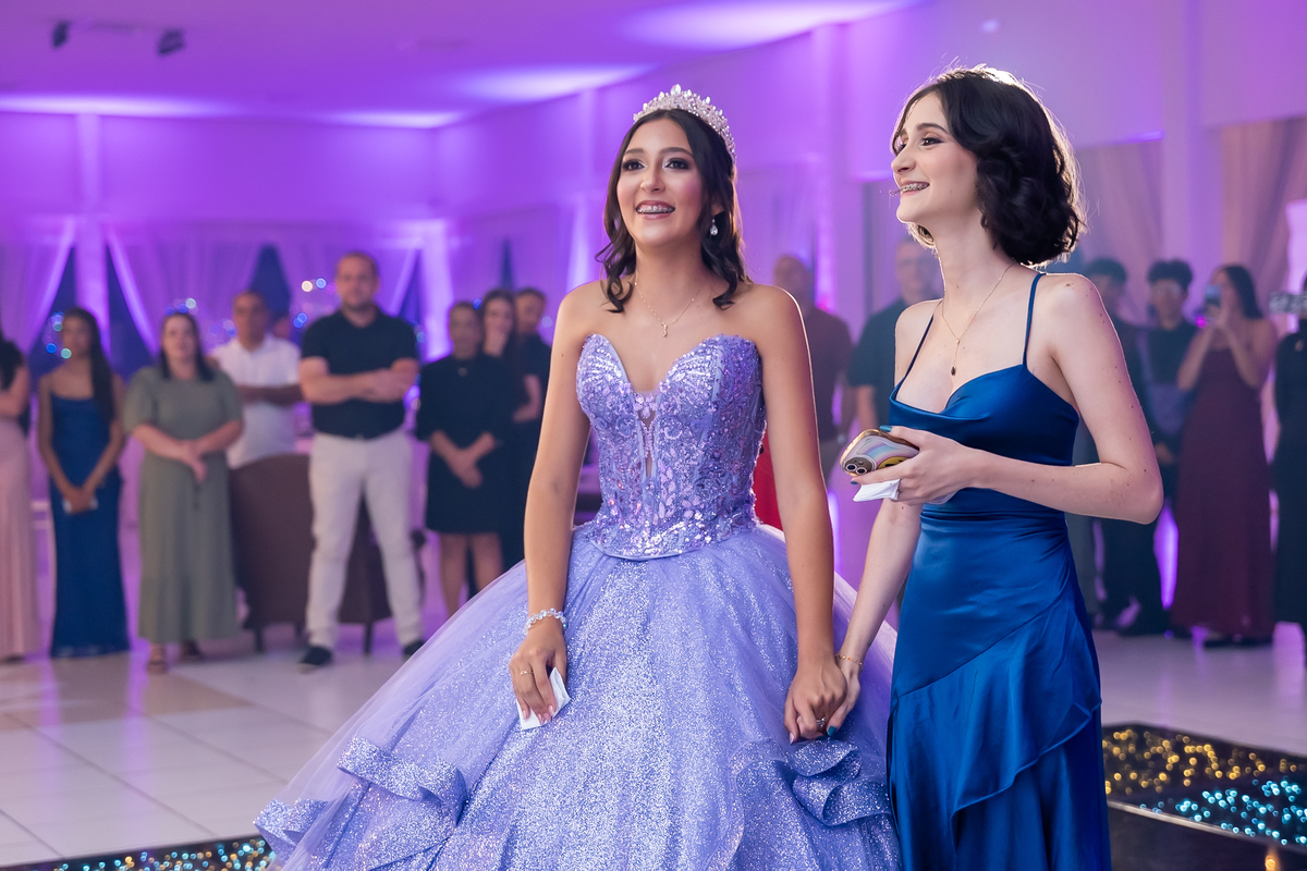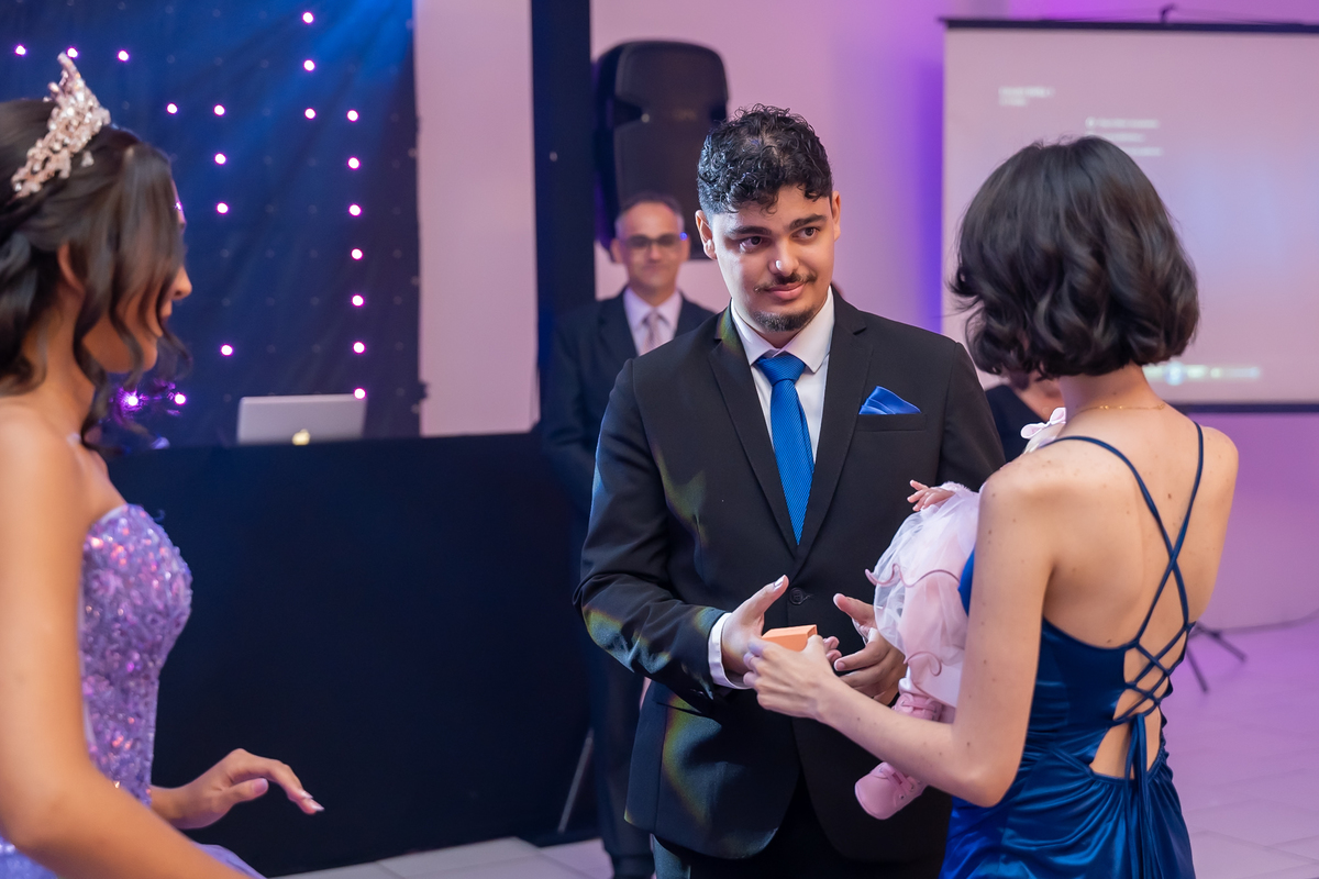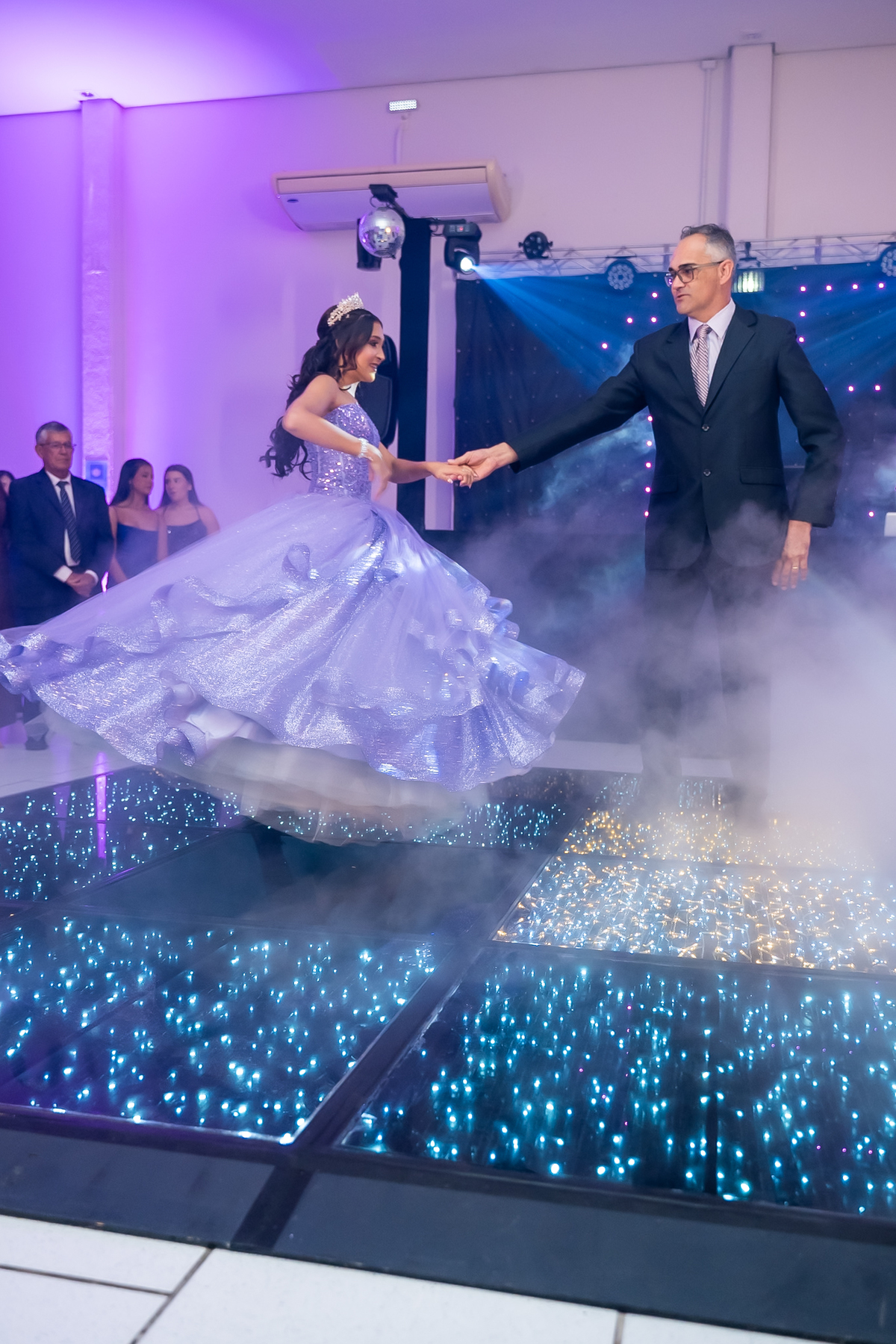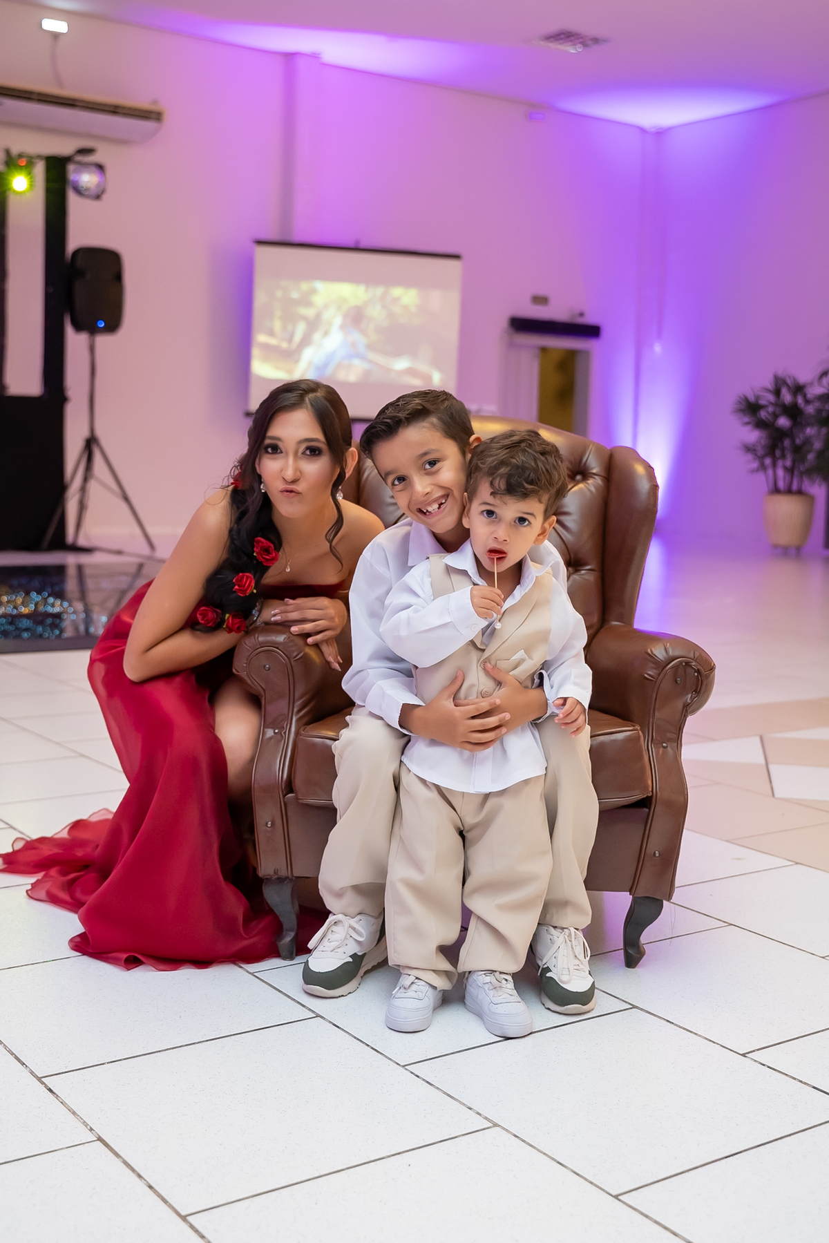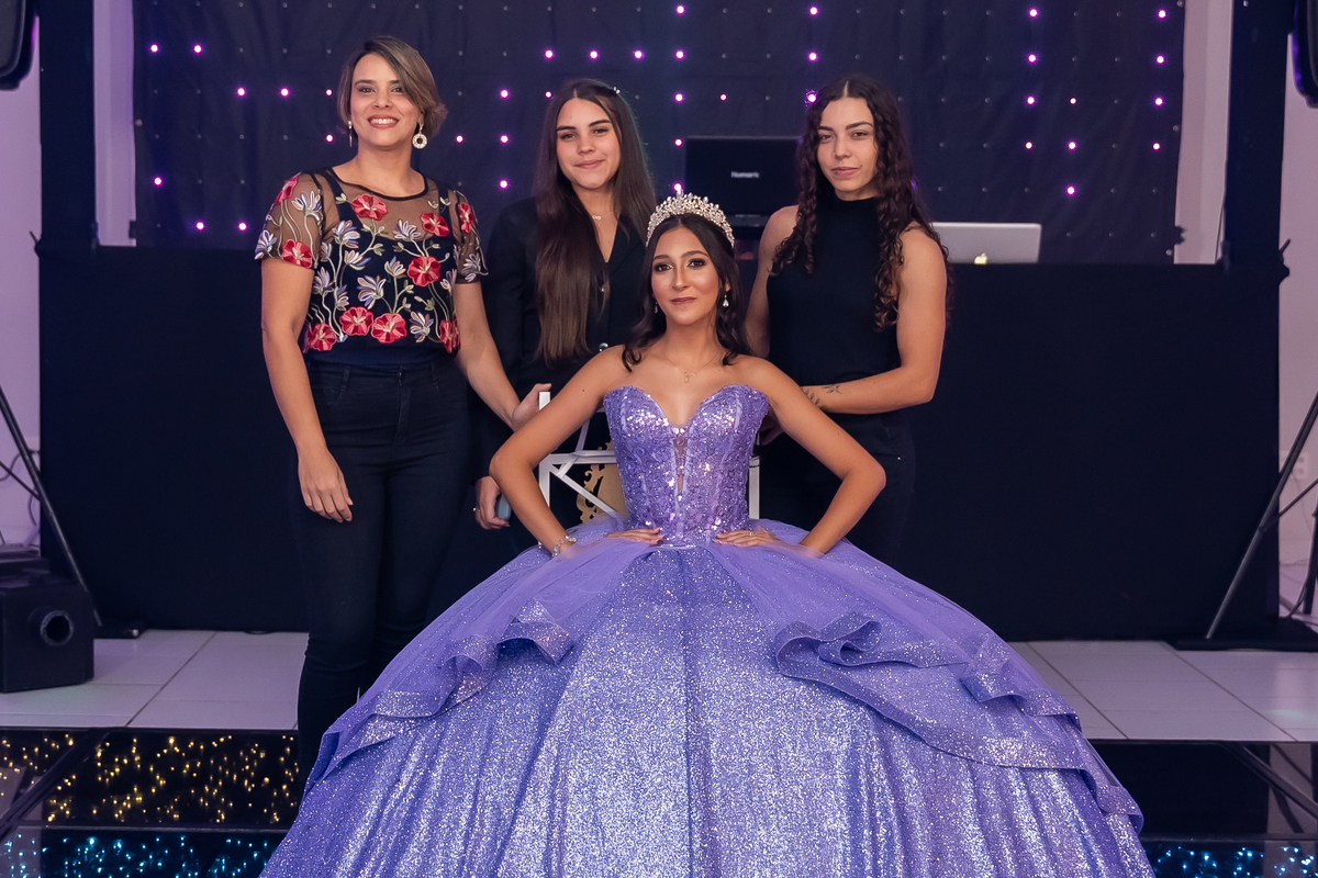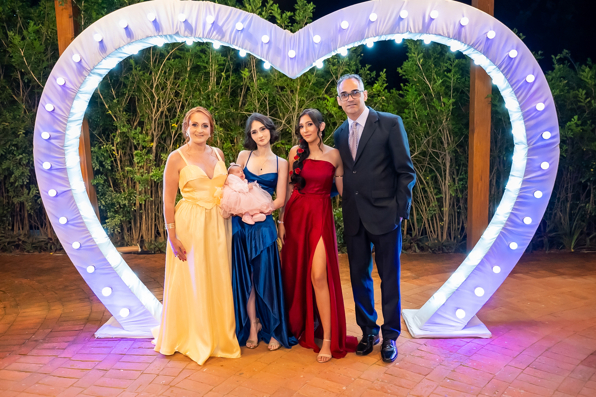 O @atelier.magali foi responsável pelo look da Bella durante a recepção e também pelos looks da mamãe Arlete, deixando ambas elegantes e deslumbrantes. A beleza da Arlete ficou ainda mais especial com a produção de cabelo e maquiagem assinada por @arecelisartori. Já toda a produção de cabelo, maquiagem e vestidos de valsa e balada da Bella ficou sob os cuidados de @edergouveia e @atelieedergouveia — simplesmente perfeitos!