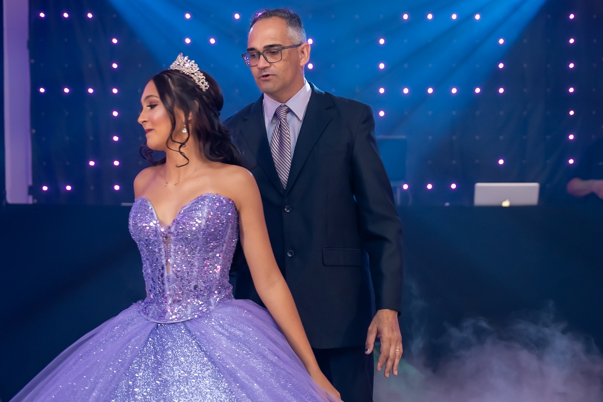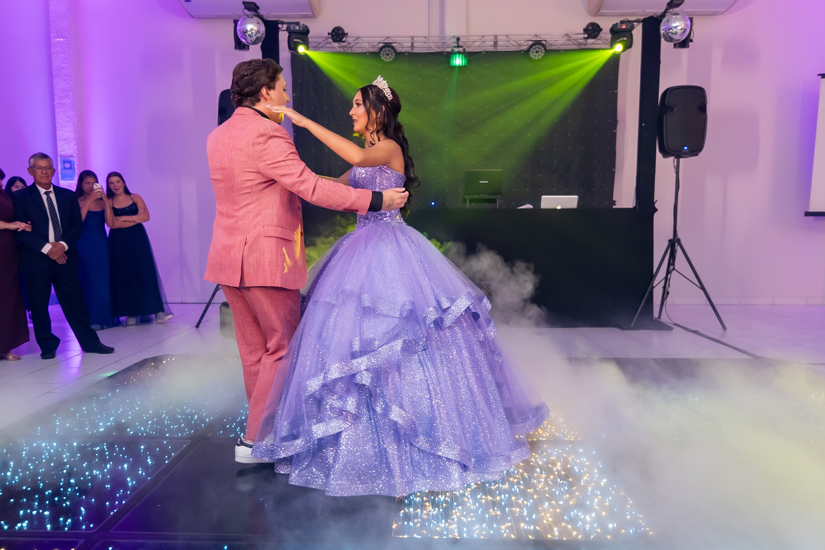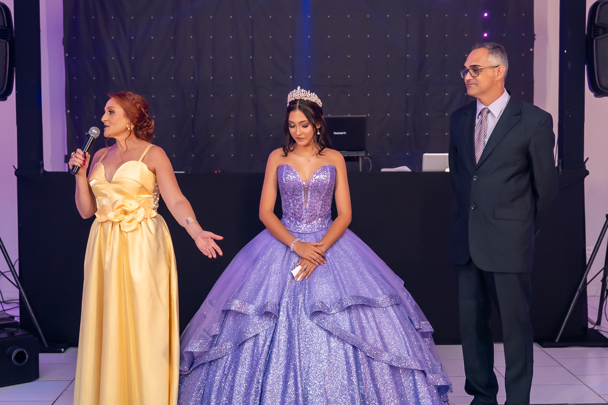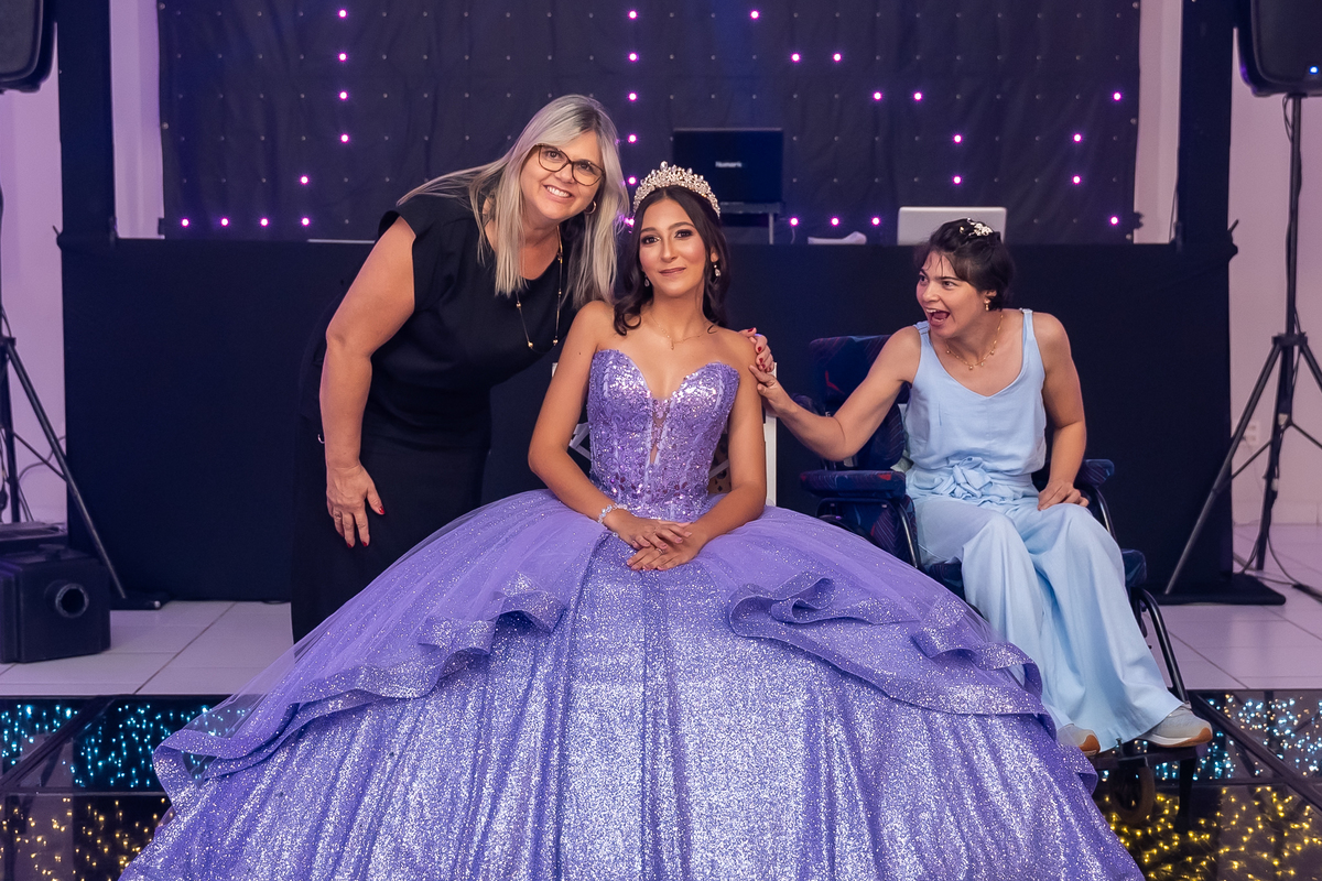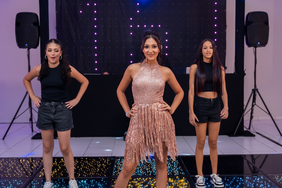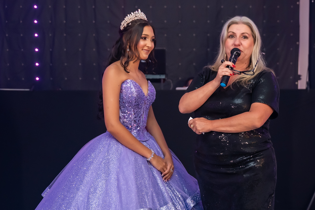 O @atelier.magali foi responsável pelo look da Bella durante a recepção e também pelos looks da mamãe Arlete, deixando ambas elegantes e deslumbrantes. A beleza da Arlete ficou ainda mais especial com a produção de cabelo e maquiagem assinada por @arecelisartori. Já toda a produção de cabelo, maquiagem e vestidos de valsa e balada da Bella ficou sob os cuidados de @edergouveia e @atelieedergouveia — simplesmente perfeitos!