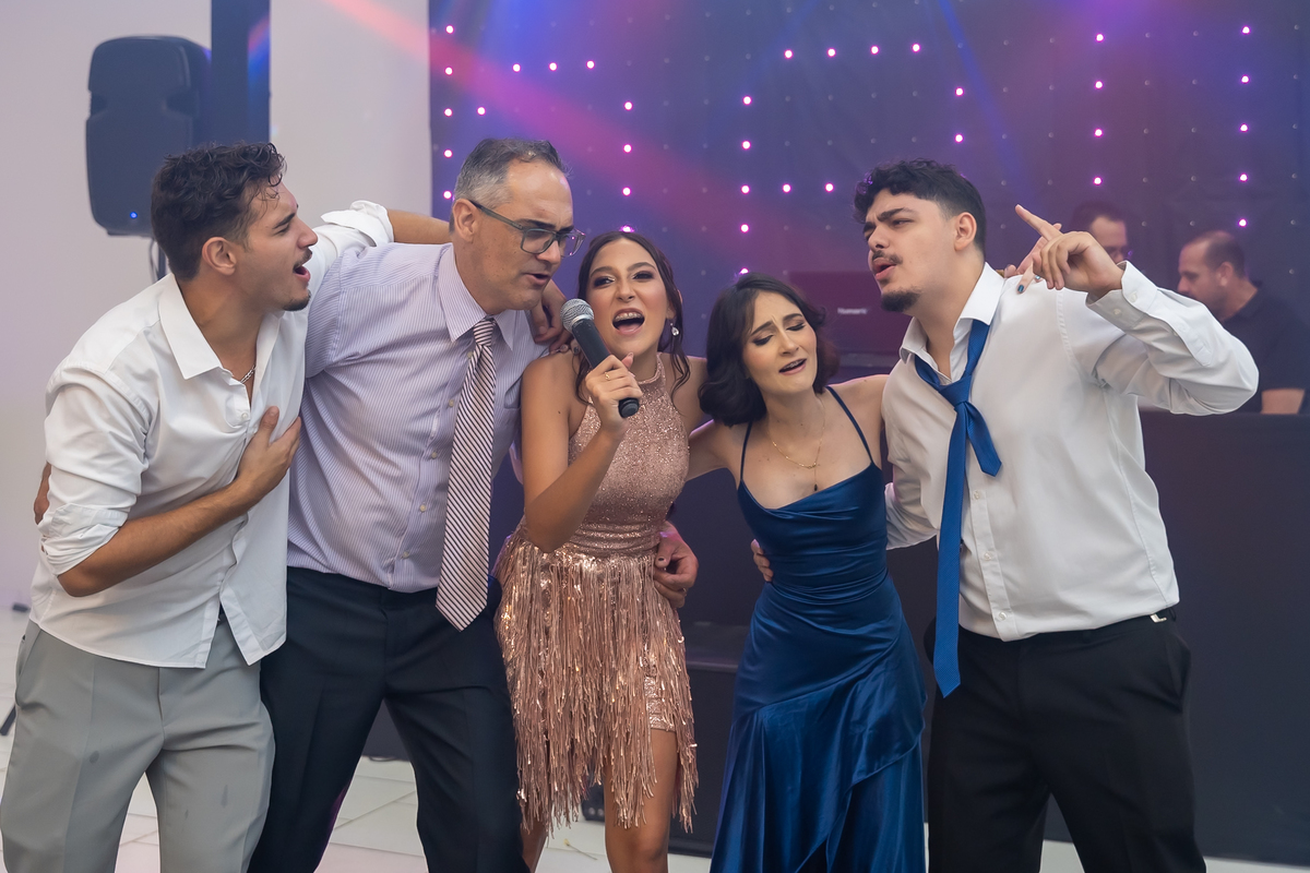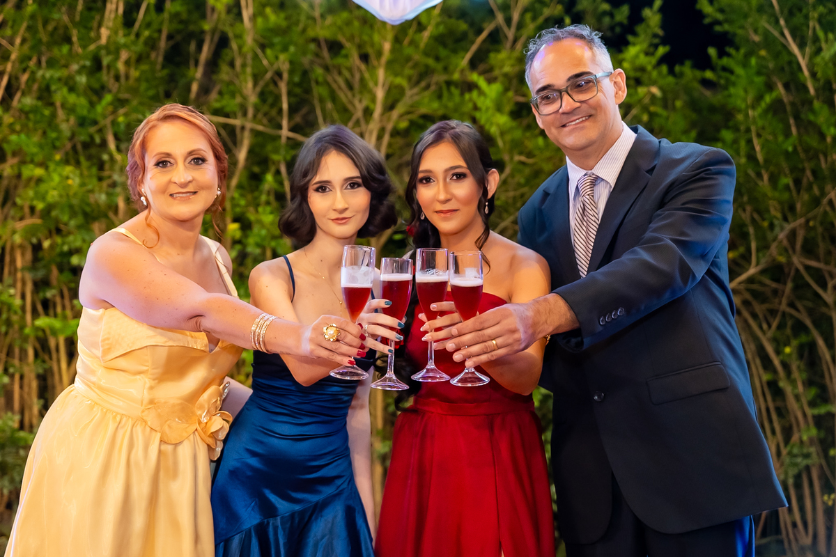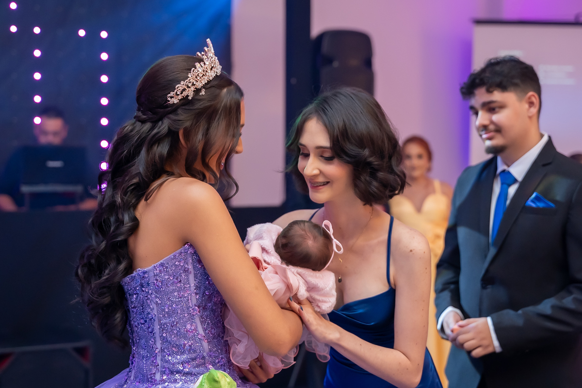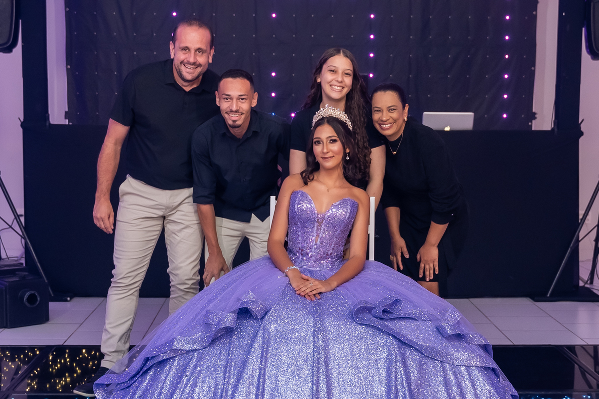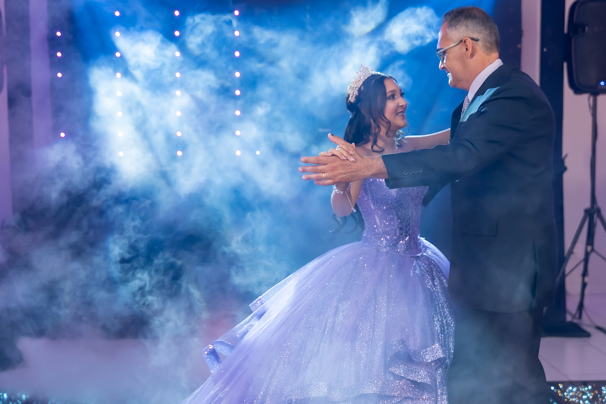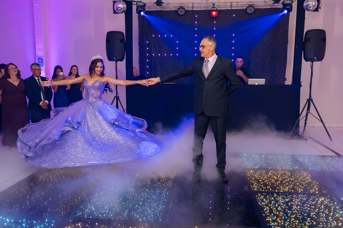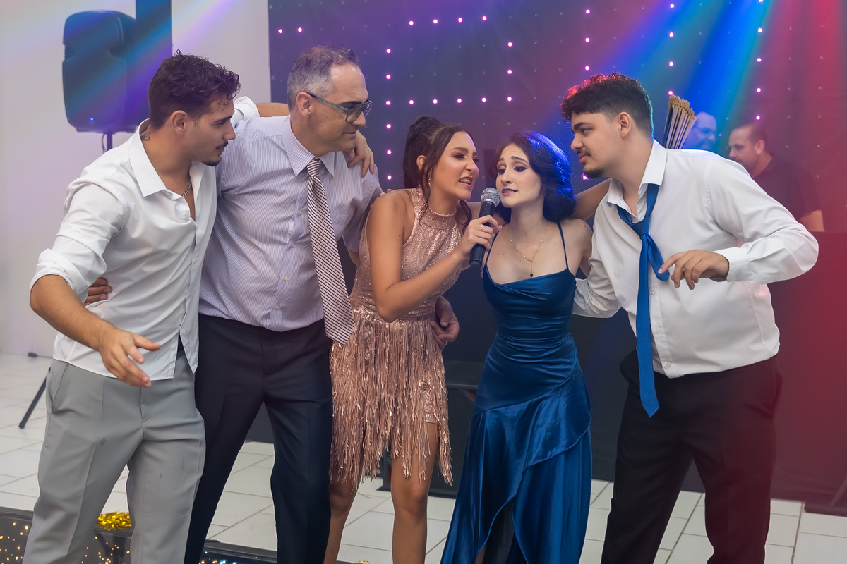 O @atelier.magali foi responsável pelo look da Bella durante a recepção e também pelos looks da mamãe Arlete, deixando ambas elegantes e deslumbrantes. A beleza da Arlete ficou ainda mais especial com a produção de cabelo e maquiagem assinada por @arecelisartori. Já toda a produção de cabelo, maquiagem e vestidos de valsa e balada da Bella ficou sob os cuidados de @edergouveia e @atelieedergouveia — simplesmente perfeitos!