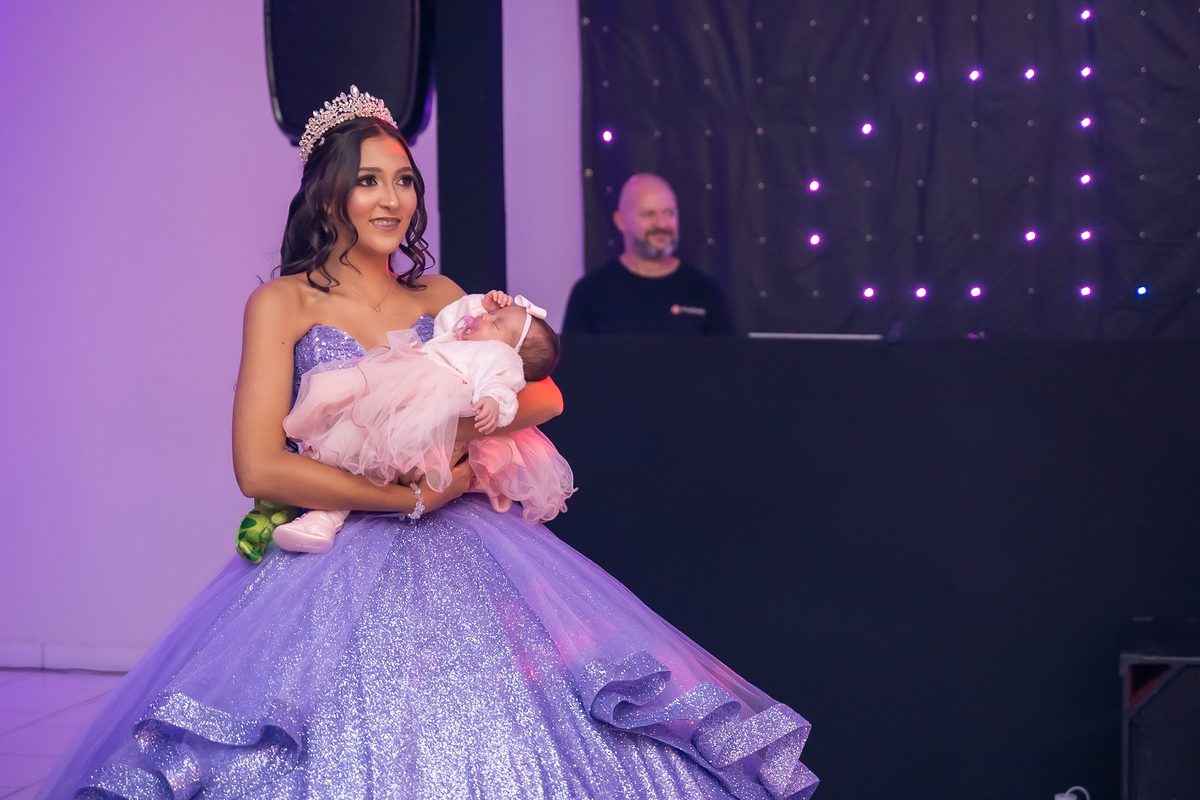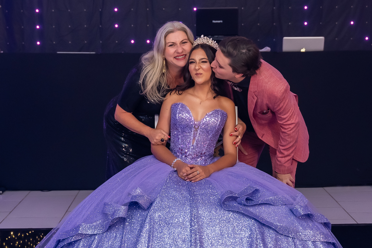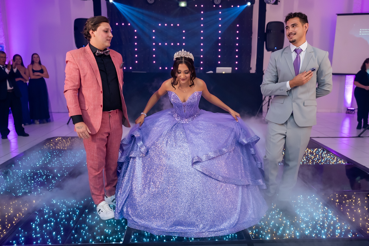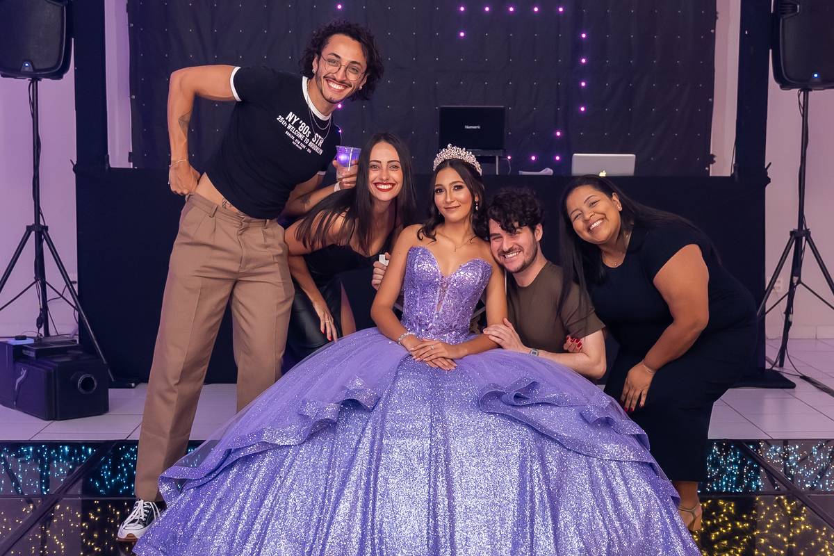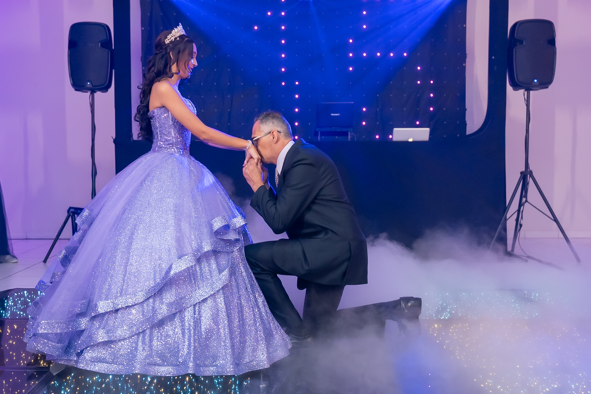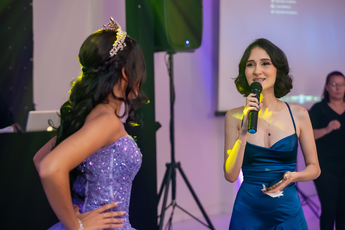 O @atelier.magali foi responsável pelo look da Bella durante a recepção e também pelos looks da mamãe Arlete, deixando ambas elegantes e deslumbrantes. A beleza da Arlete ficou ainda mais especial com a produção de cabelo e maquiagem assinada por @arecelisartori. Já toda a produção de cabelo, maquiagem e vestidos de valsa e balada da Bella ficou sob os cuidados de @edergouveia e @atelieedergouveia — simplesmente perfeitos!