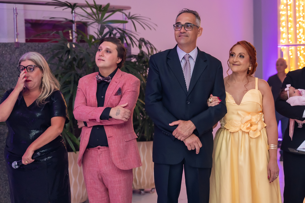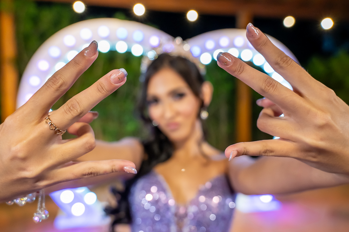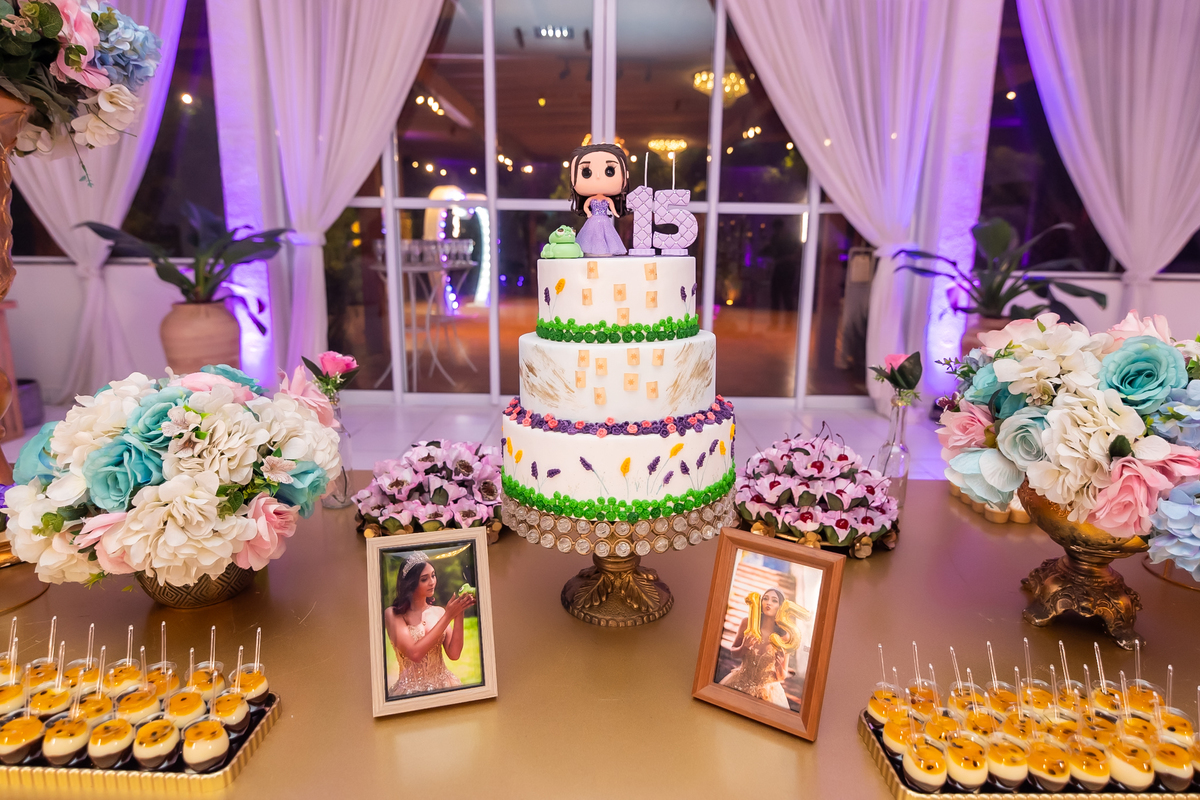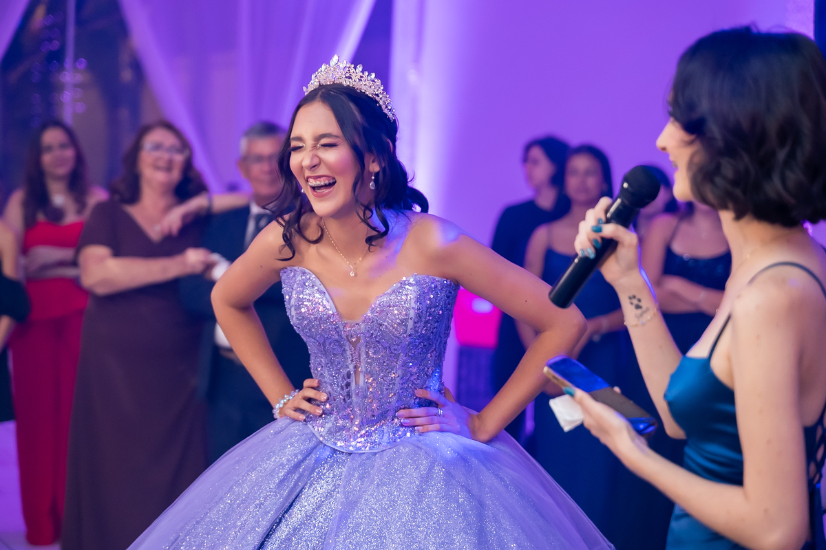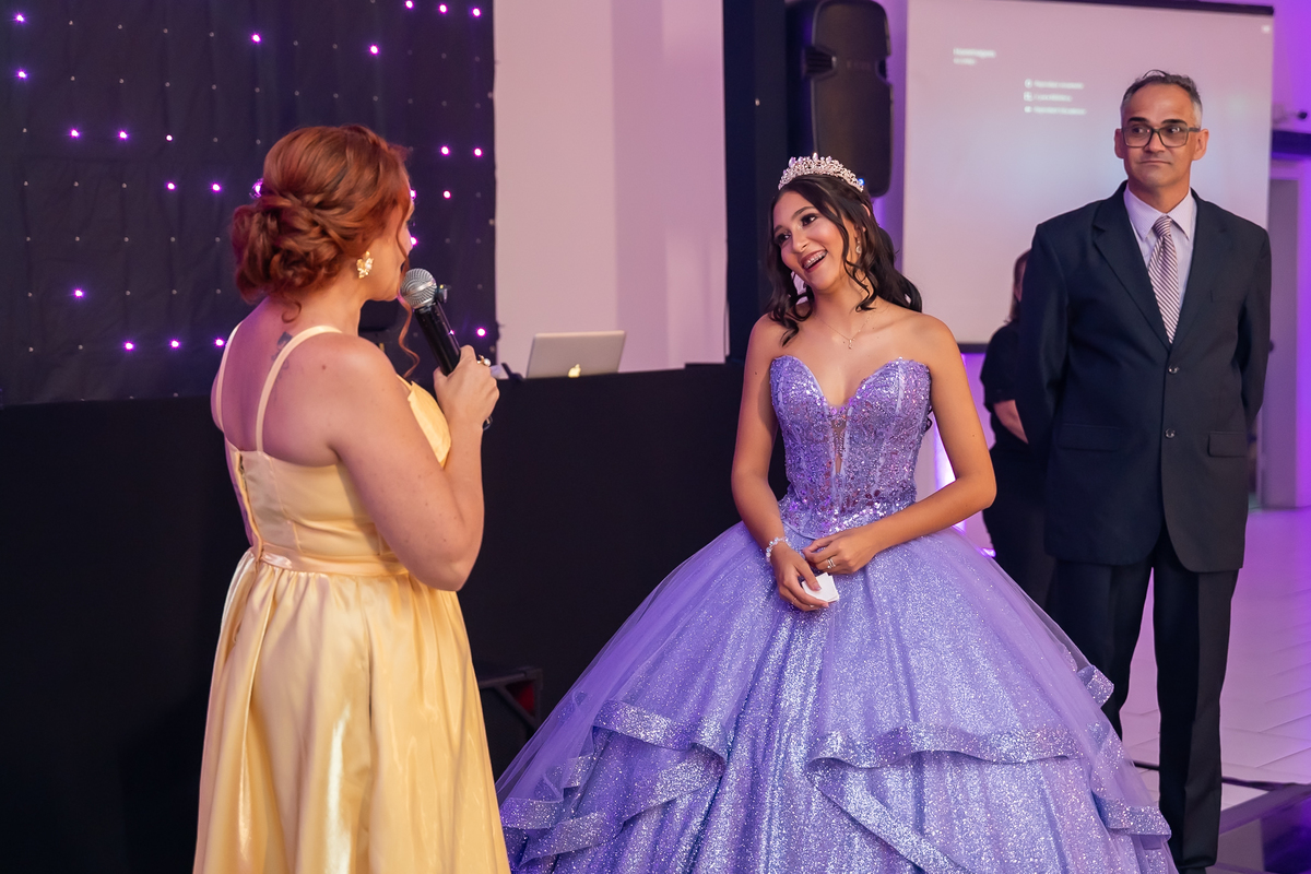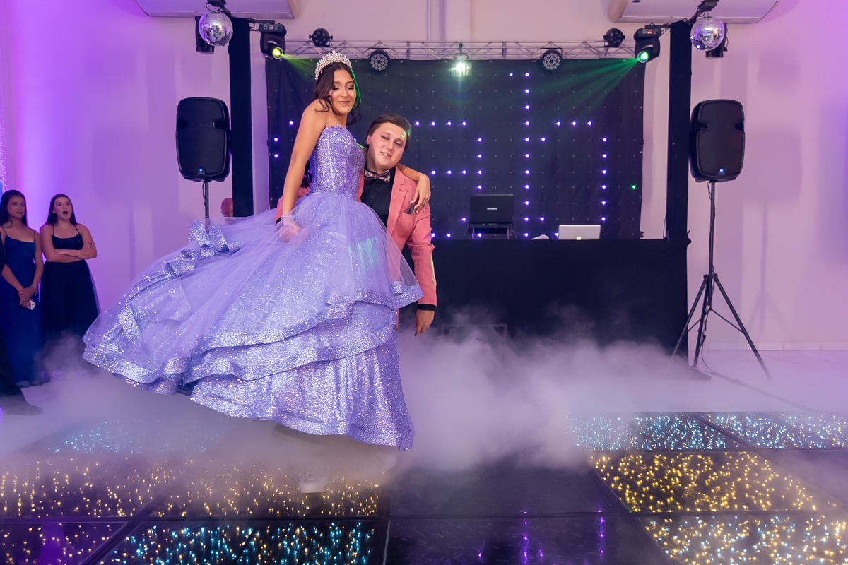 O @atelier.magali foi responsável pelo look da Bella durante a recepção e também pelos looks da mamãe Arlete, deixando ambas elegantes e deslumbrantes. A beleza da Arlete ficou ainda mais especial com a produção de cabelo e maquiagem assinada por @arecelisartori. Já toda a produção de cabelo, maquiagem e vestidos de valsa e balada da Bella ficou sob os cuidados de @edergouveia e @atelieedergouveia — simplesmente perfeitos!