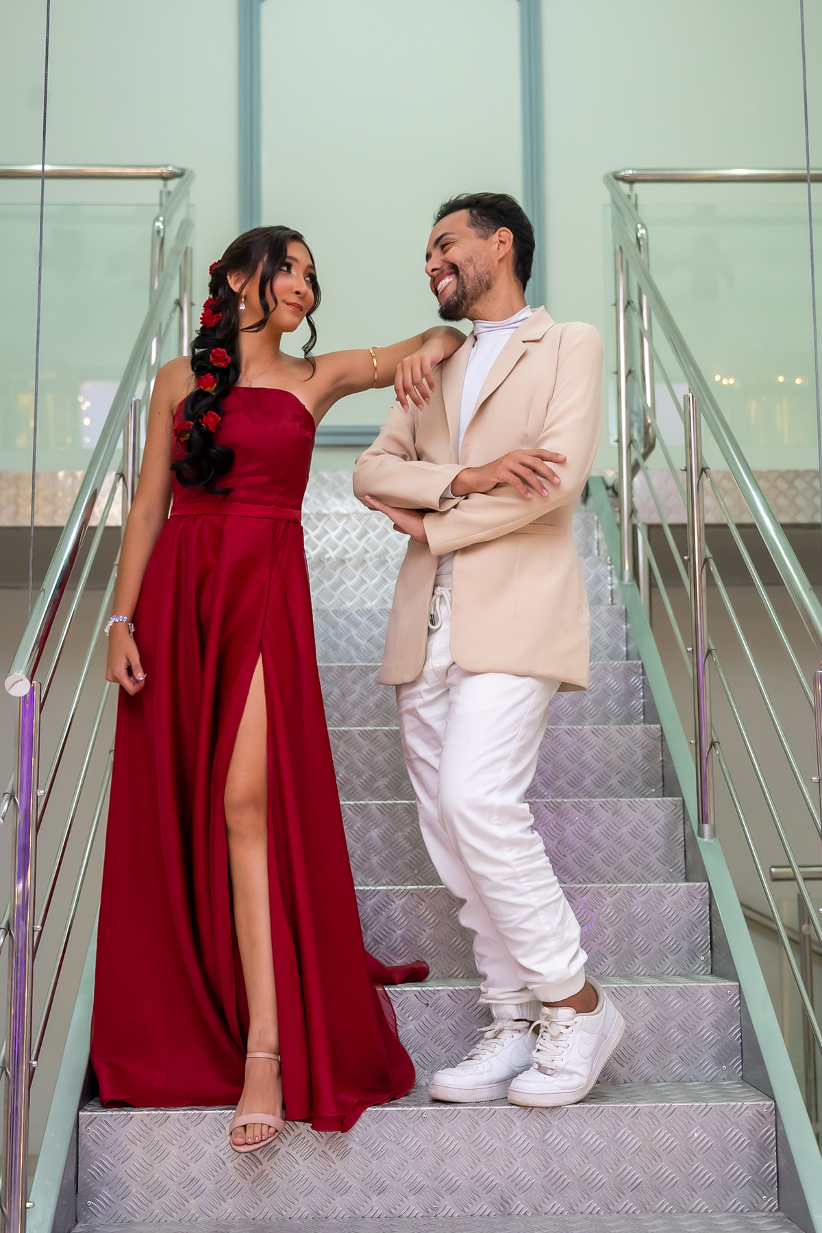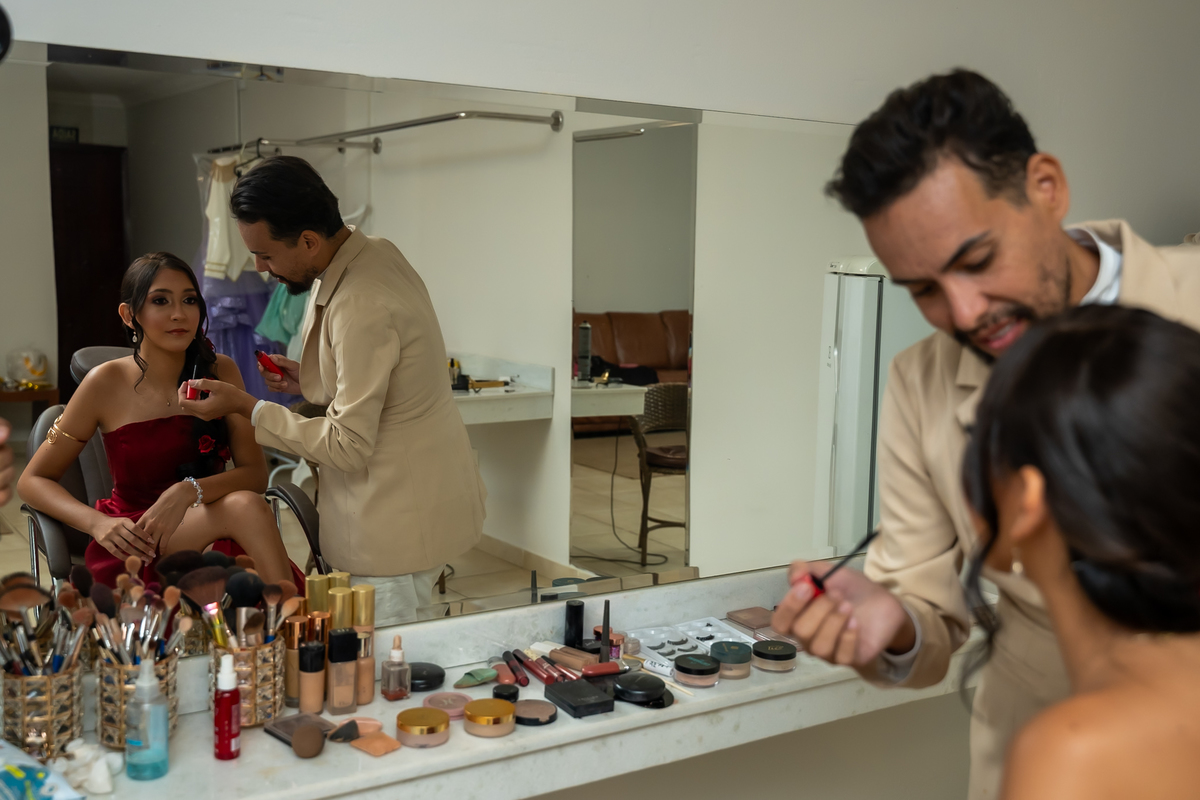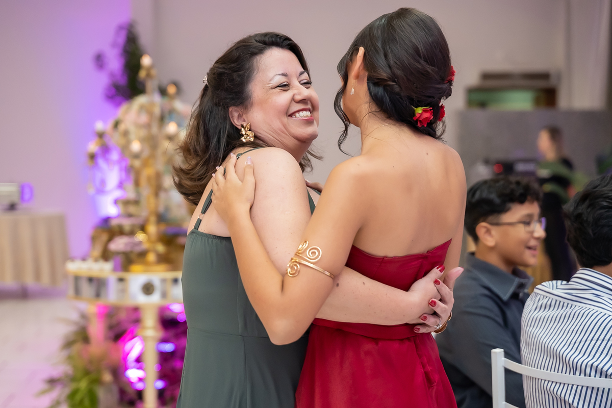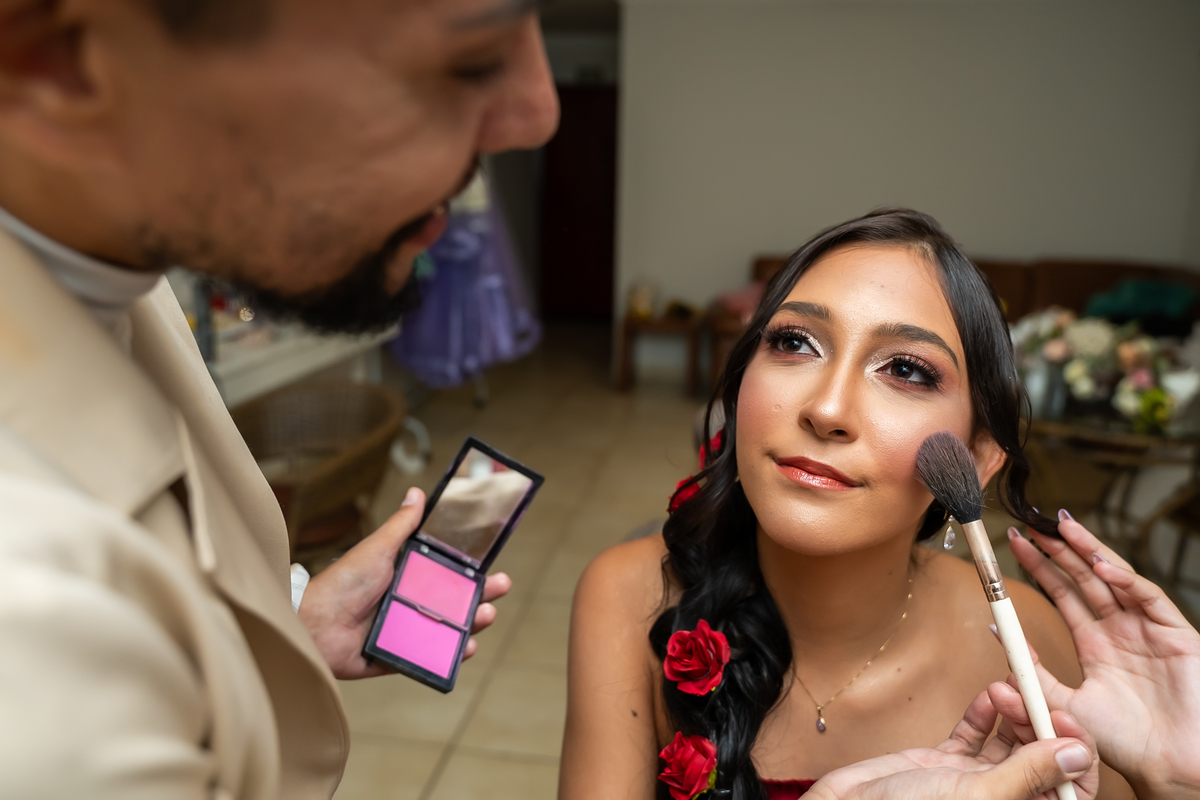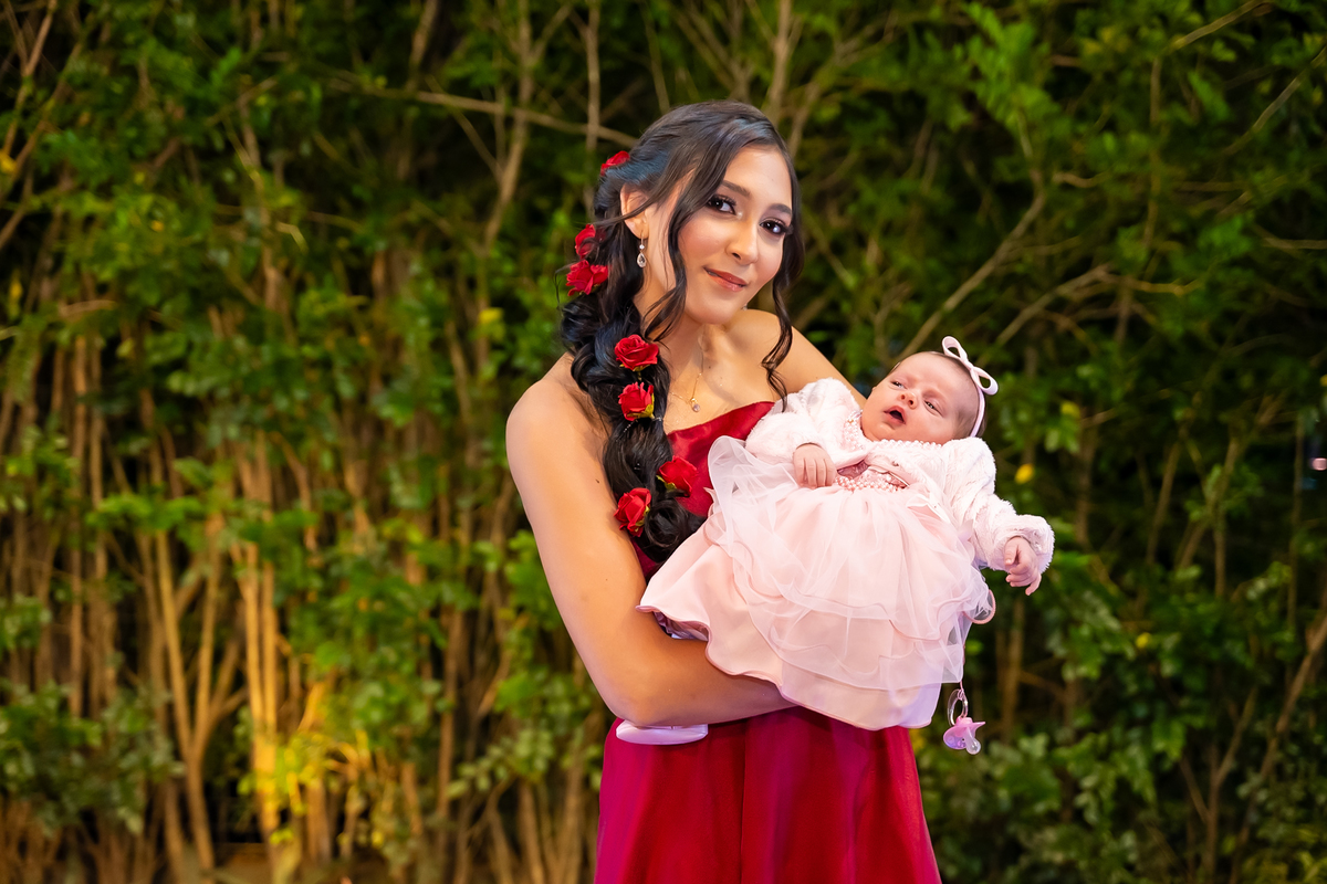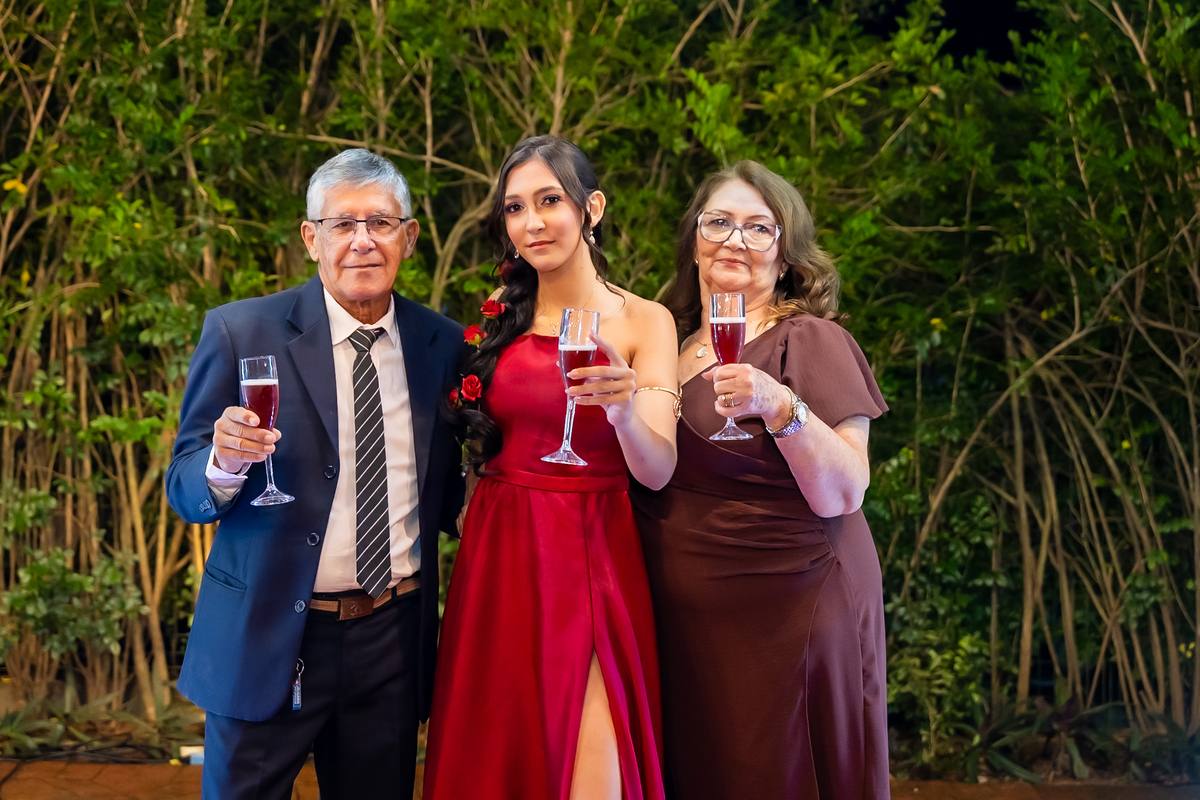O @atelier.magali foi responsável pelo look da Bella durante a recepção e também pelos looks da mamãe Arlete, deixando ambas elegantes e deslumbrantes. A beleza da Arlete ficou ainda mais especial com a produção de cabelo e maquiagem assinada por @arecelisartori. Já toda a produção de cabelo, maquiagem e vestidos de valsa e balada da Bella ficou sob os cuidados de @edergouveia e @atelieedergouveia — simplesmente perfeitos!