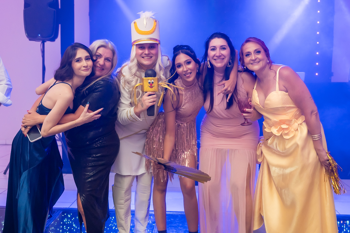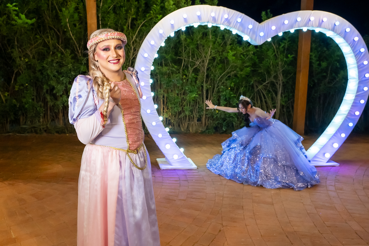 Na recepção, Bella recebeu a visita encantadora da Rapunzel, um presente especial do primo @matheusrramosm. E para fechar com chave de ouro, a chegada da Xuxa trouxe nostalgia, alegria e muita animação para todos os “baixinhos grandinhos” presentes — outro presente inesquecível do Matheus!