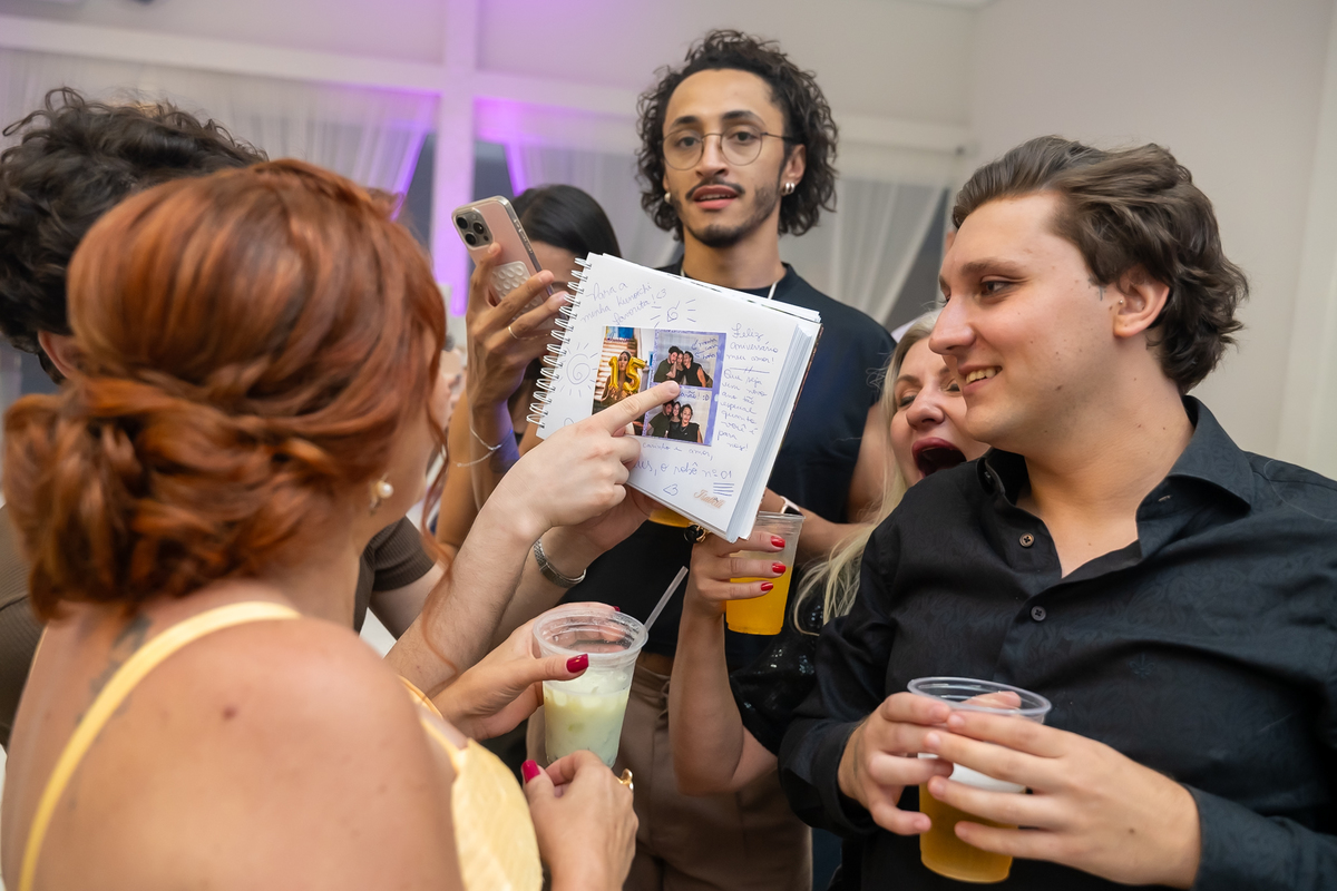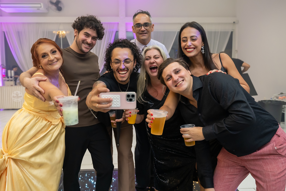 O buffet, drinks e chopp ficaram por conta da equipe da @themartinsdrinksoficial, que conquistou todos os convidados! E as atrações? Um espetáculo à parte: carrinho de bolo da @confeittae, cabine de fotos da @digaxis.photocabine e momentos incríveis na pista com efeitos de fumaça comandados por @dj.edurodrigues.oficial.