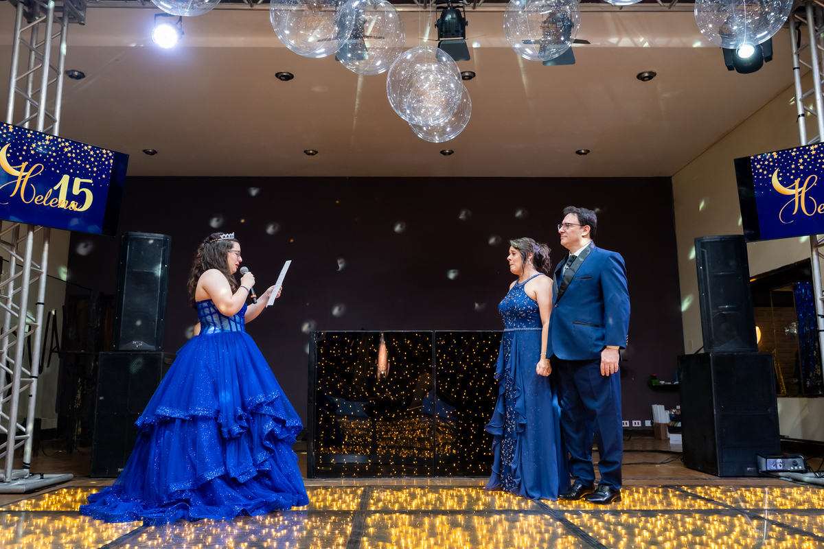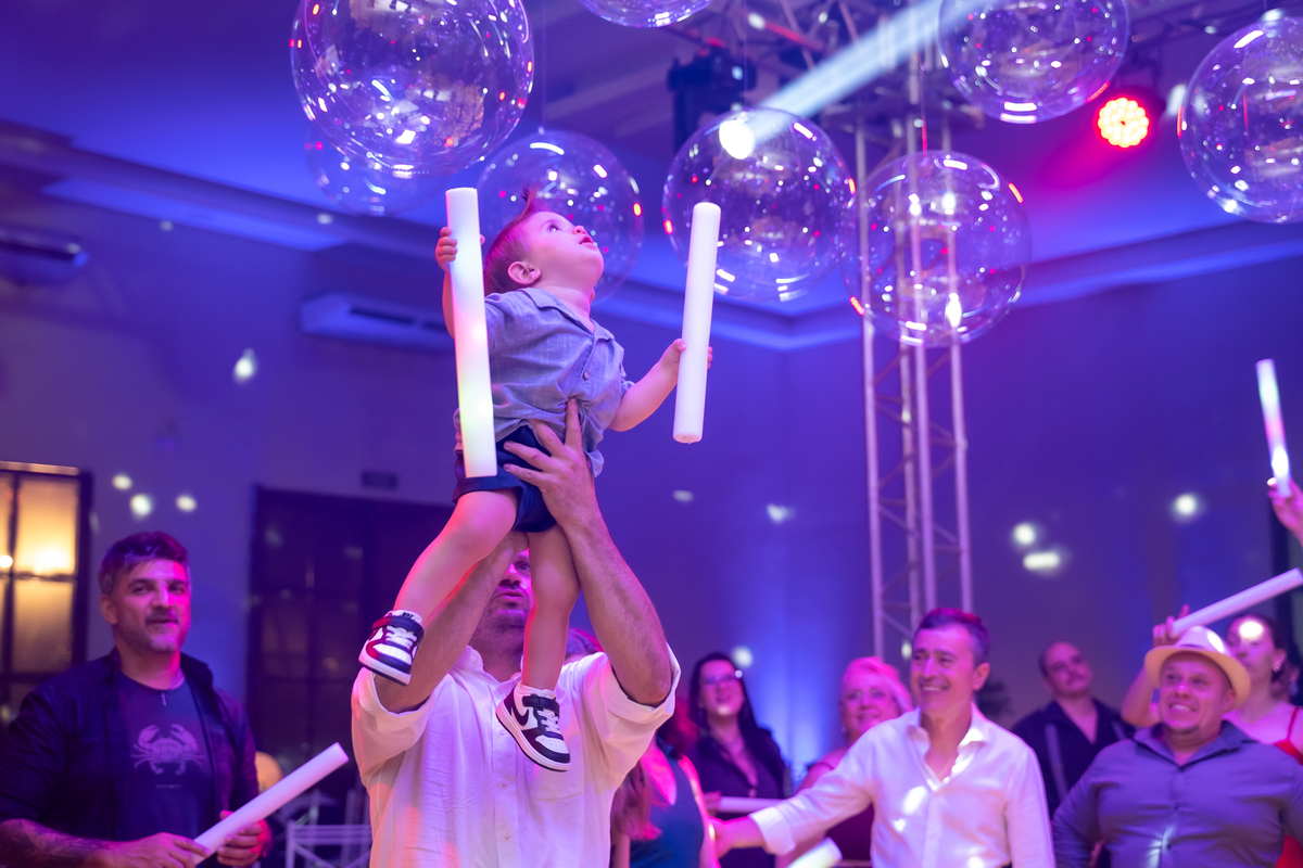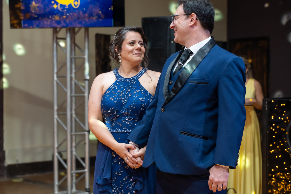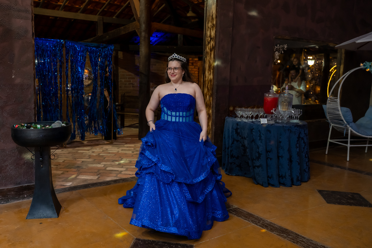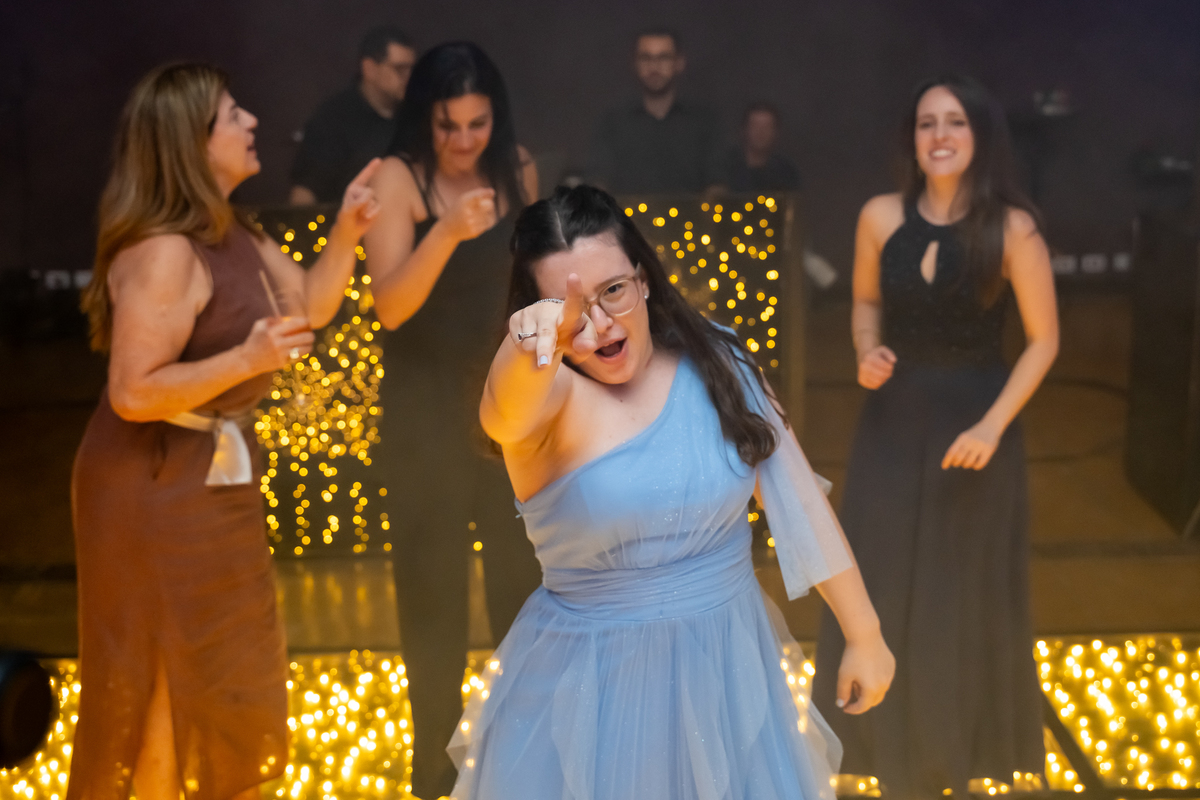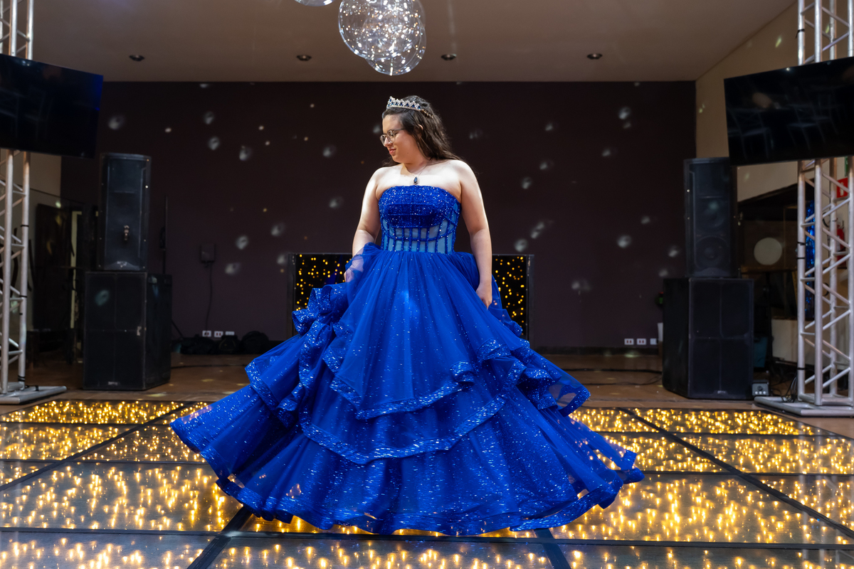 A pista de dança ficou animadíssima, com muita alegria e energia. Teve dança com o pai, com a mãe, com as amigas… momentos emocionantes e cheios de significado.
