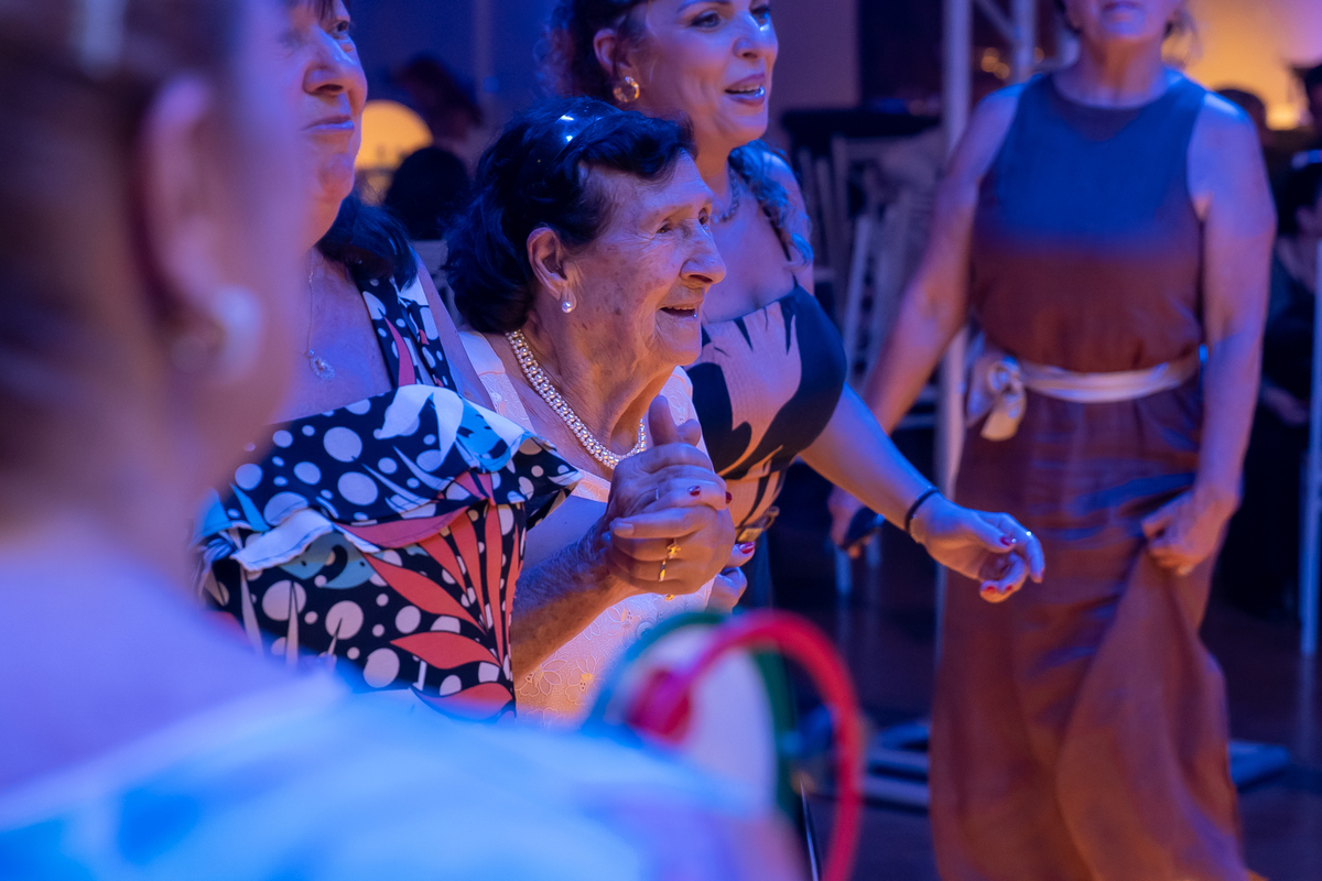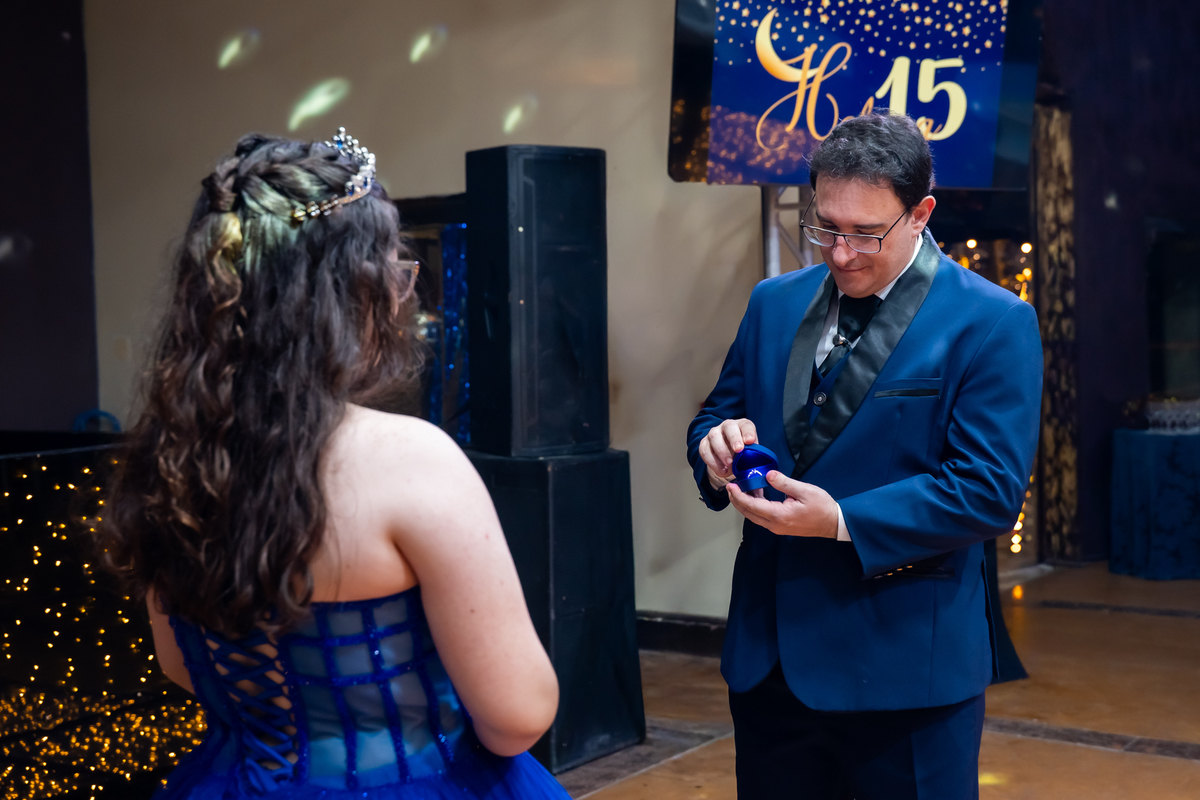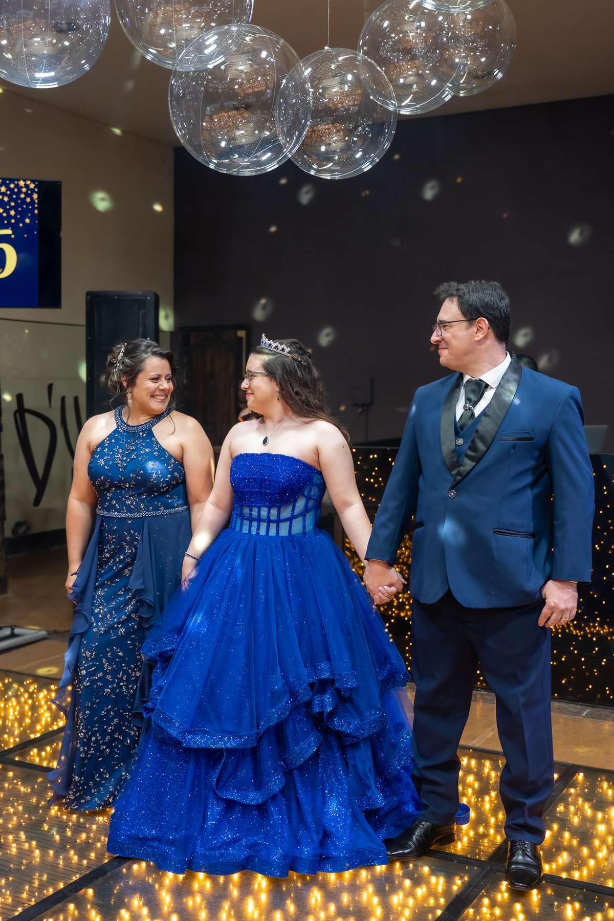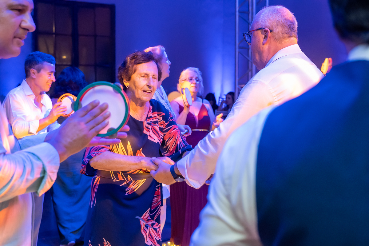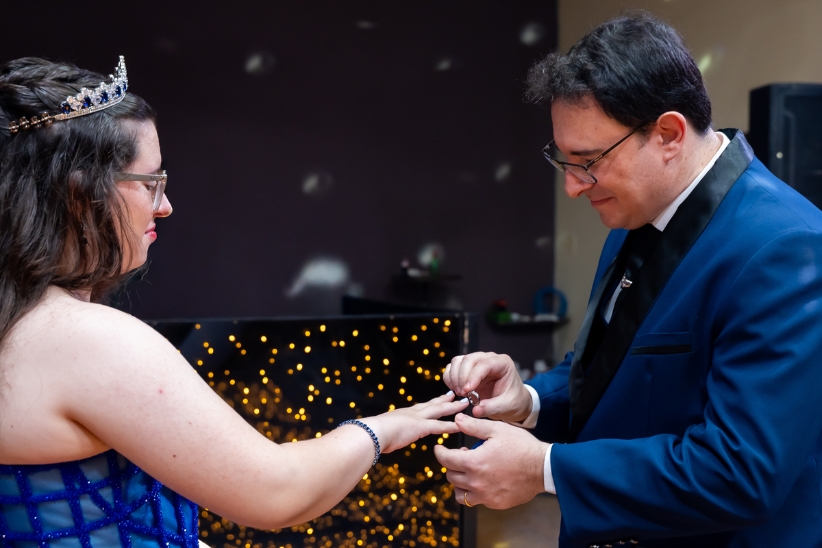 A pista de dança ficou animadíssima, com muita alegria e energia. Teve dança com o pai, com a mãe, com as amigas… momentos emocionantes e cheios de significado.