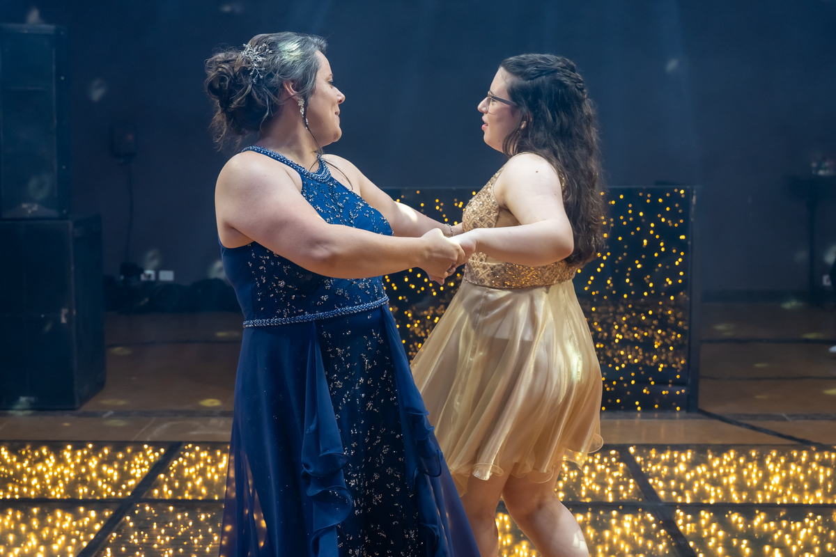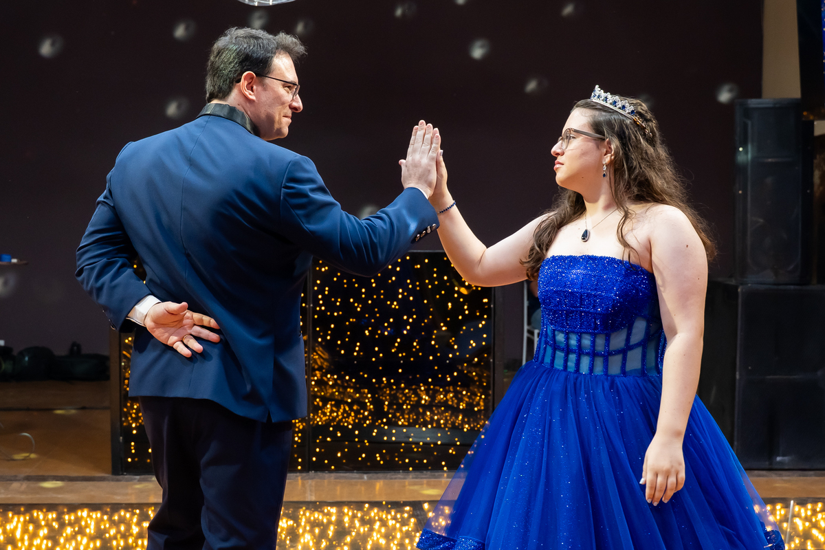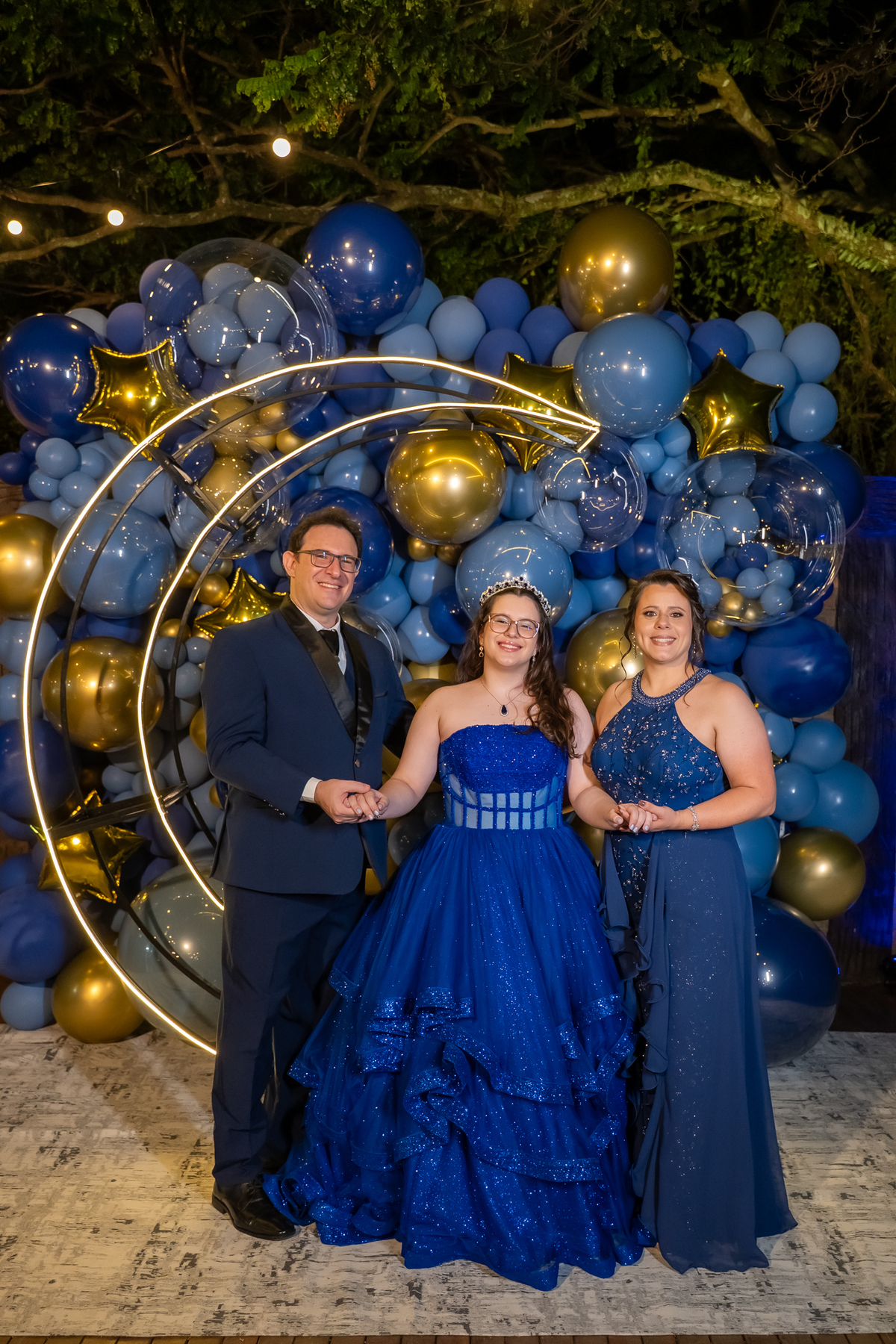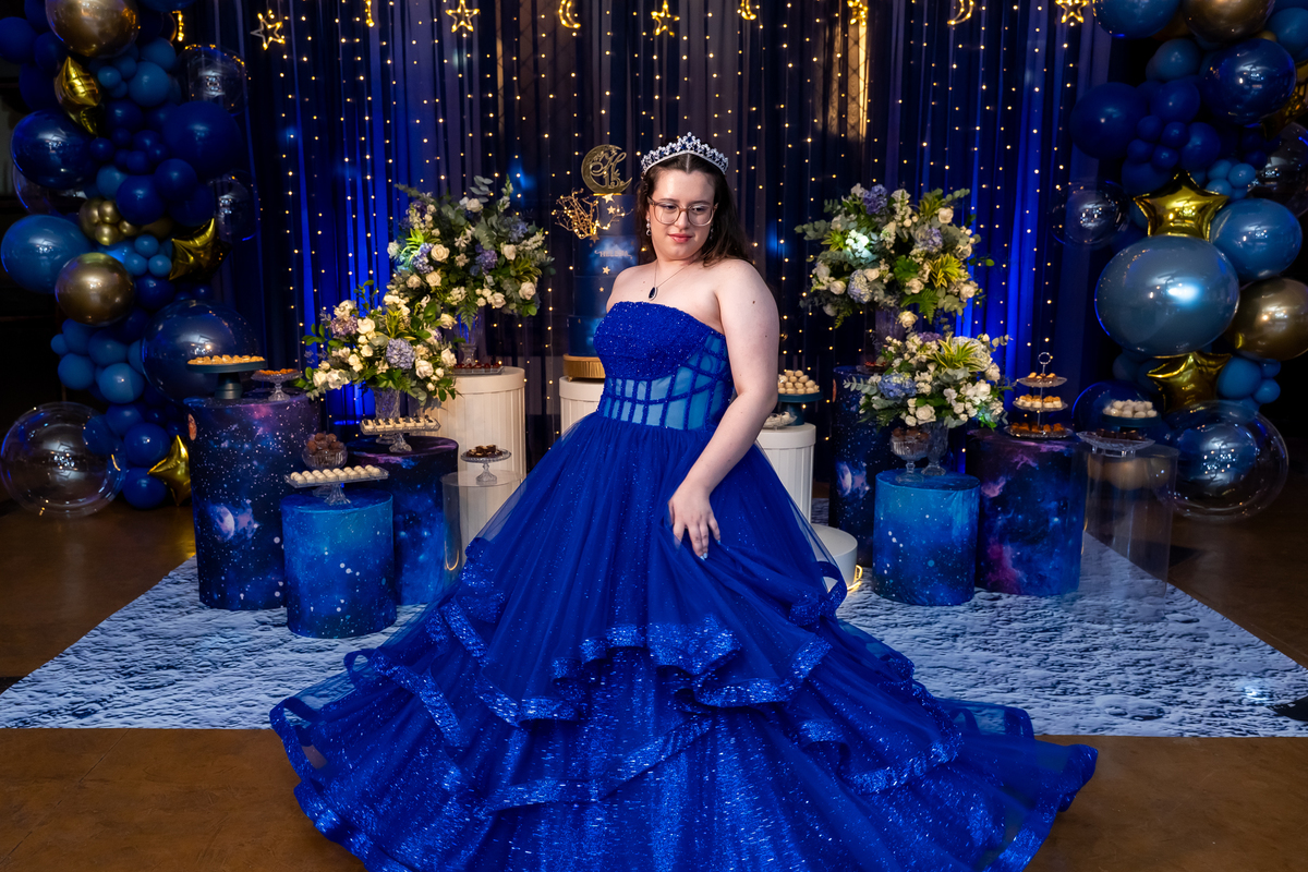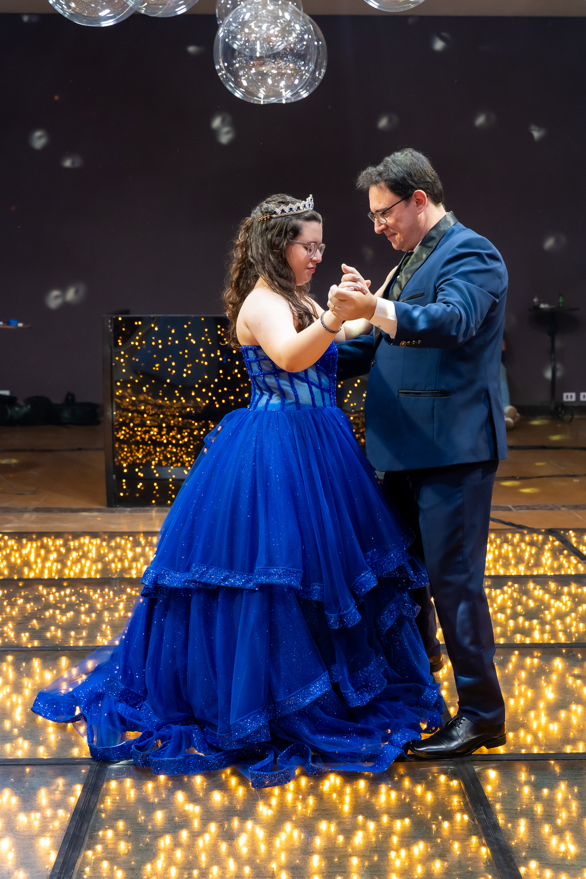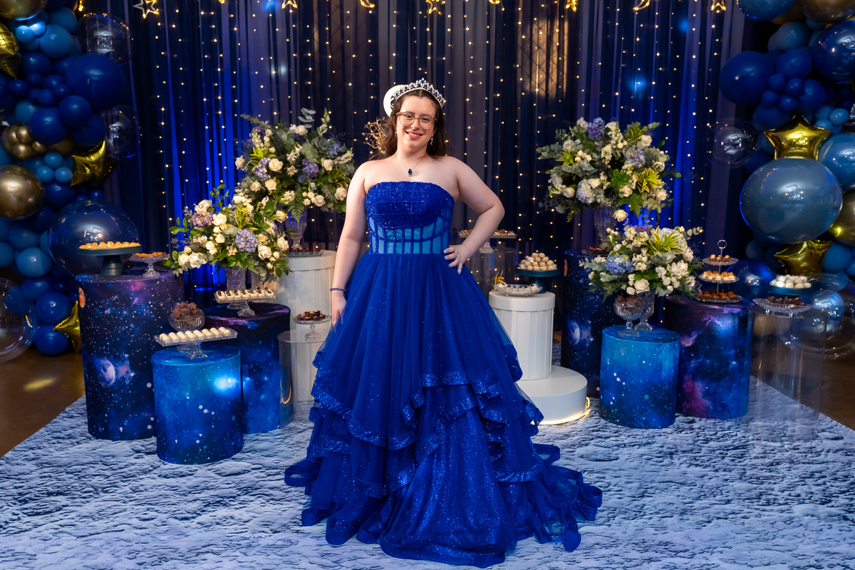 A pista de dança ficou animadíssima, com muita alegria e energia. Teve dança com o pai, com a mãe, com as amigas… momentos emocionantes e cheios de significado.