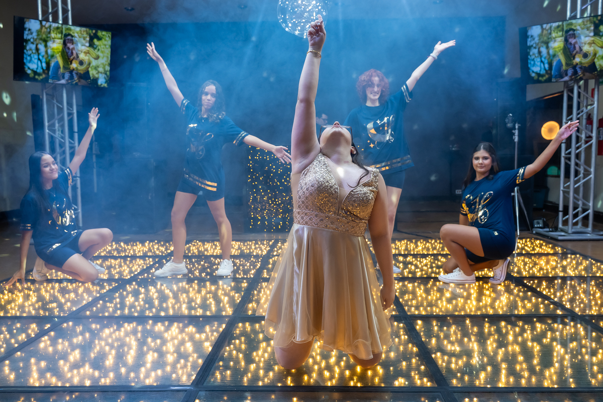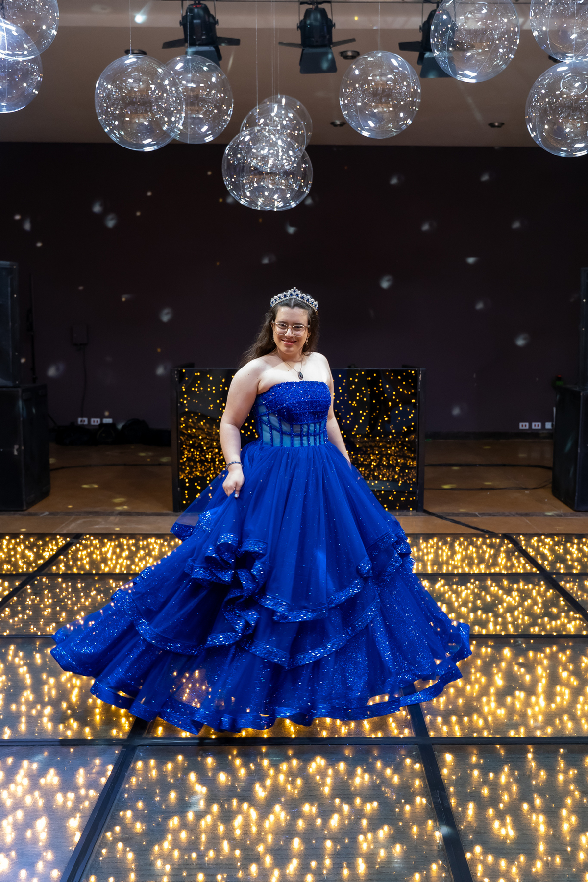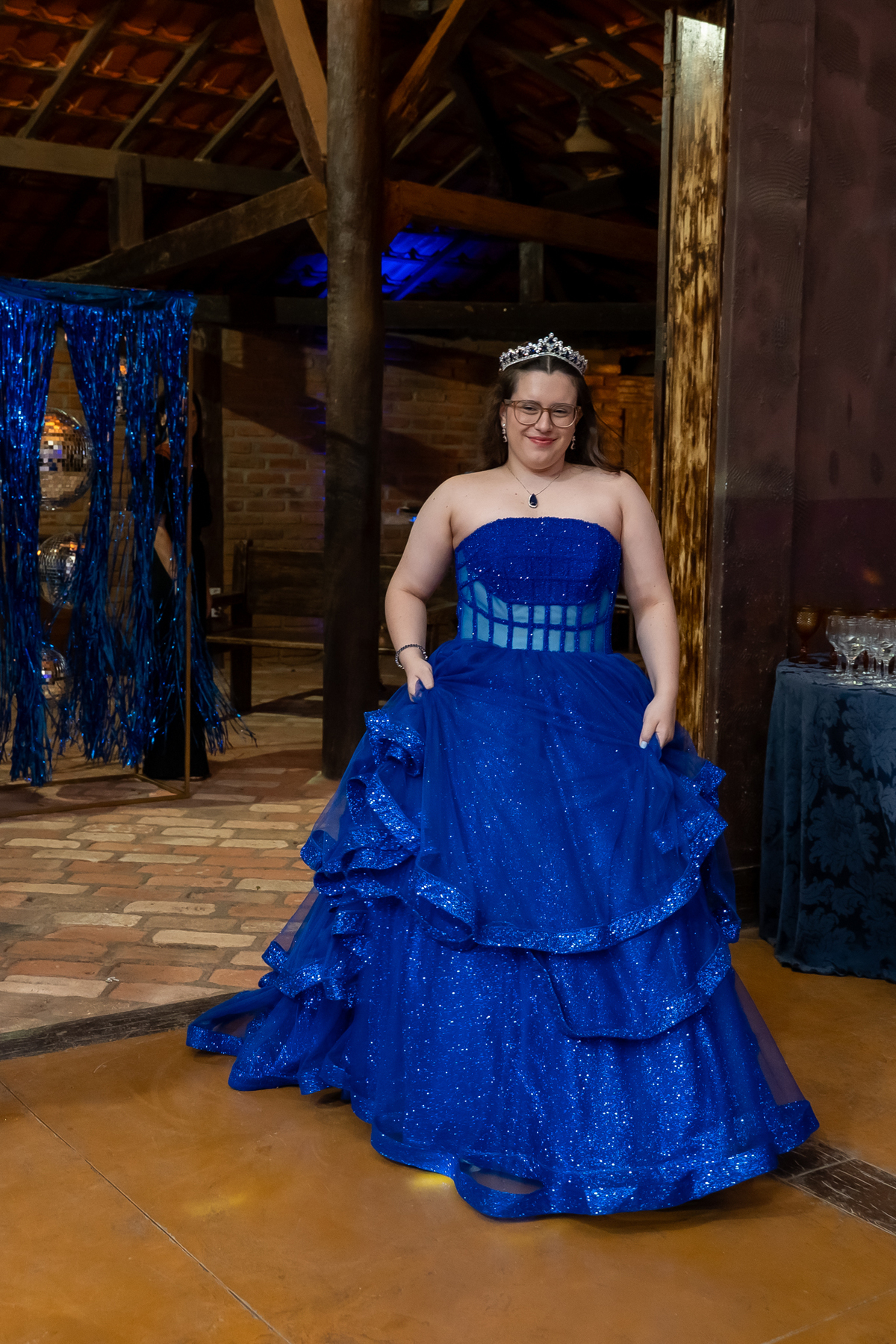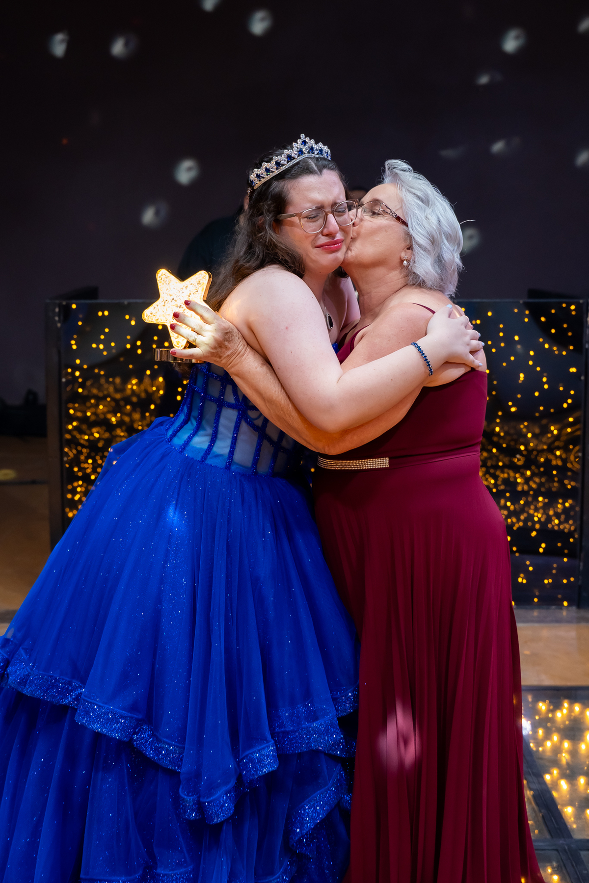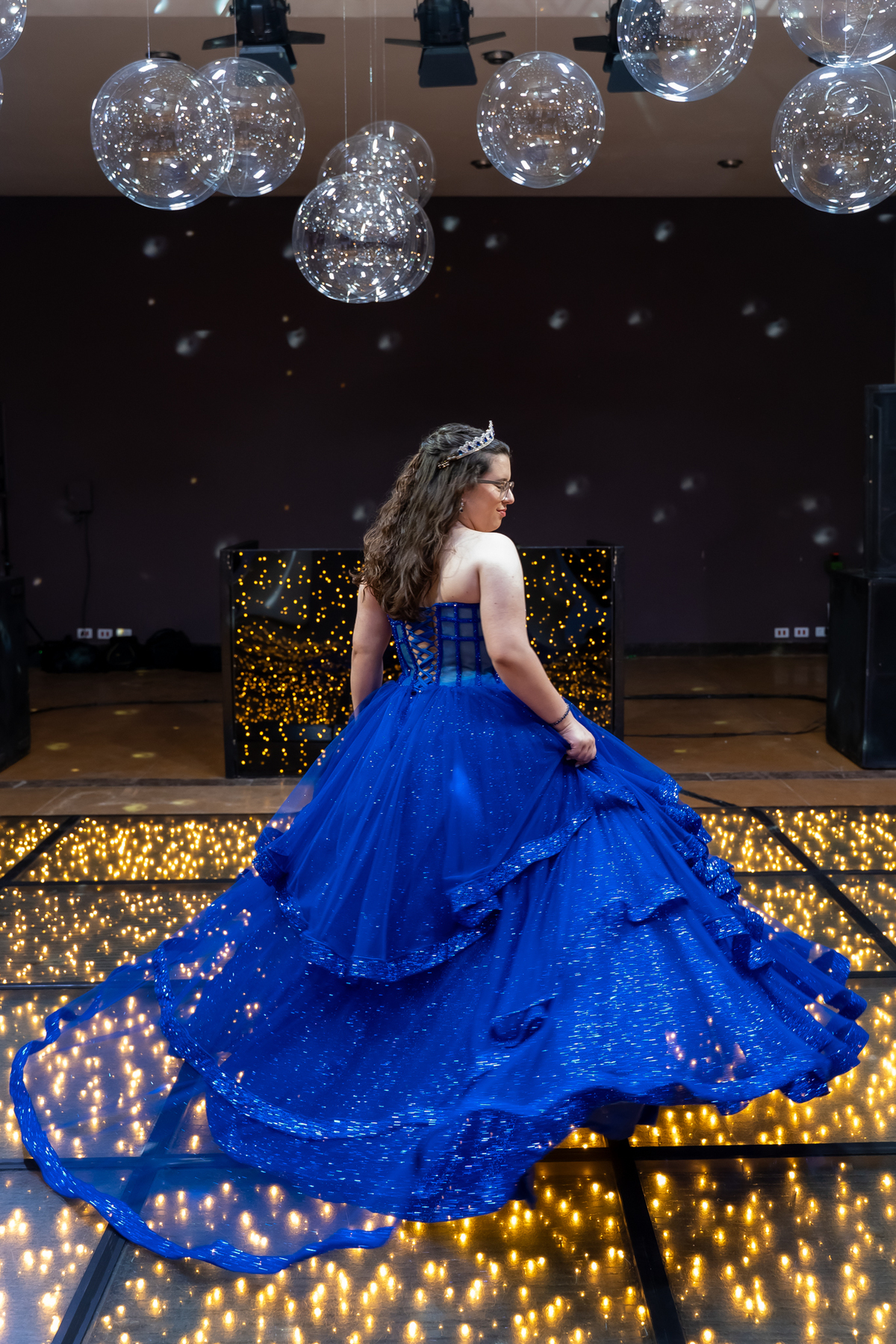 A pista de dança ficou animadíssima, com muita alegria e energia. Teve dança com o pai, com a mãe, com as amigas… momentos emocionantes e cheios de significado.