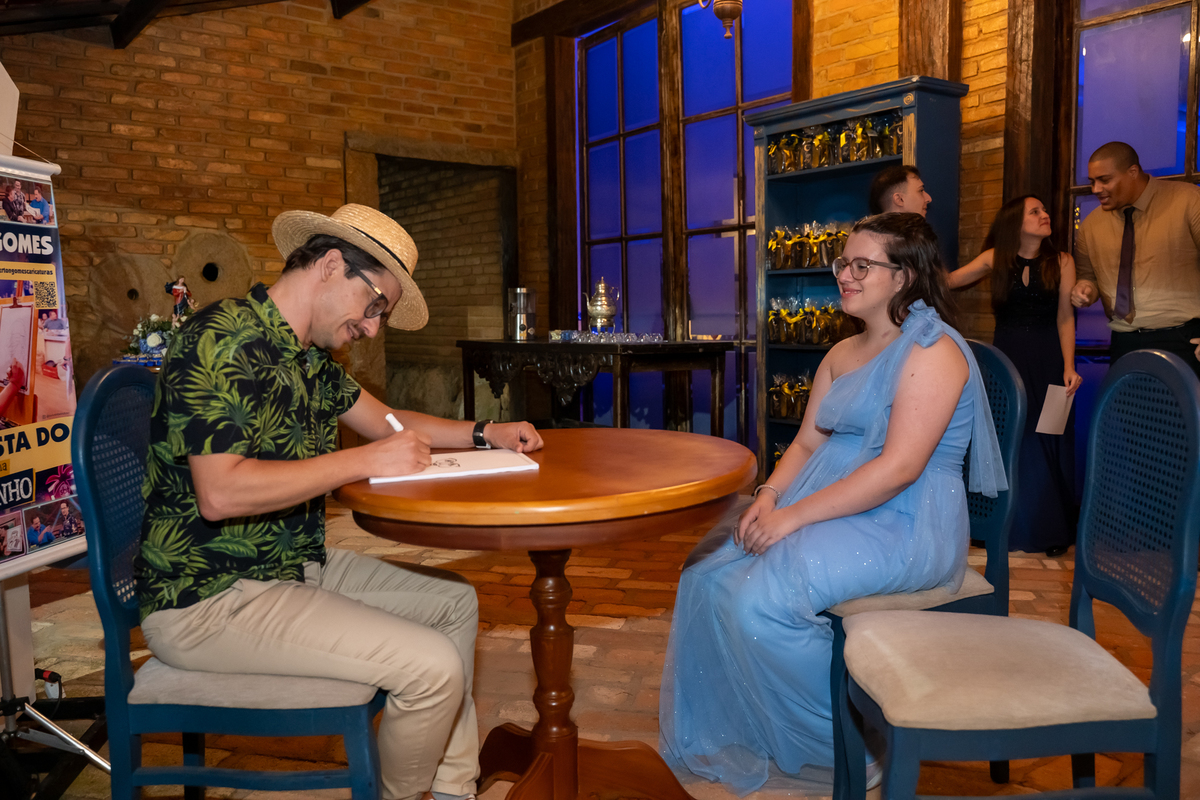 Tivemos ainda a presença especial da Rusk Sorvetes, trazendo um toque refrescante à noite, a Mob Set Locações, que contribuiu com lindos ornamentos para o ambiente. A cabine Photo Fest Jundiaí garantiu registros divertidos, e o talento do Cleverton Gomes encantou a todos com suas caricaturas. Os drinks ficaram impecáveis com a Companhia Patrick Bartenders.