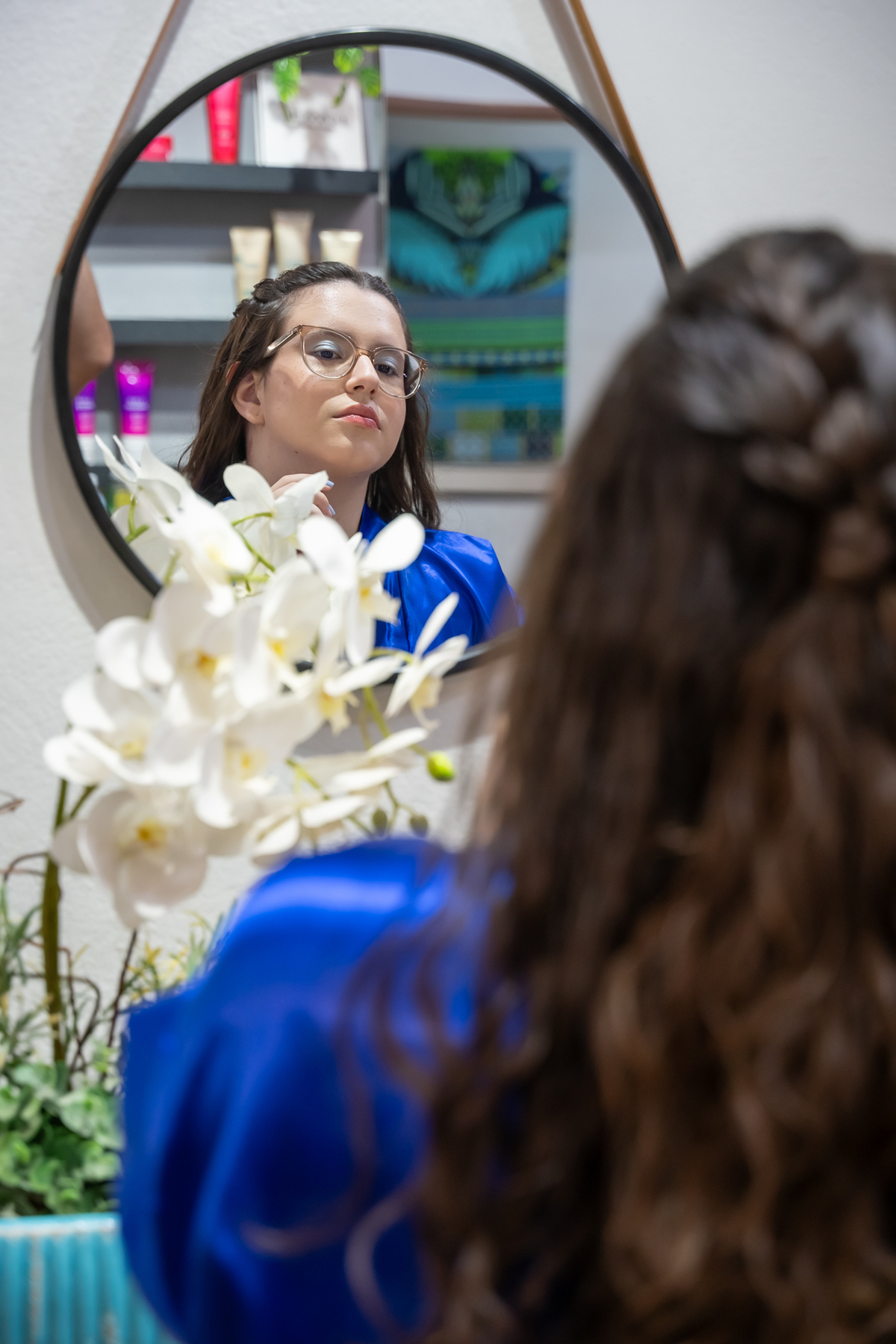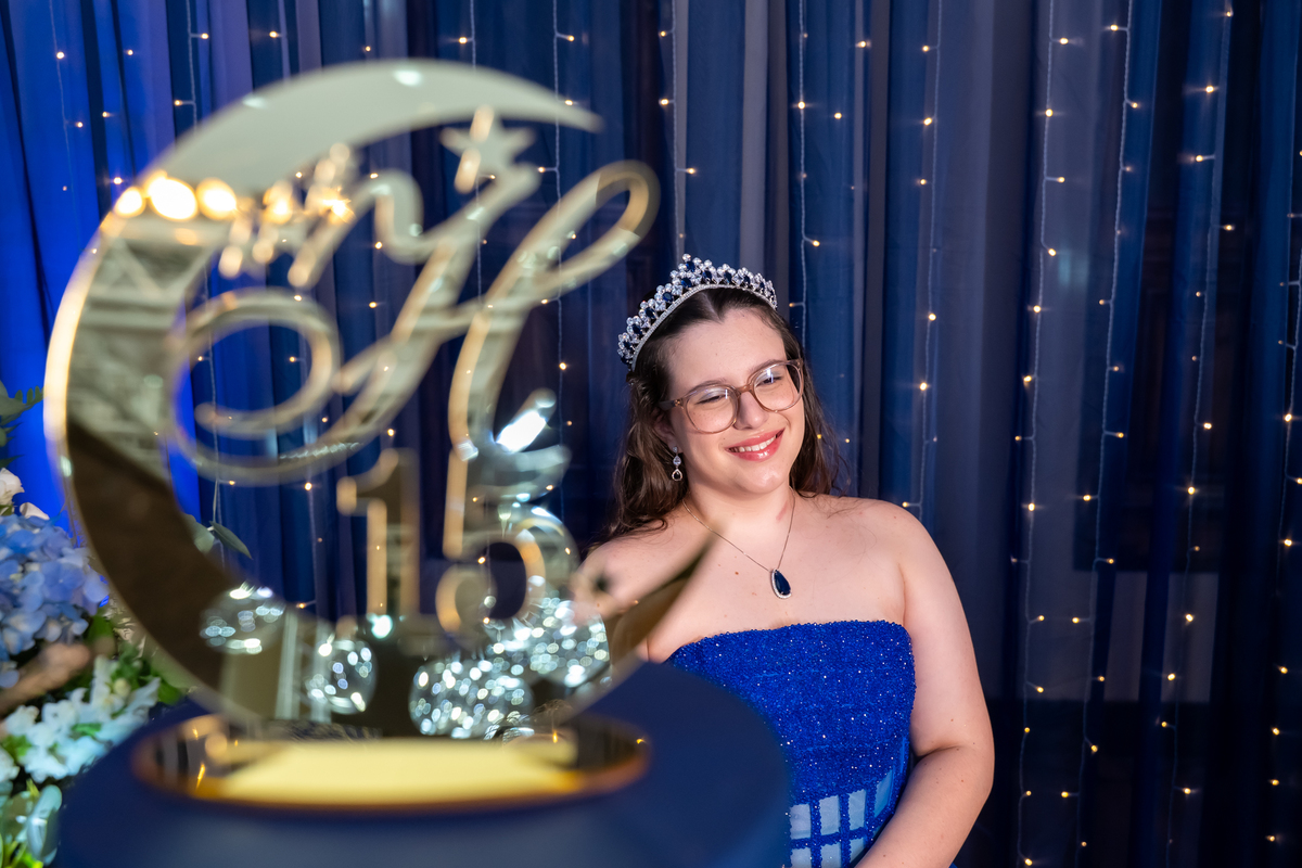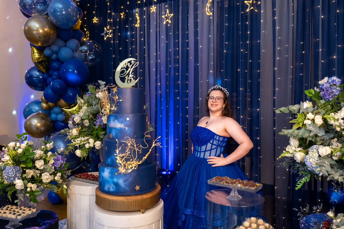 A decoração, assinada pelo Laço de Fitta, estava simplesmente maravilhosa — cada cantinho digno de muitos cliques, e a Helena aproveitou cada detalhe para registrar esse momento único!