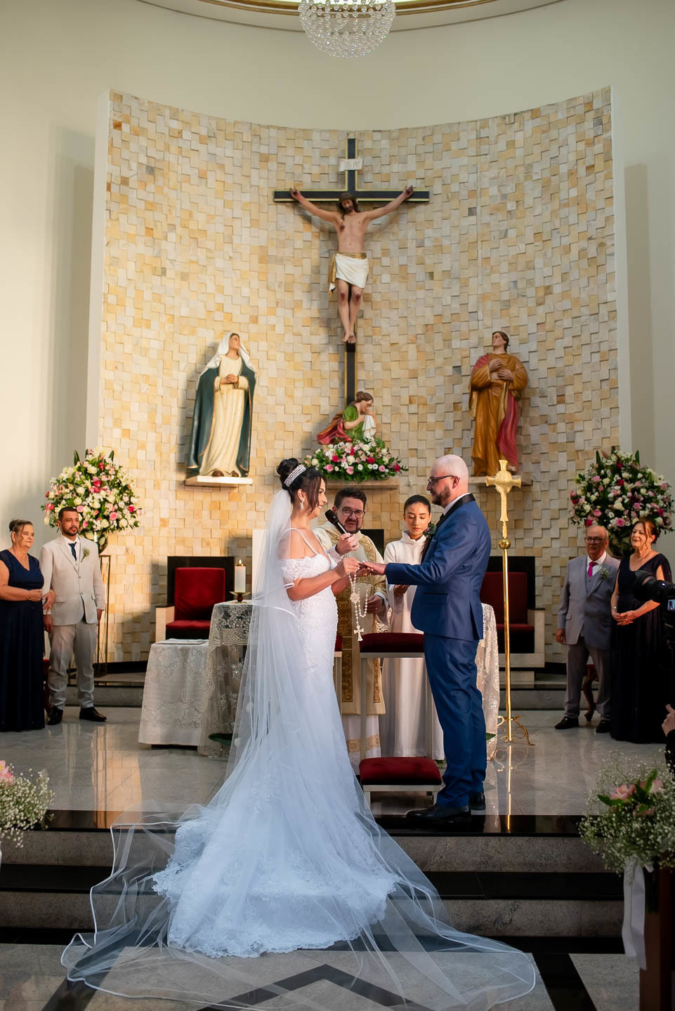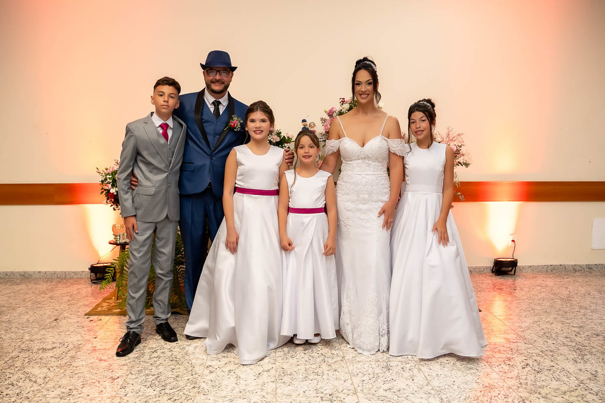 A emocionante cerimônia aconteceu na Paróquia Nossa Senhora da Piedade, onde o casal recebeu as bênçãos ao lado de seus filhos, que testemunharam com alegria este capítulo tão especial.