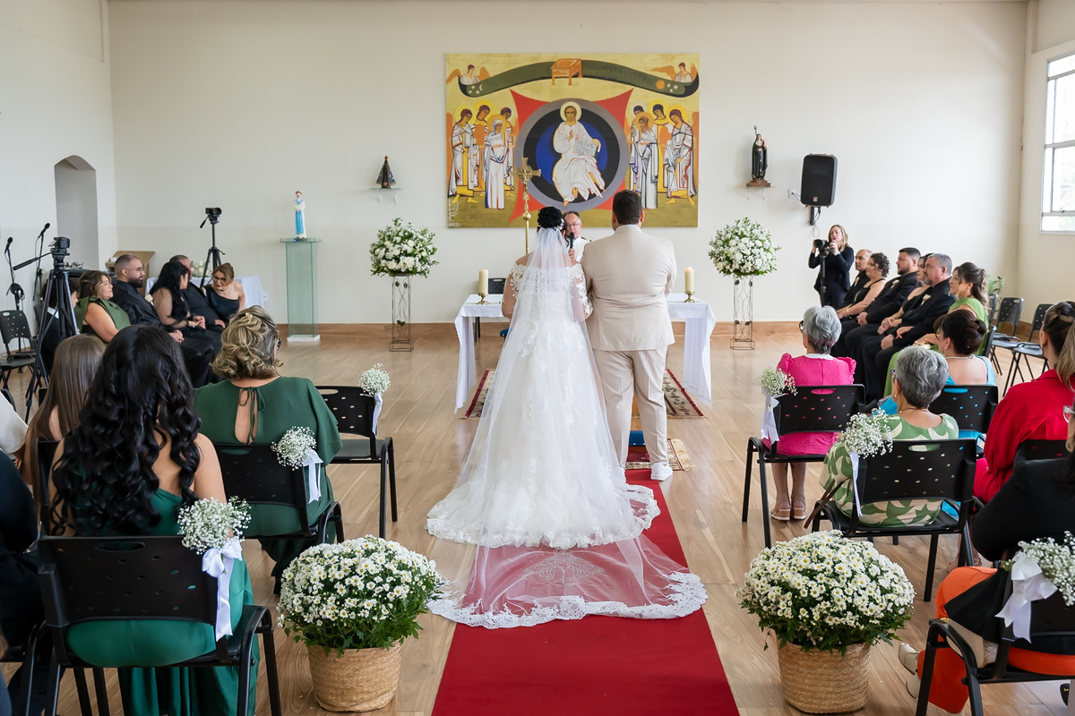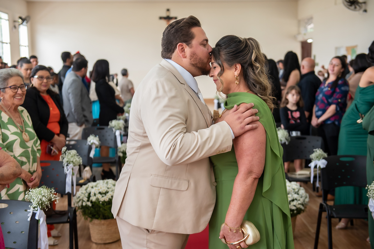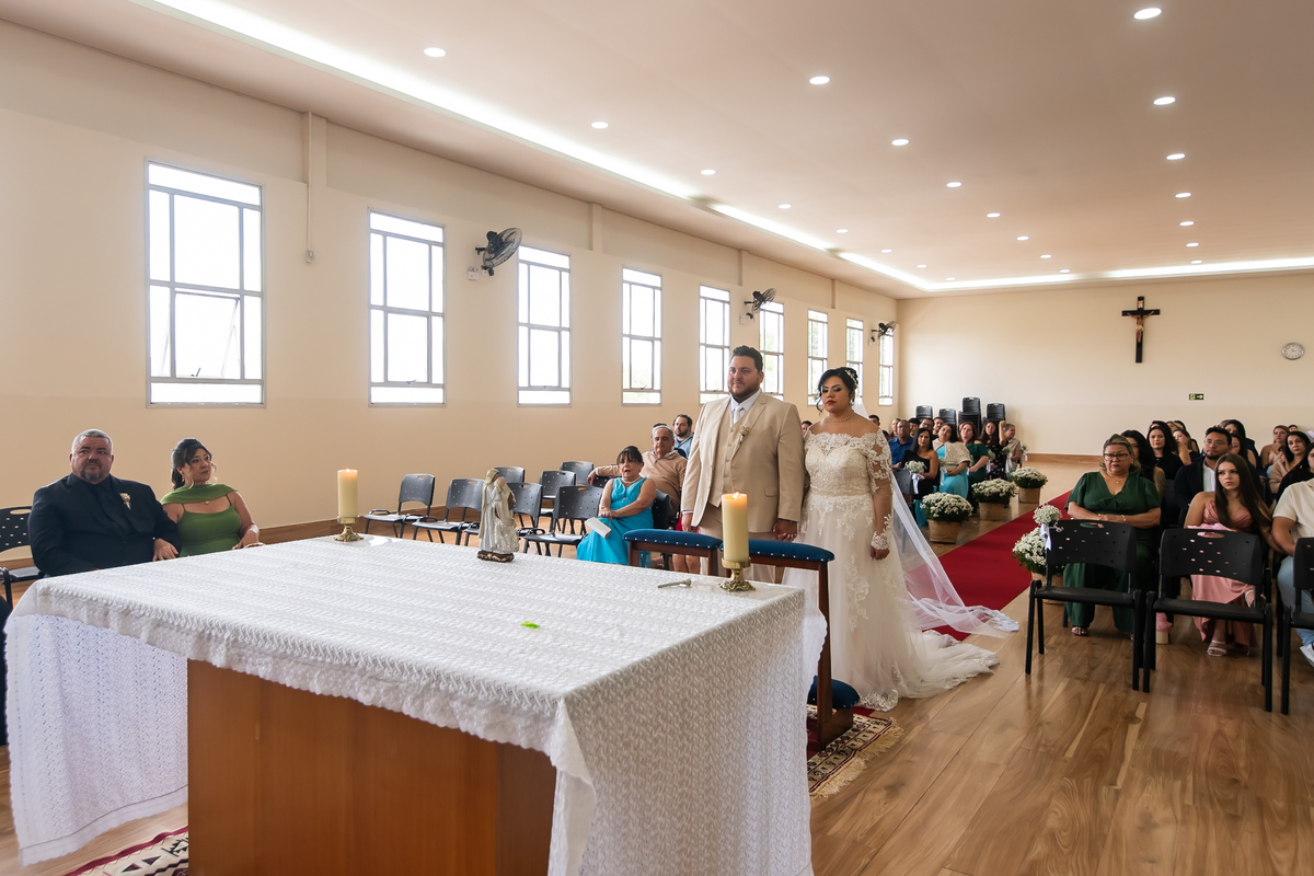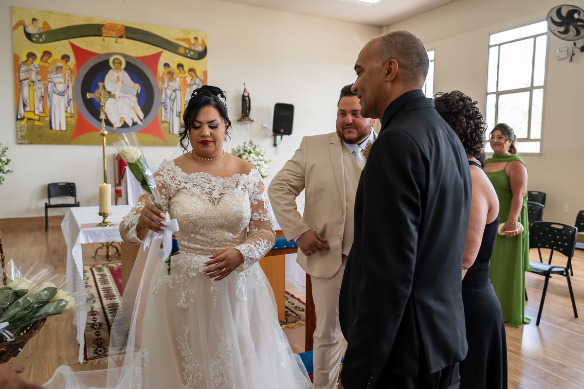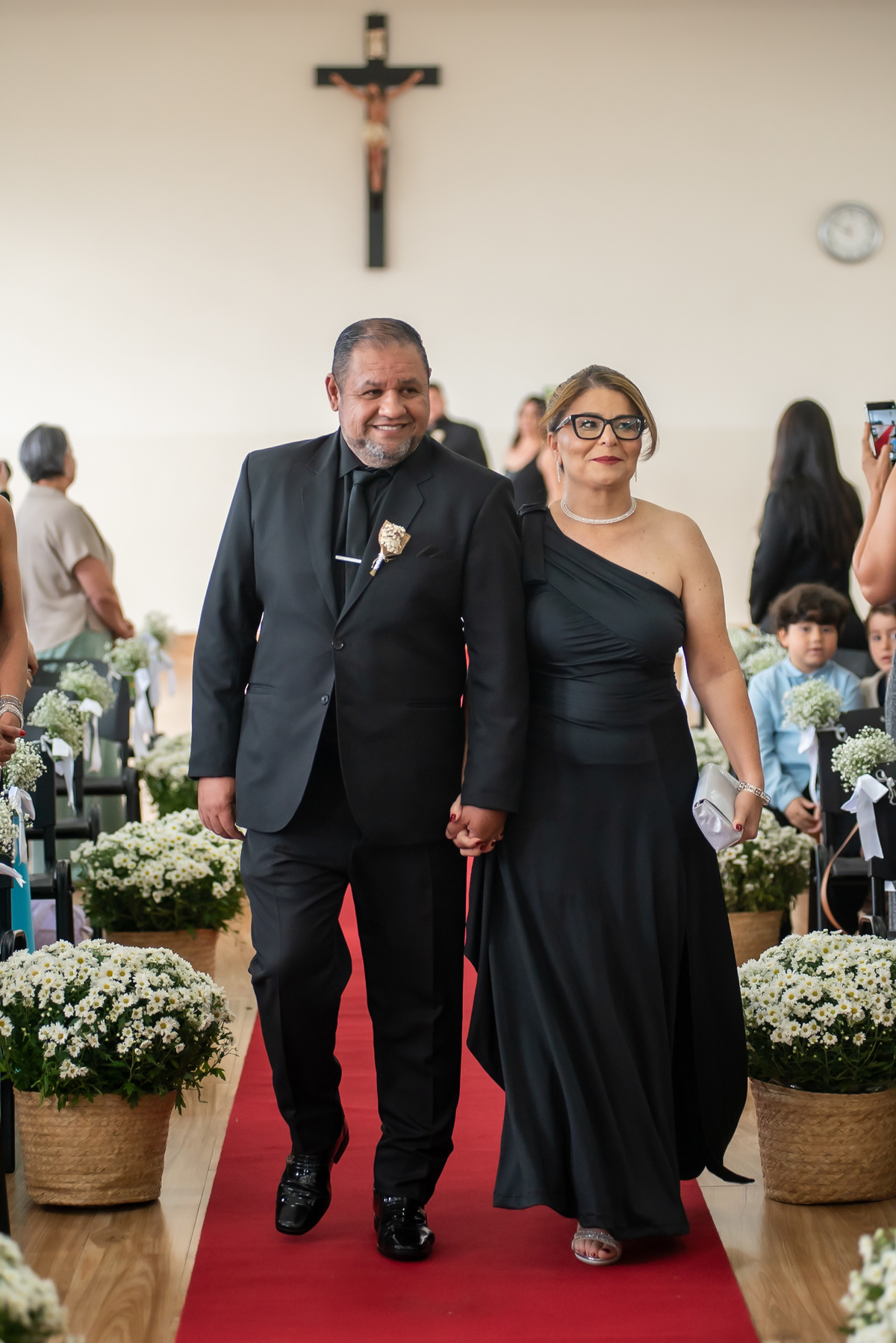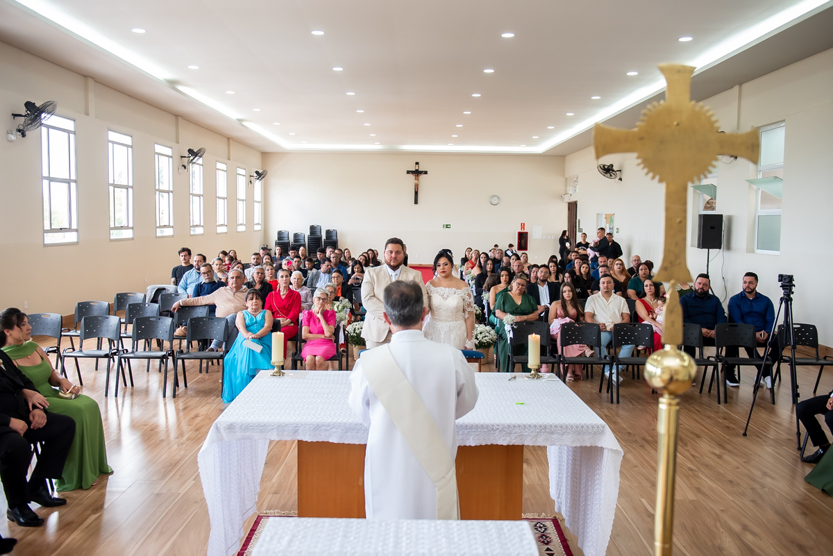 A cerimônia aconteceu no salão da Paróquia do Jardim Santa Gertrudes, rodeada de emoção, família e bênçãos que encheram o ambiente de luz.