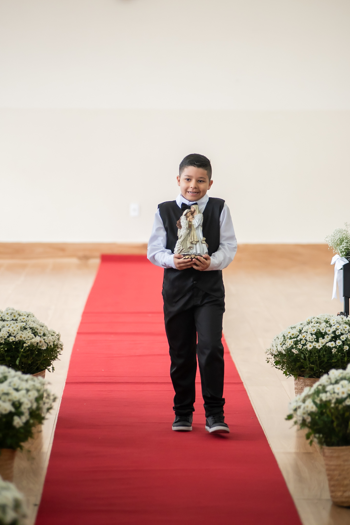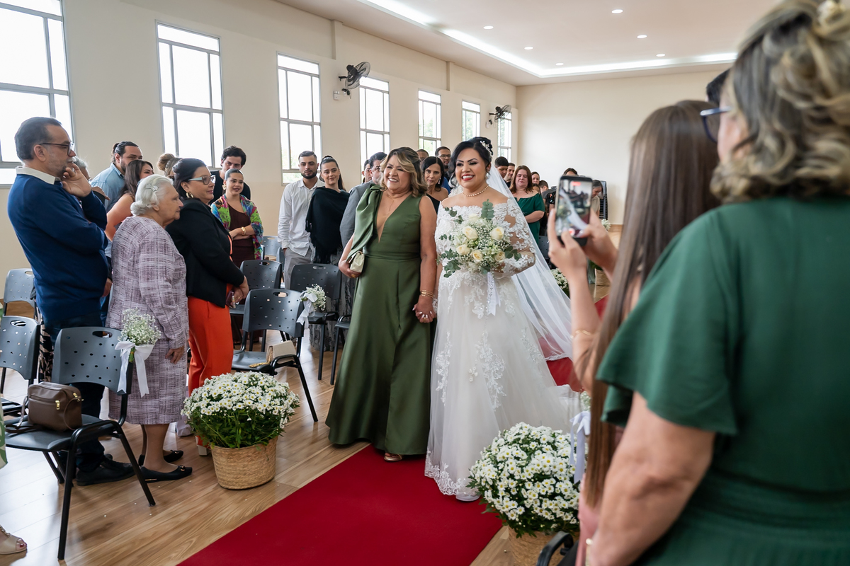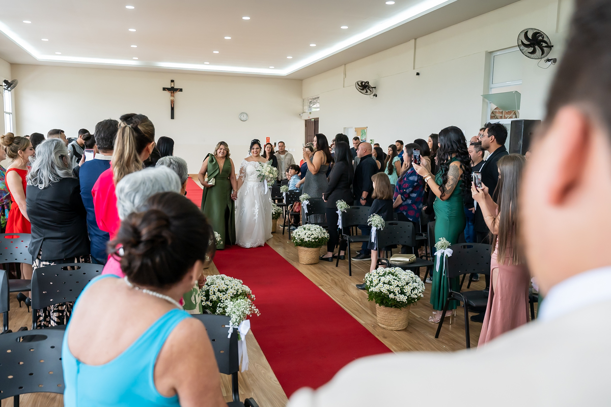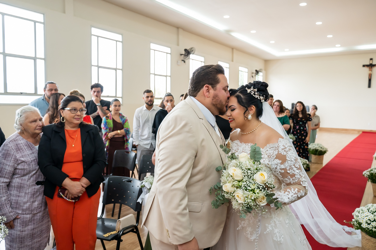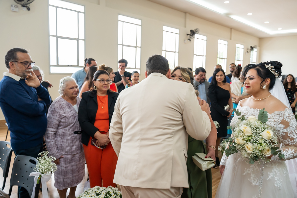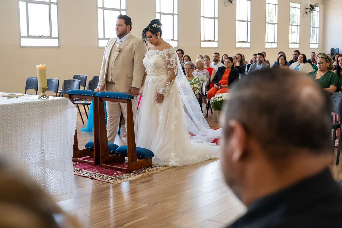 A cerimônia aconteceu no salão da Paróquia do Jardim Santa Gertrudes, rodeada de emoção, família e bênçãos que encheram o ambiente de luz.