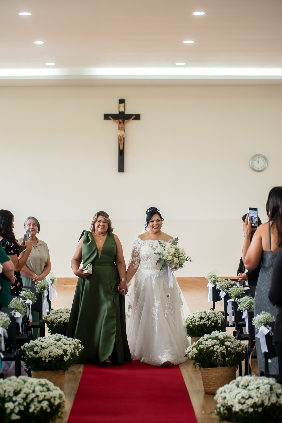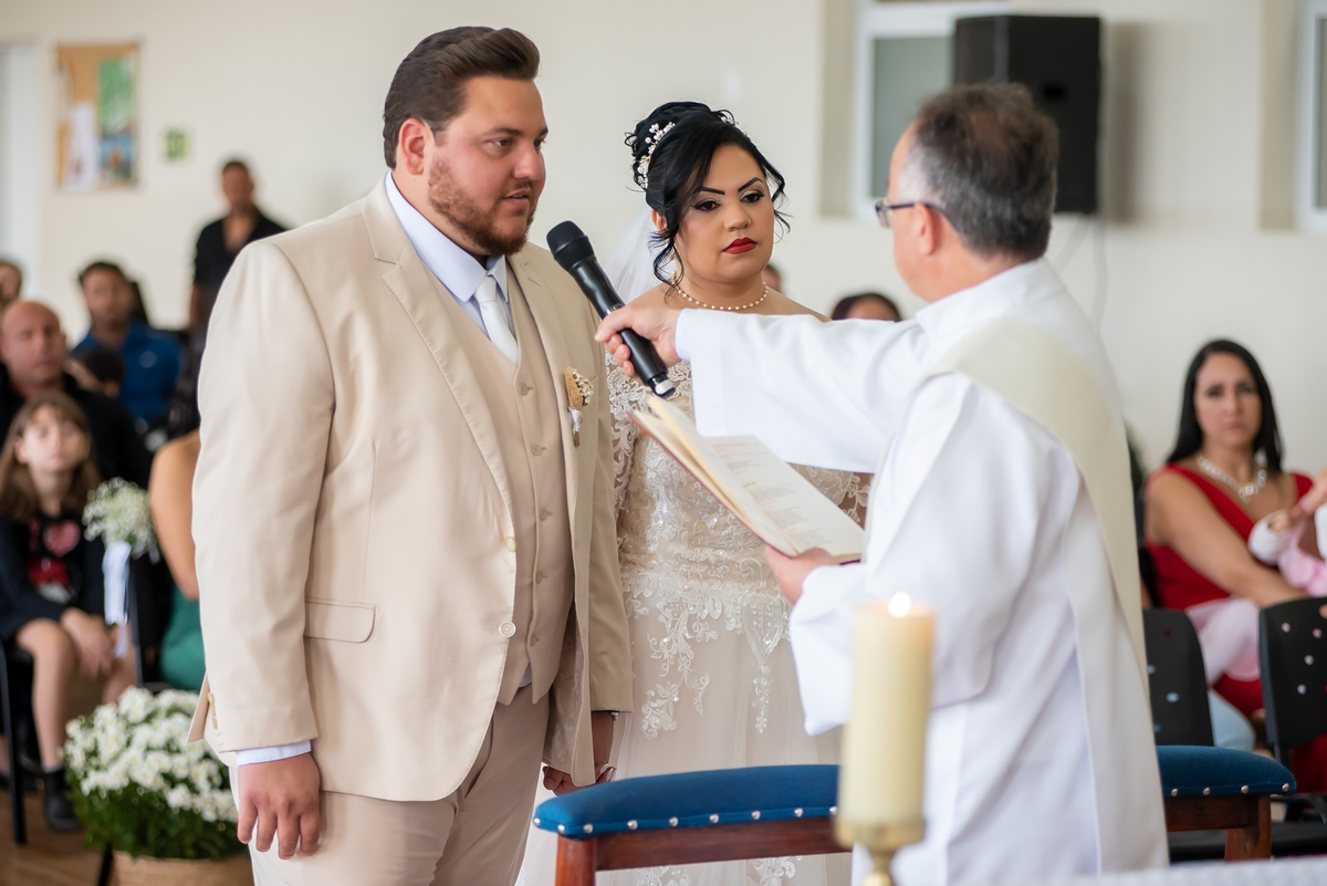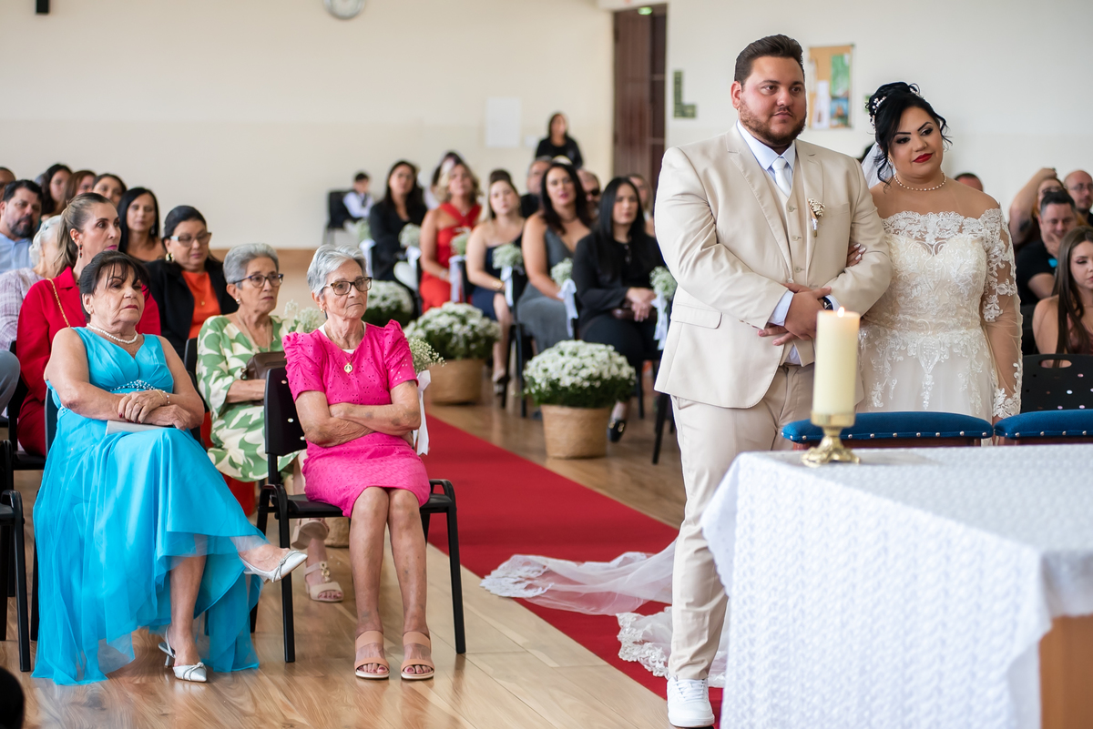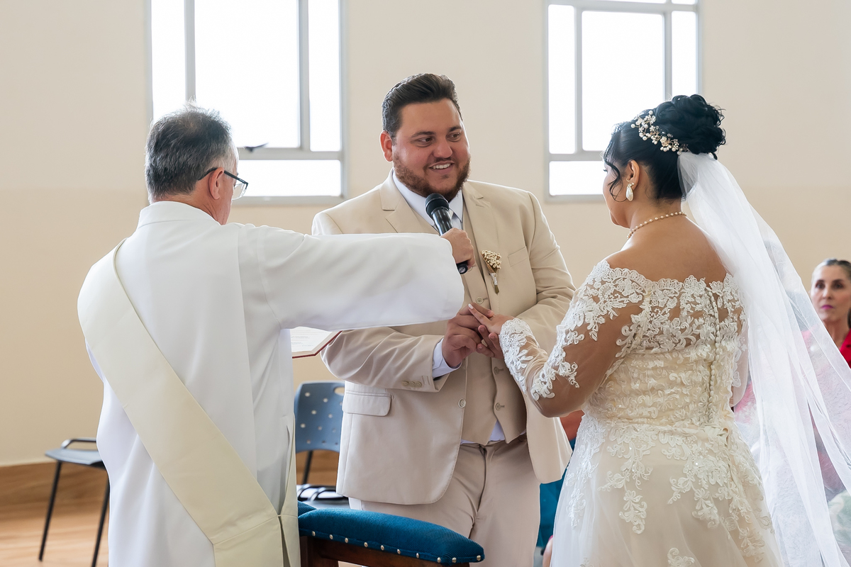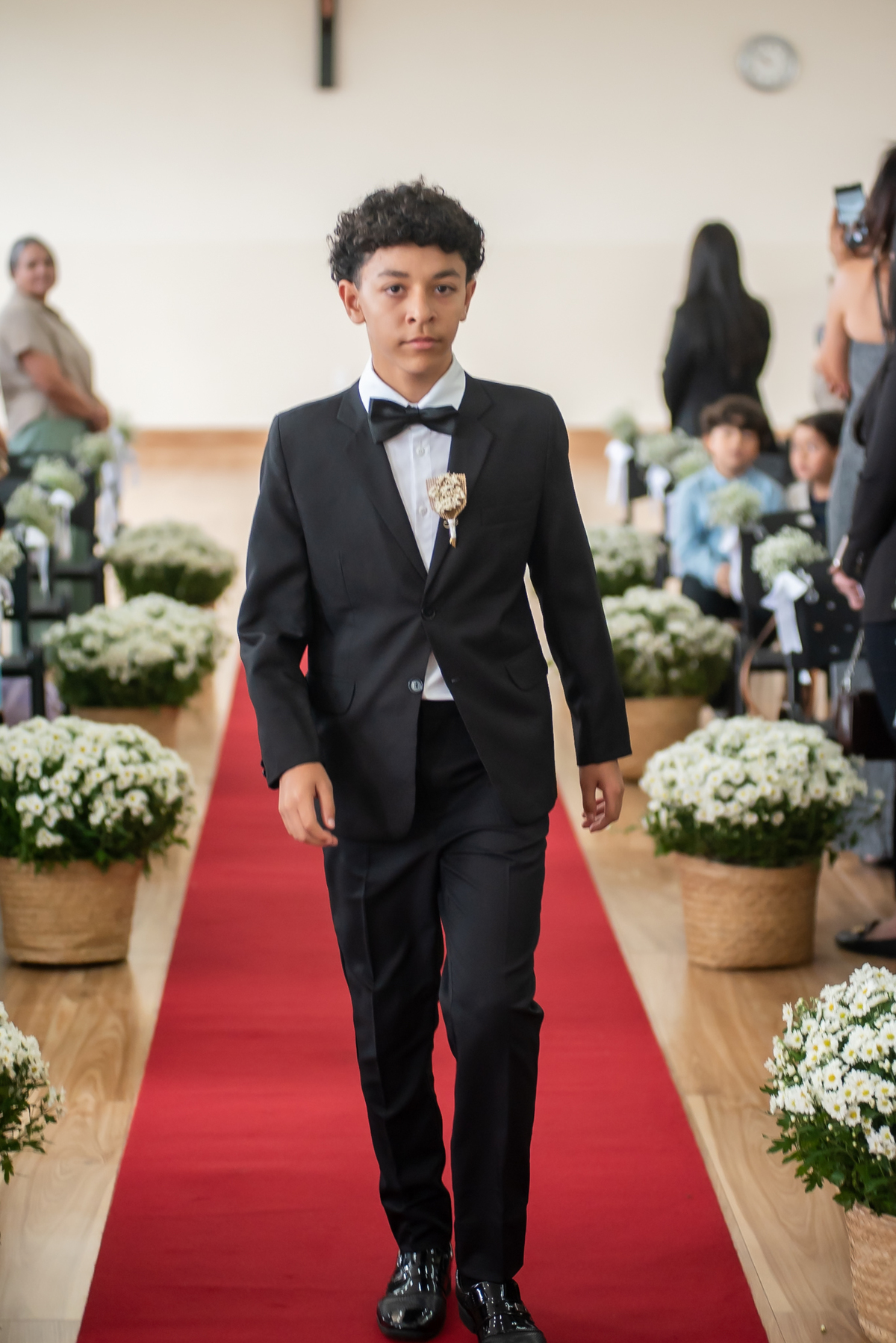 A cerimônia aconteceu no salão da Paróquia do Jardim Santa Gertrudes, rodeada de emoção, família e bênçãos que encheram o ambiente de luz.