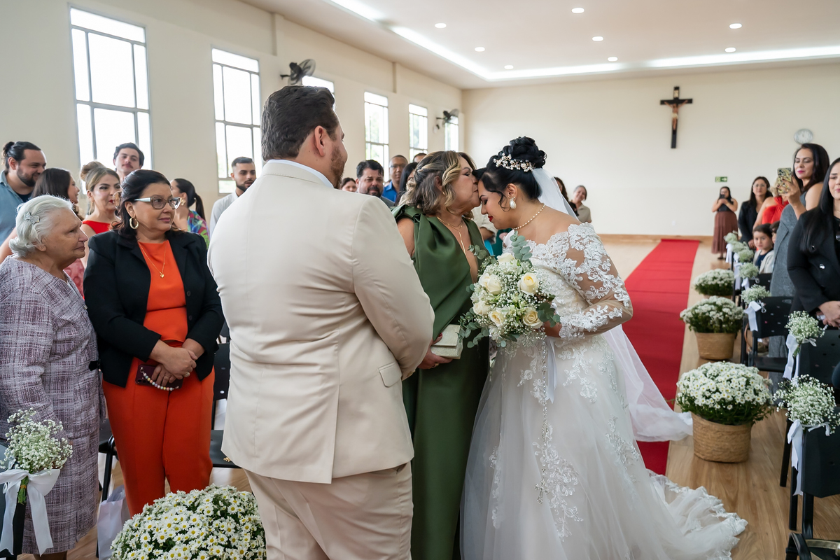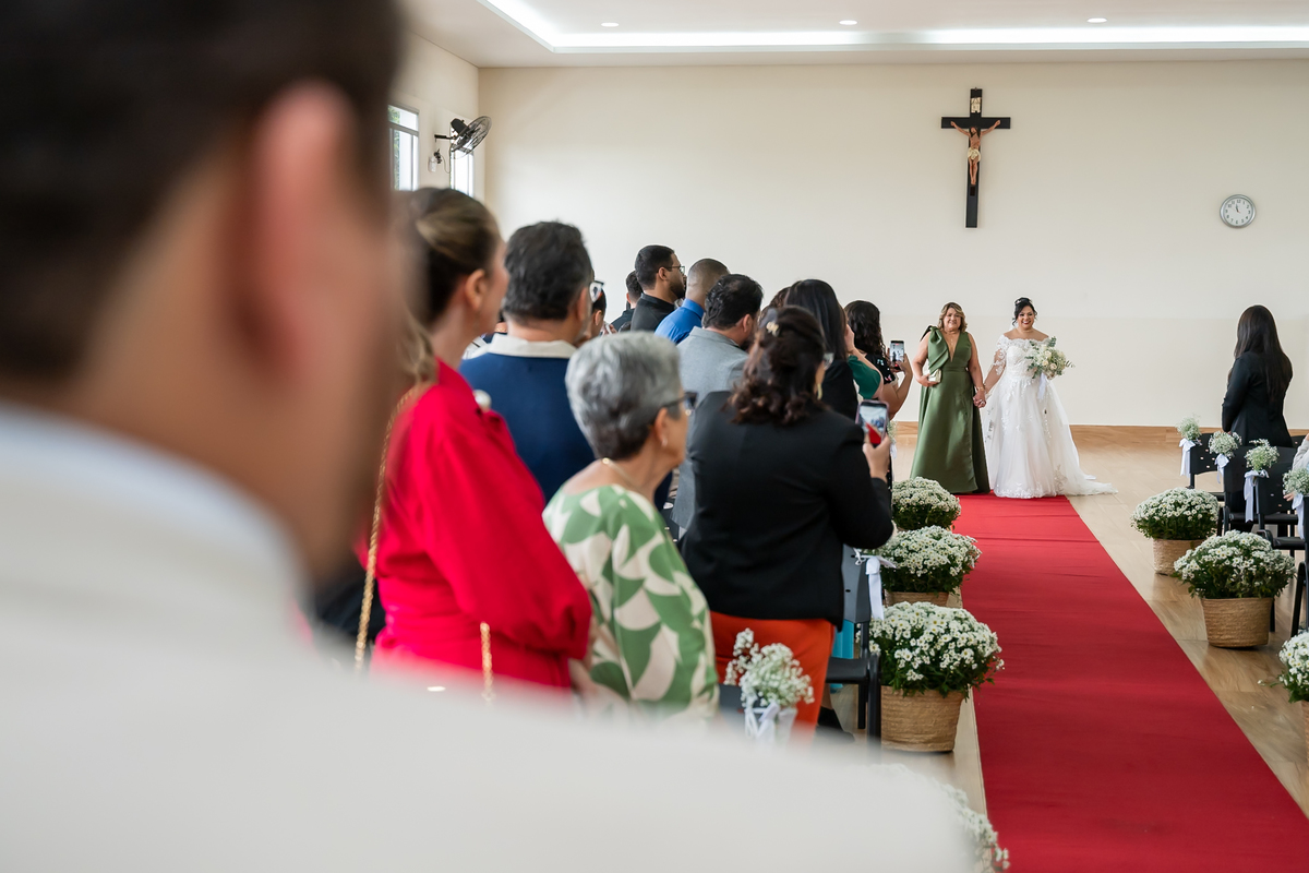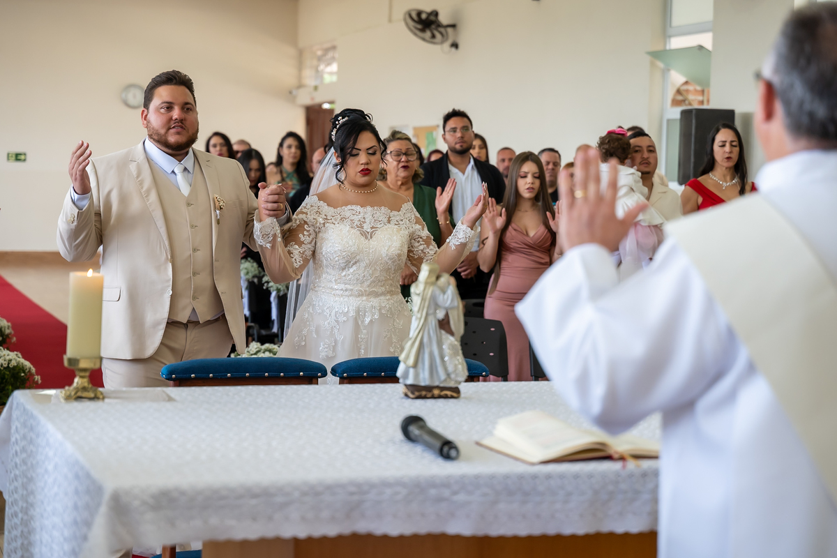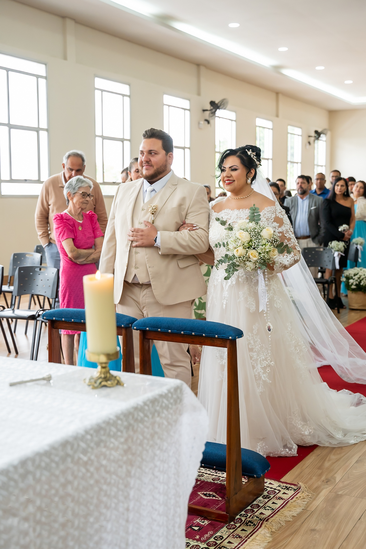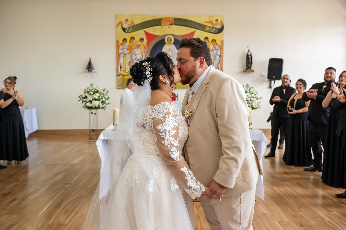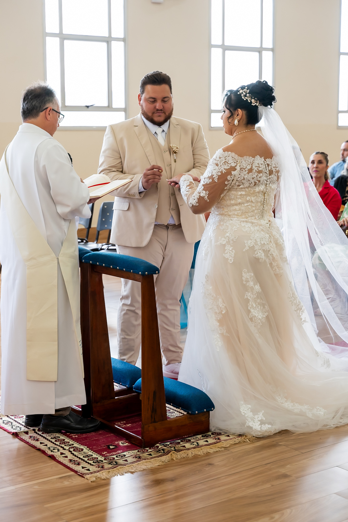 A cerimônia aconteceu no salão da Paróquia do Jardim Santa Gertrudes, rodeada de emoção, família e bênçãos que encheram o ambiente de luz.