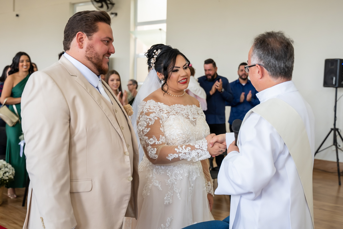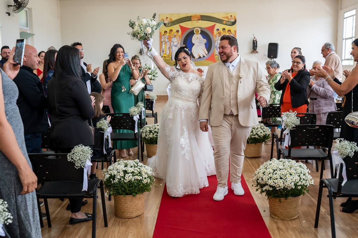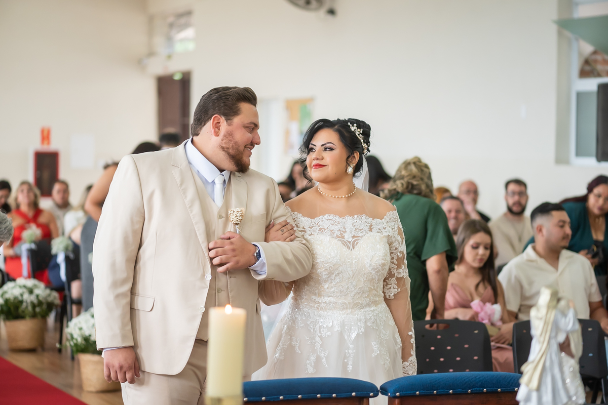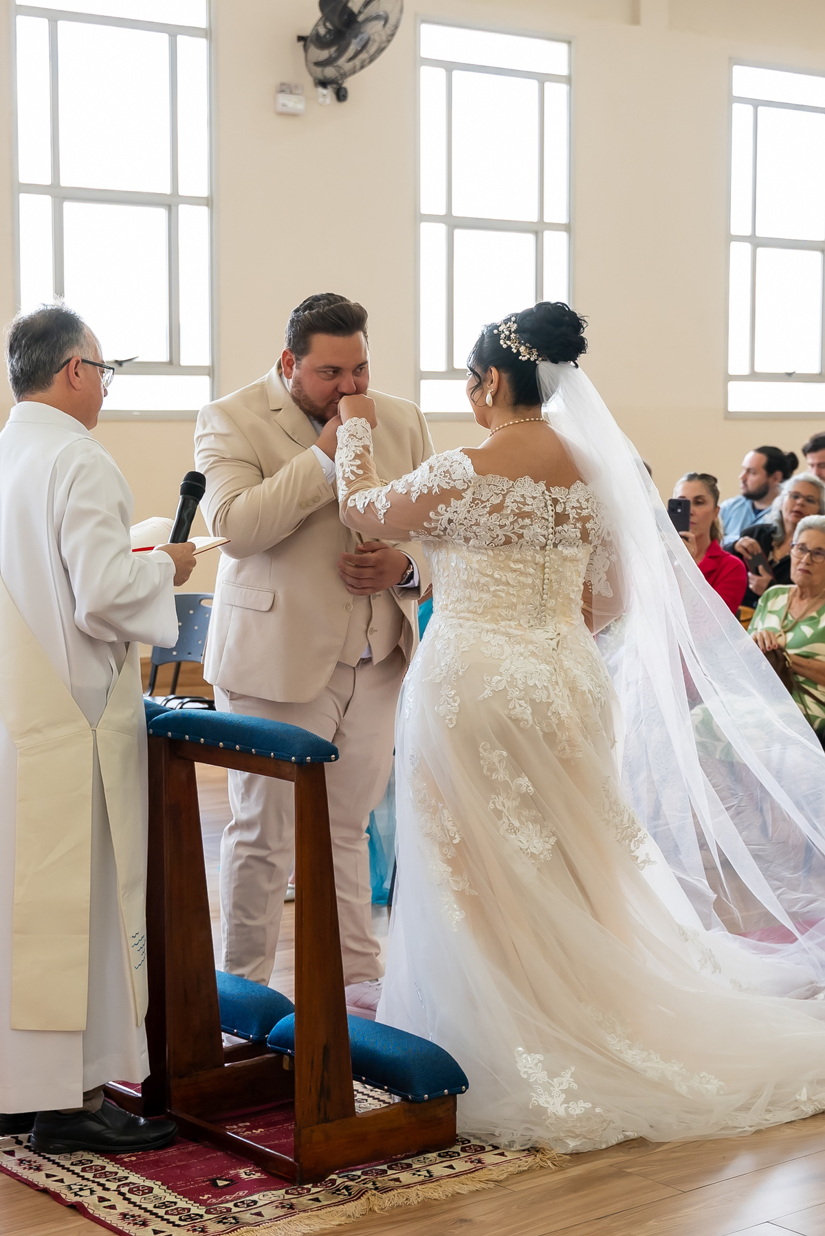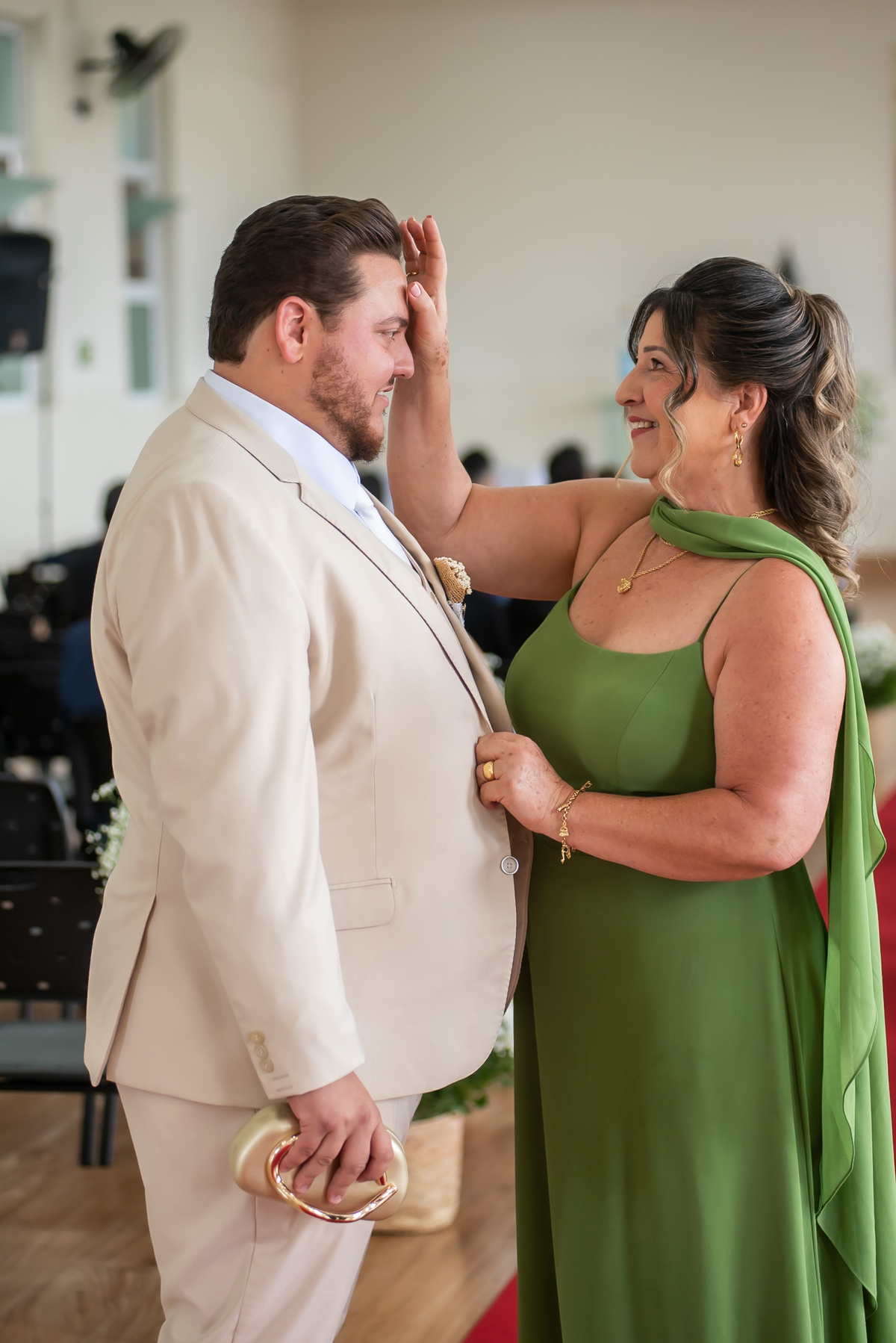A cerimônia aconteceu no salão da Paróquia do Jardim Santa Gertrudes, rodeada de emoção, família e bênçãos que encheram o ambiente de luz.