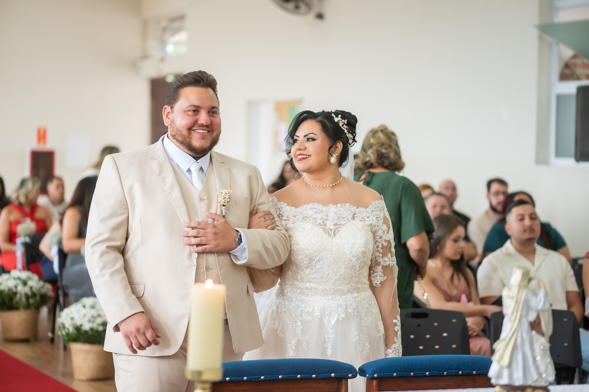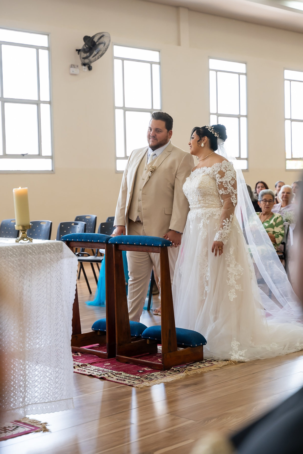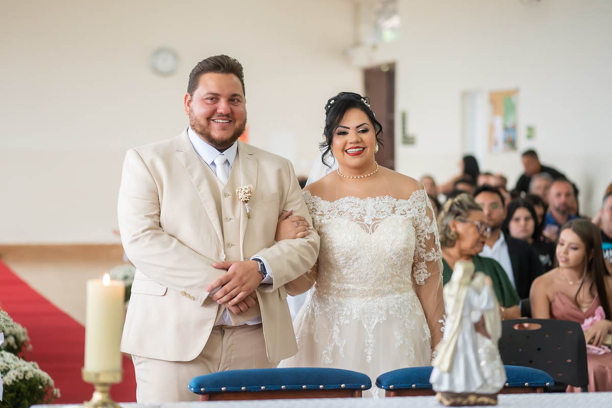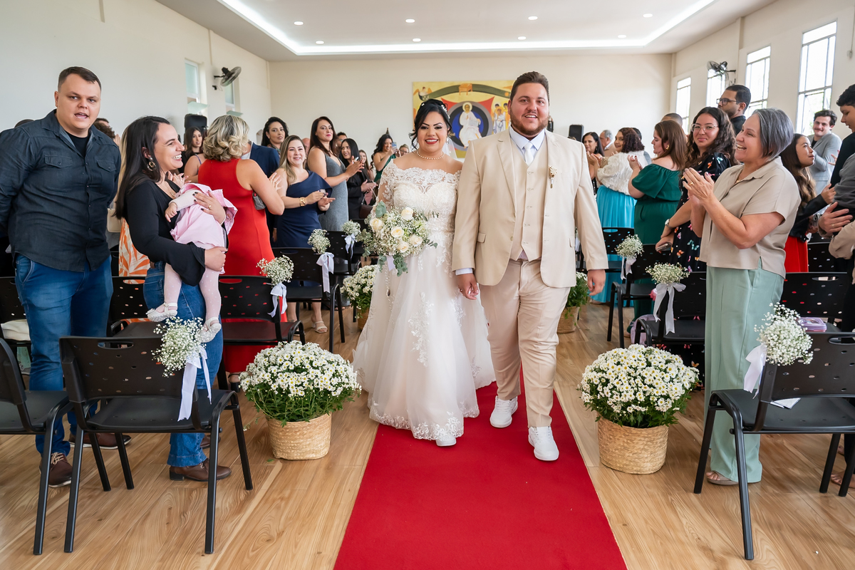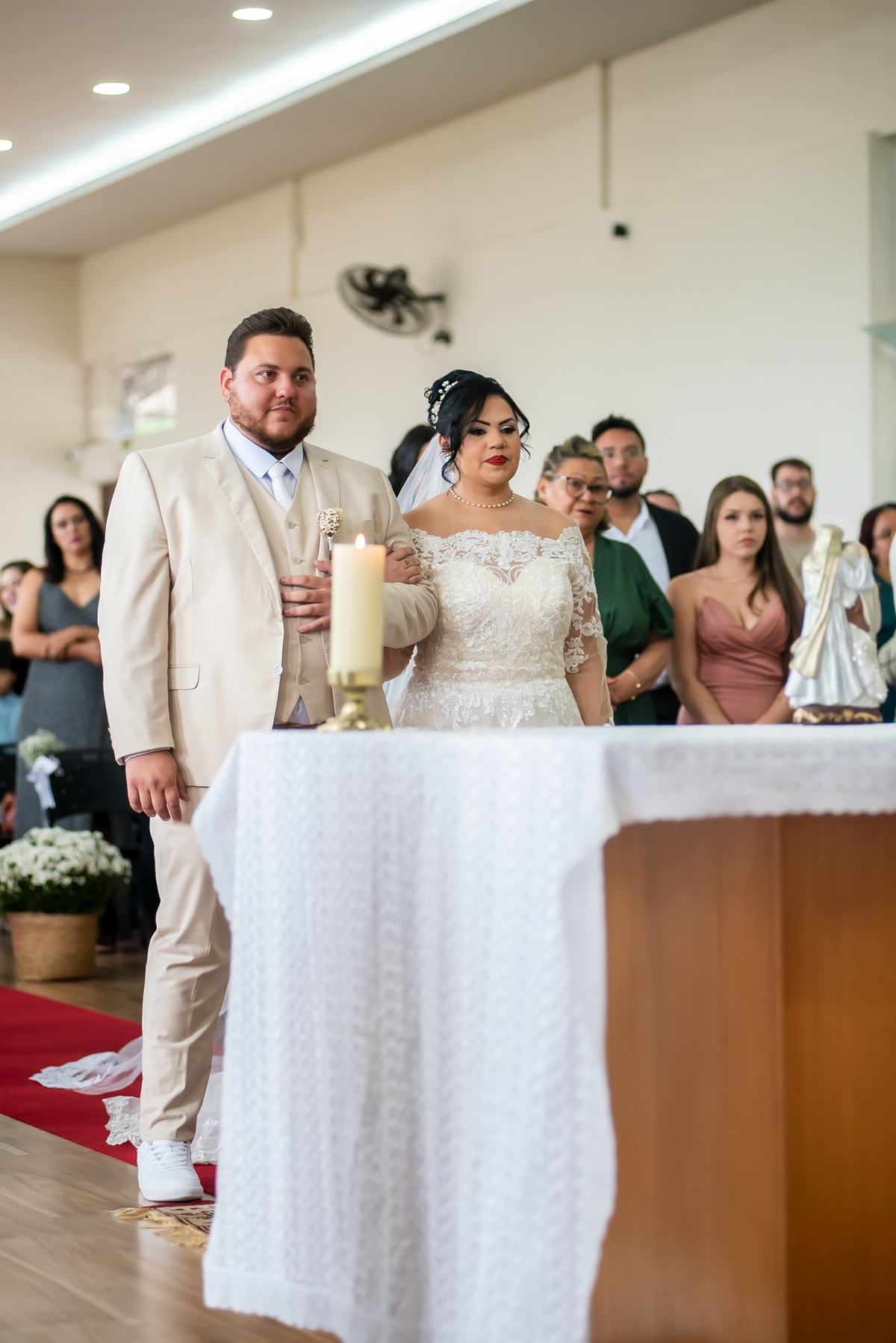 A cerimônia aconteceu no salão da Paróquia do Jardim Santa Gertrudes, rodeada de emoção, família e bênçãos que encheram o ambiente de luz.