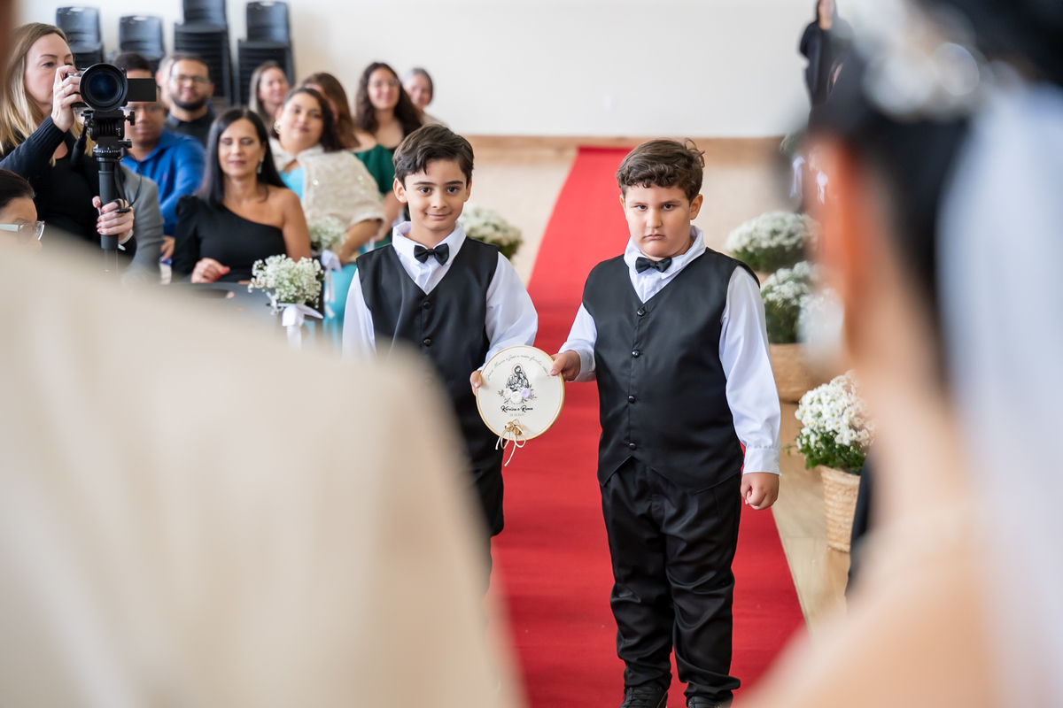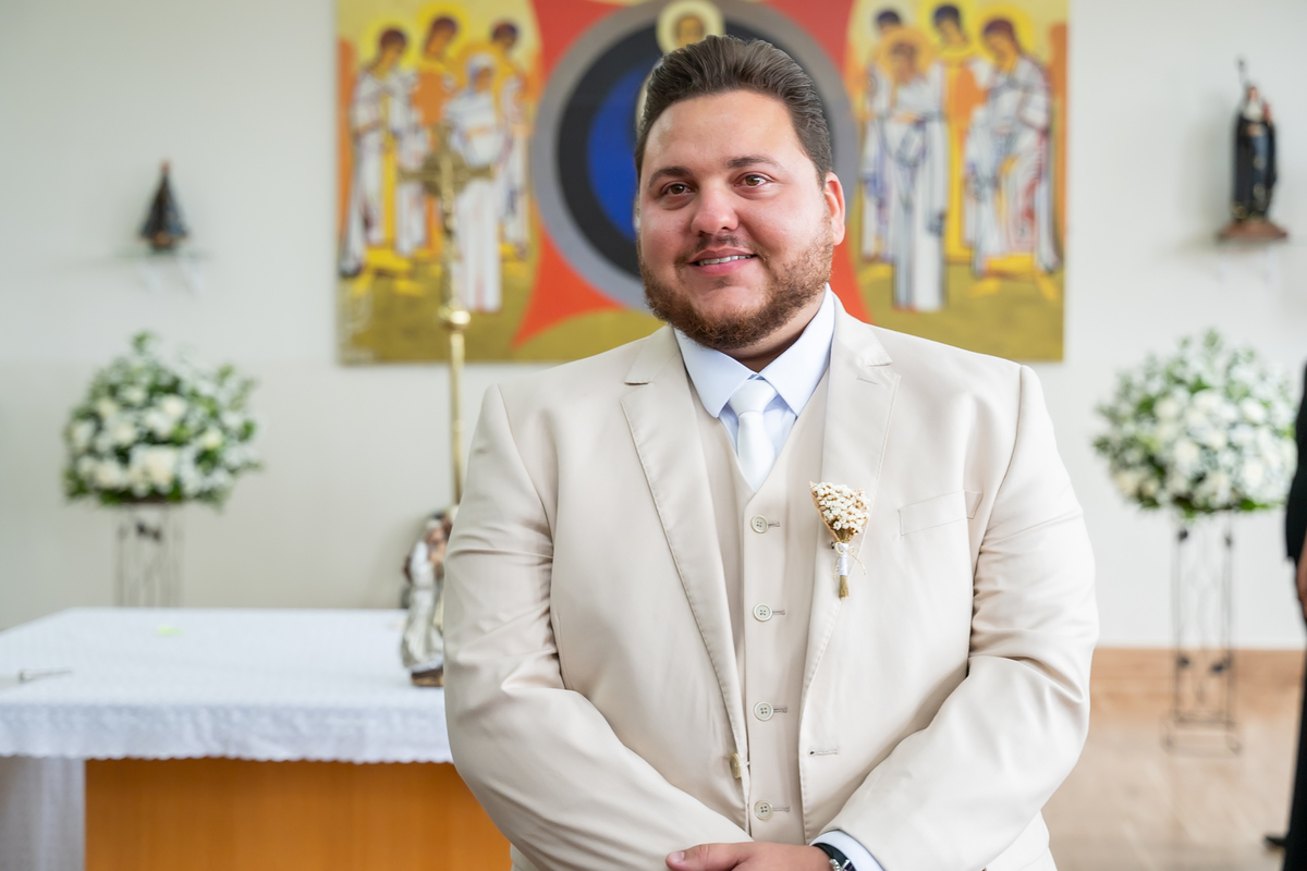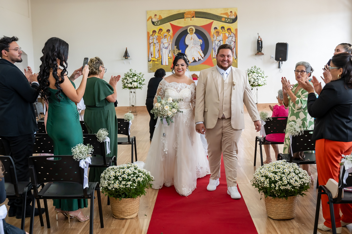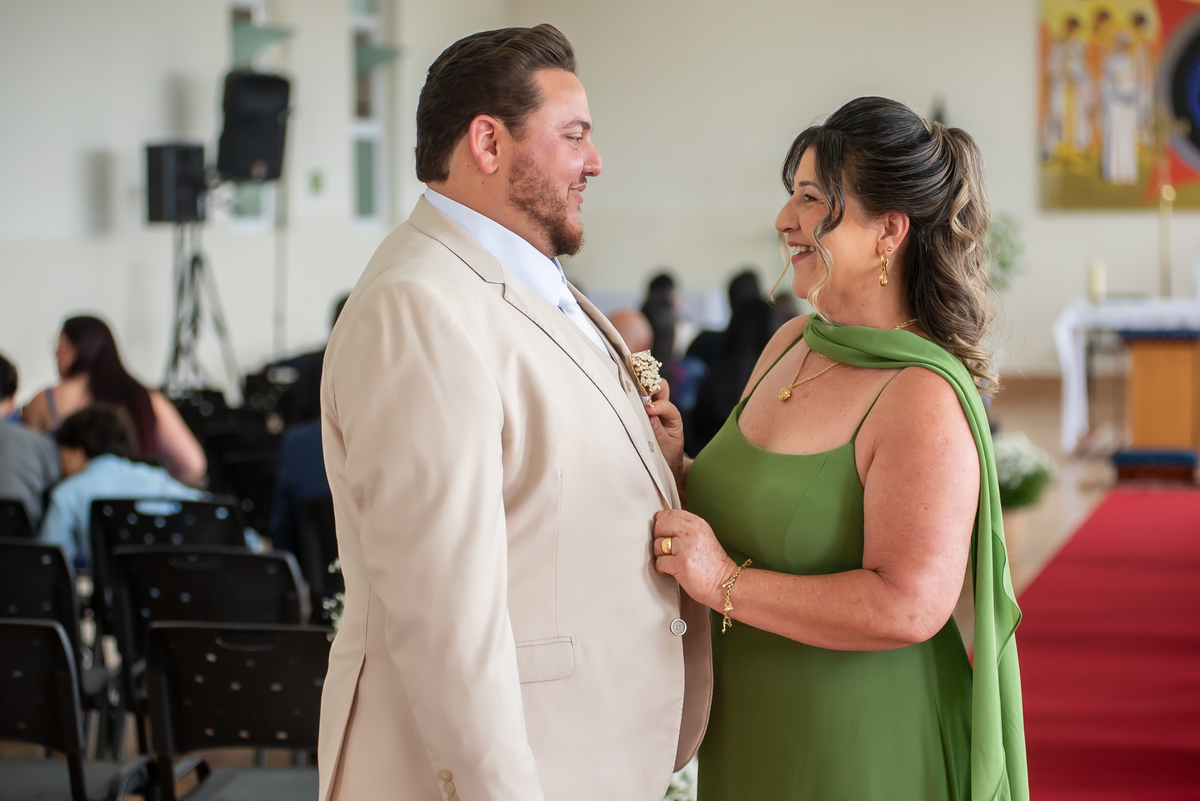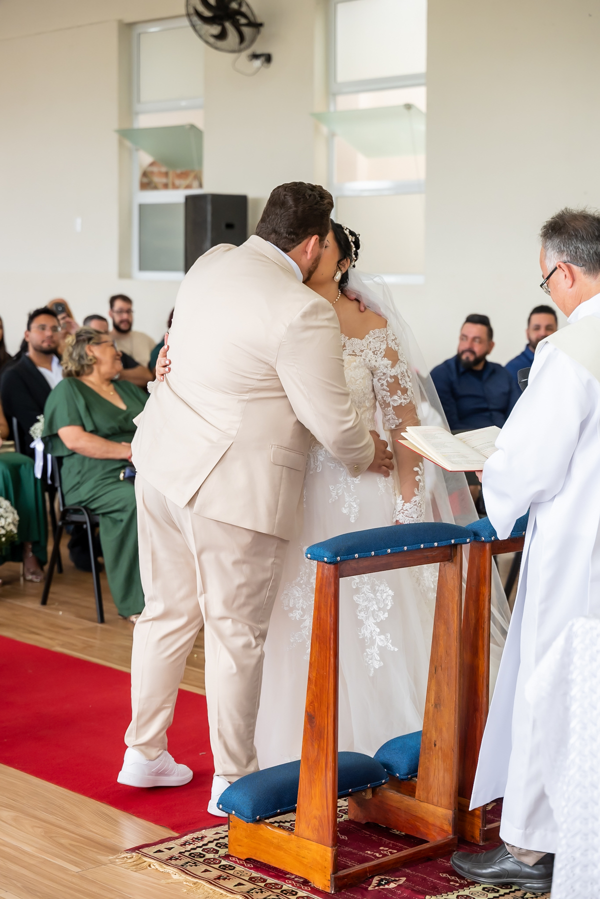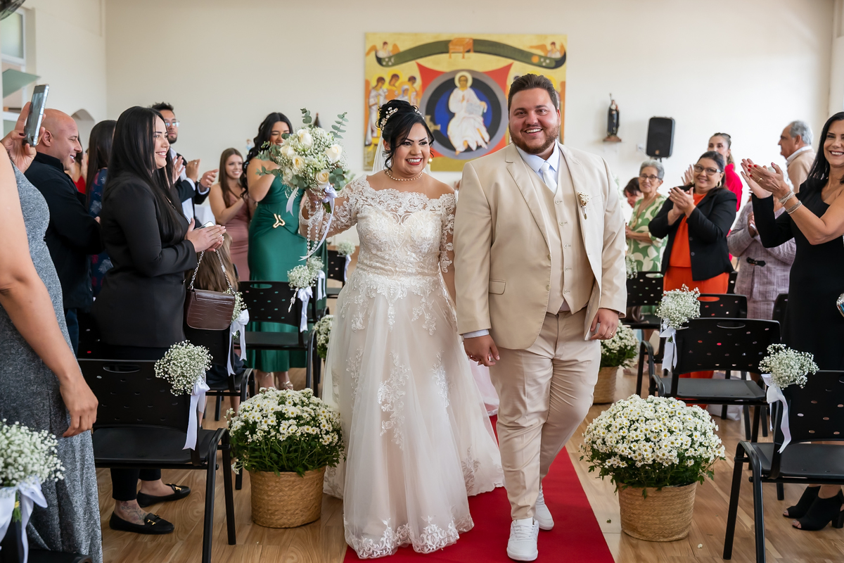A cerimônia aconteceu no salão da Paróquia do Jardim Santa Gertrudes, rodeada de emoção, família e bênçãos que encheram o ambiente de luz.