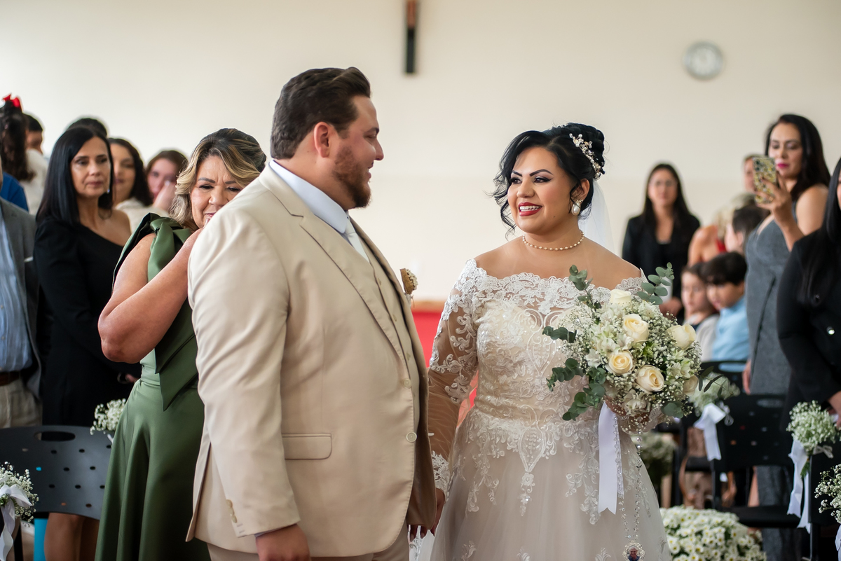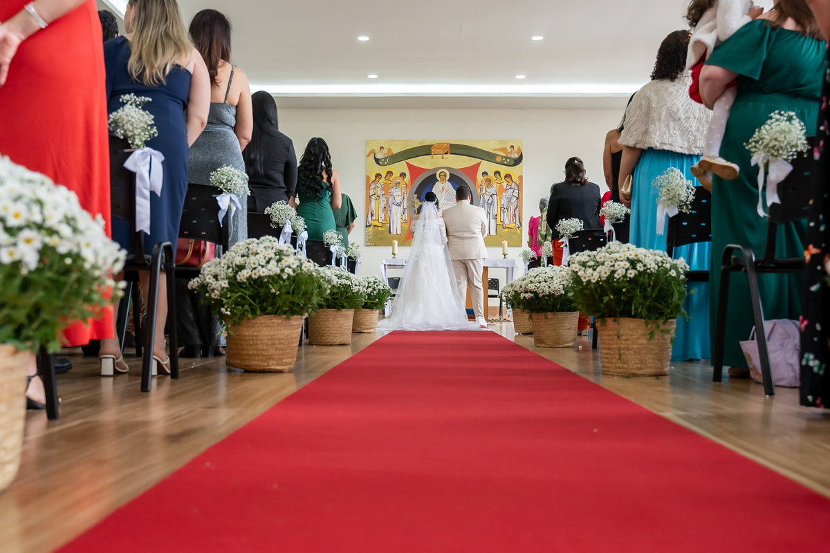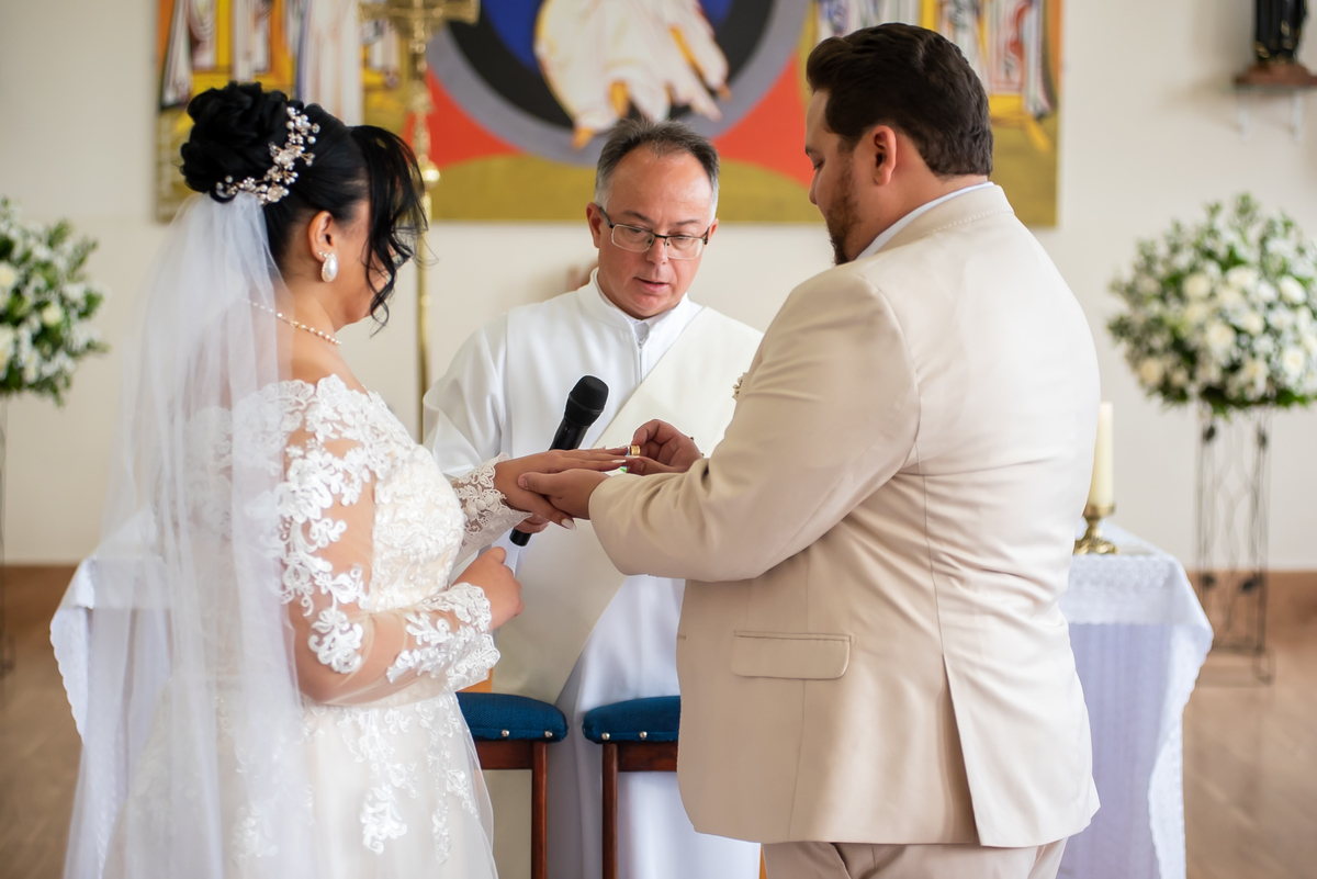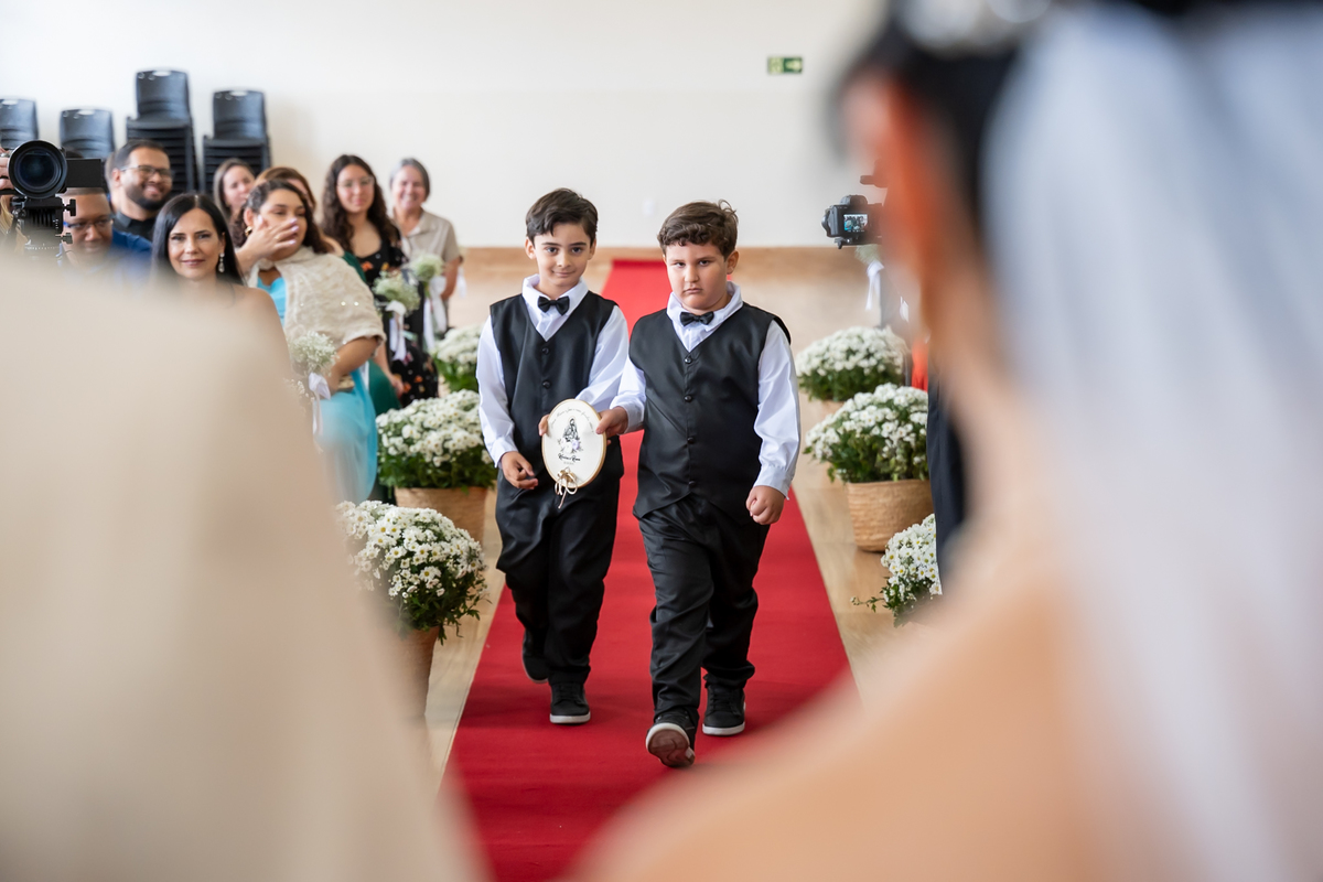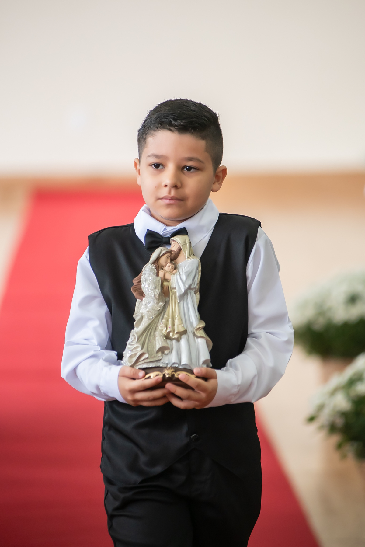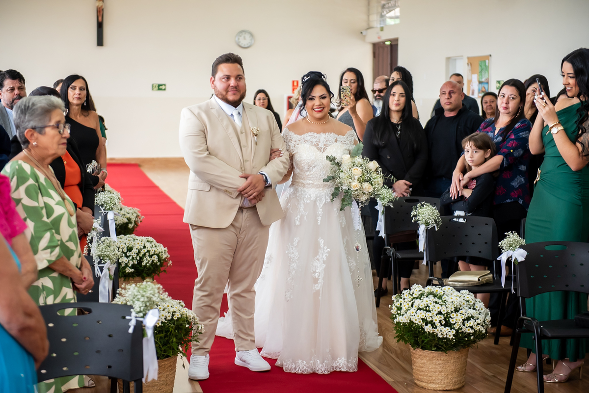 A cerimônia aconteceu no salão da Paróquia do Jardim Santa Gertrudes, rodeada de emoção, família e bênçãos que encheram o ambiente de luz.