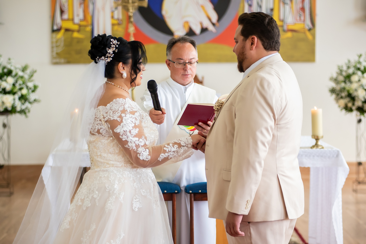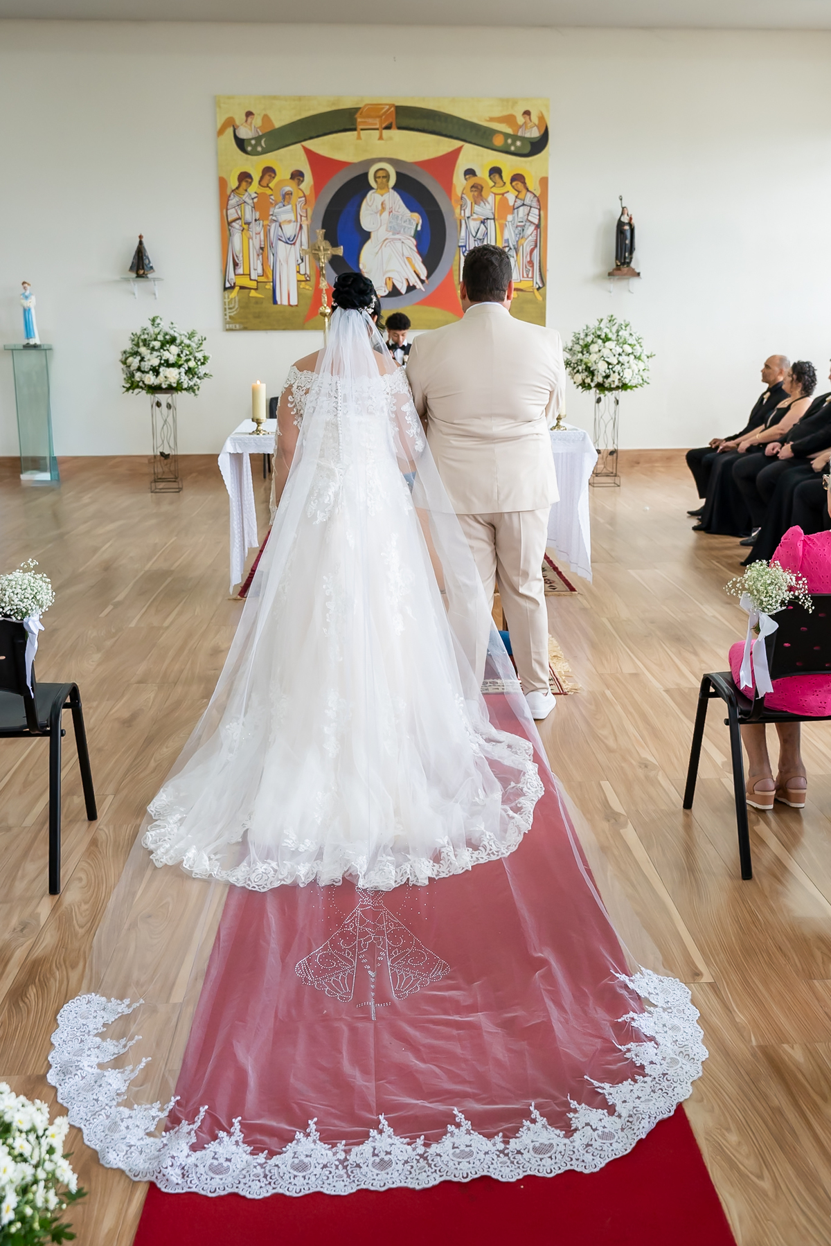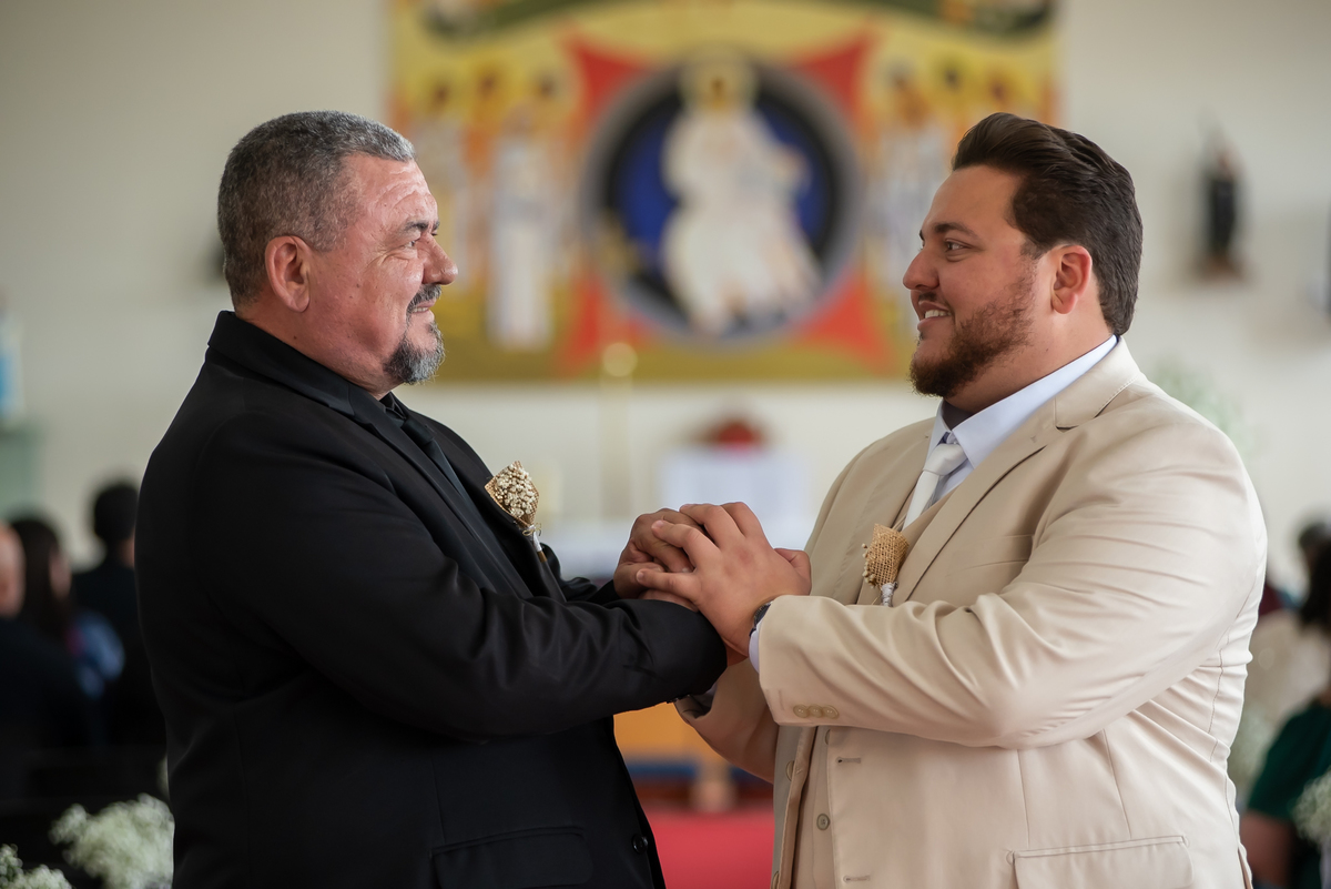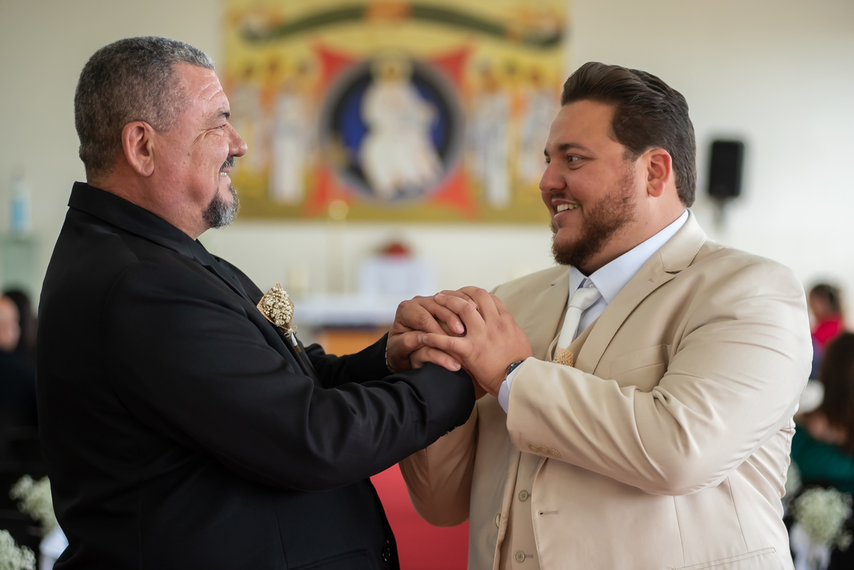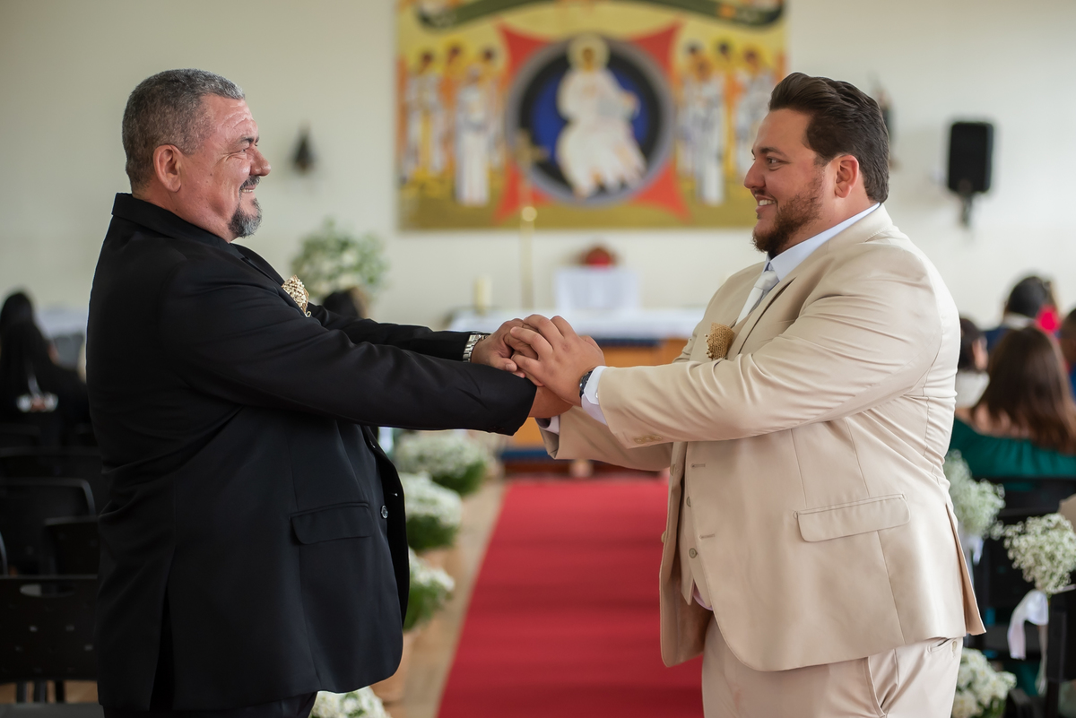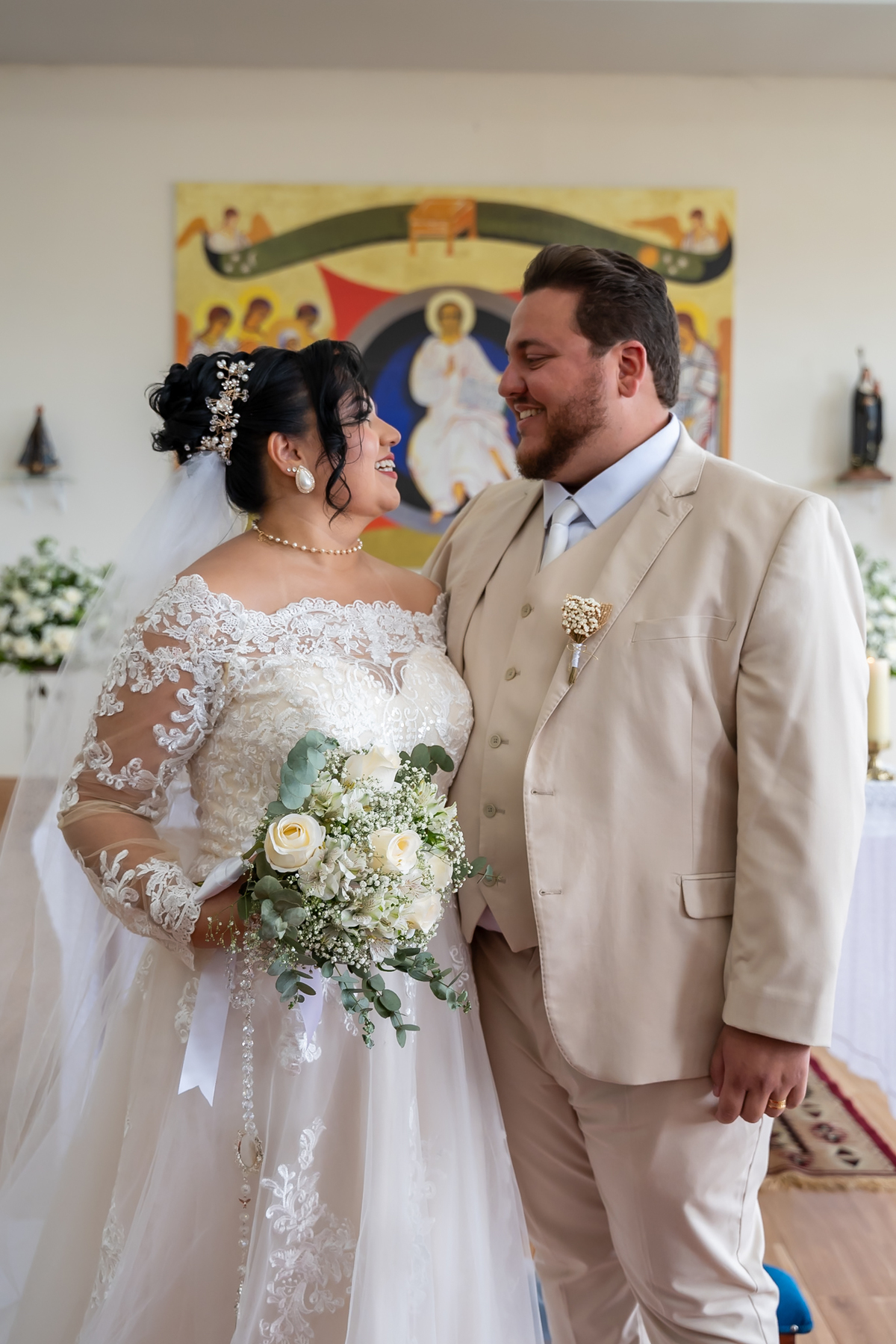 A cerimônia aconteceu no salão da Paróquia do Jardim Santa Gertrudes, rodeada de emoção, família e bênçãos que encheram o ambiente de luz.