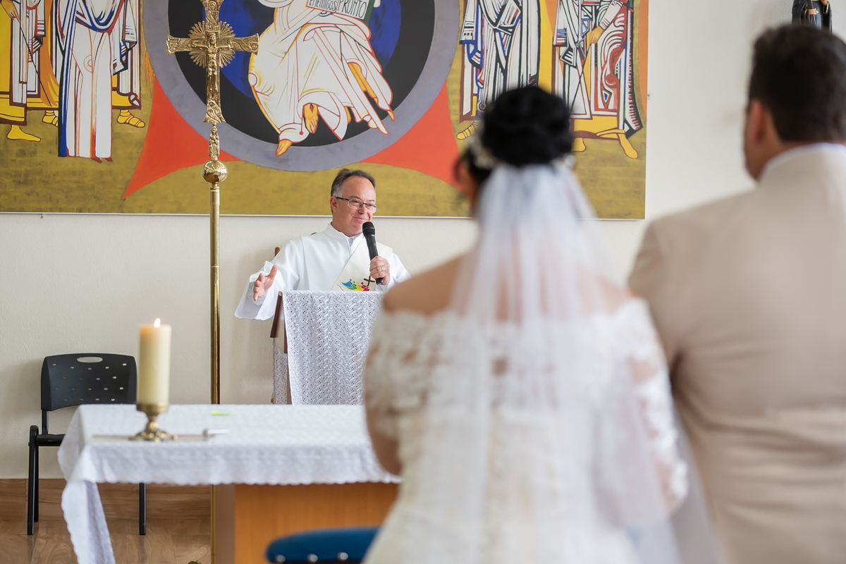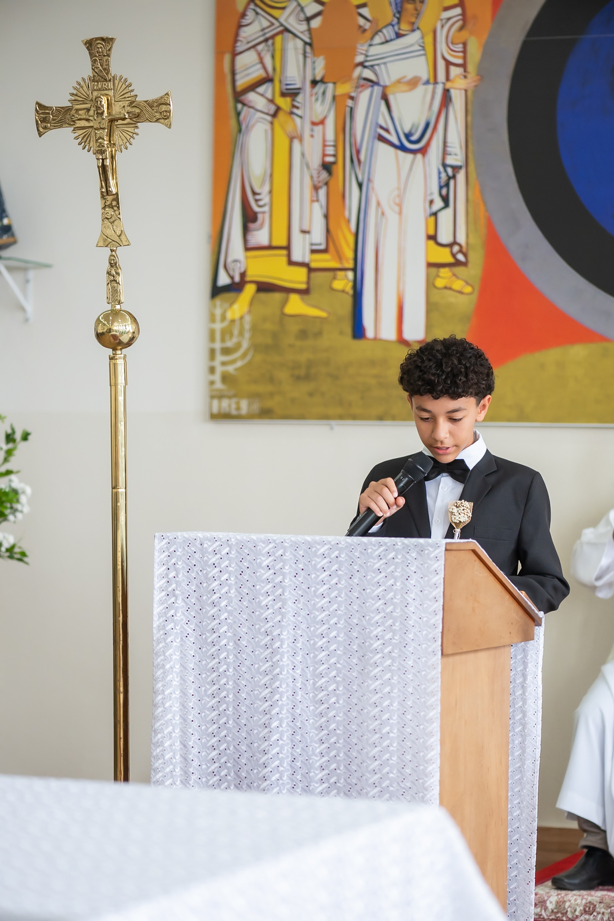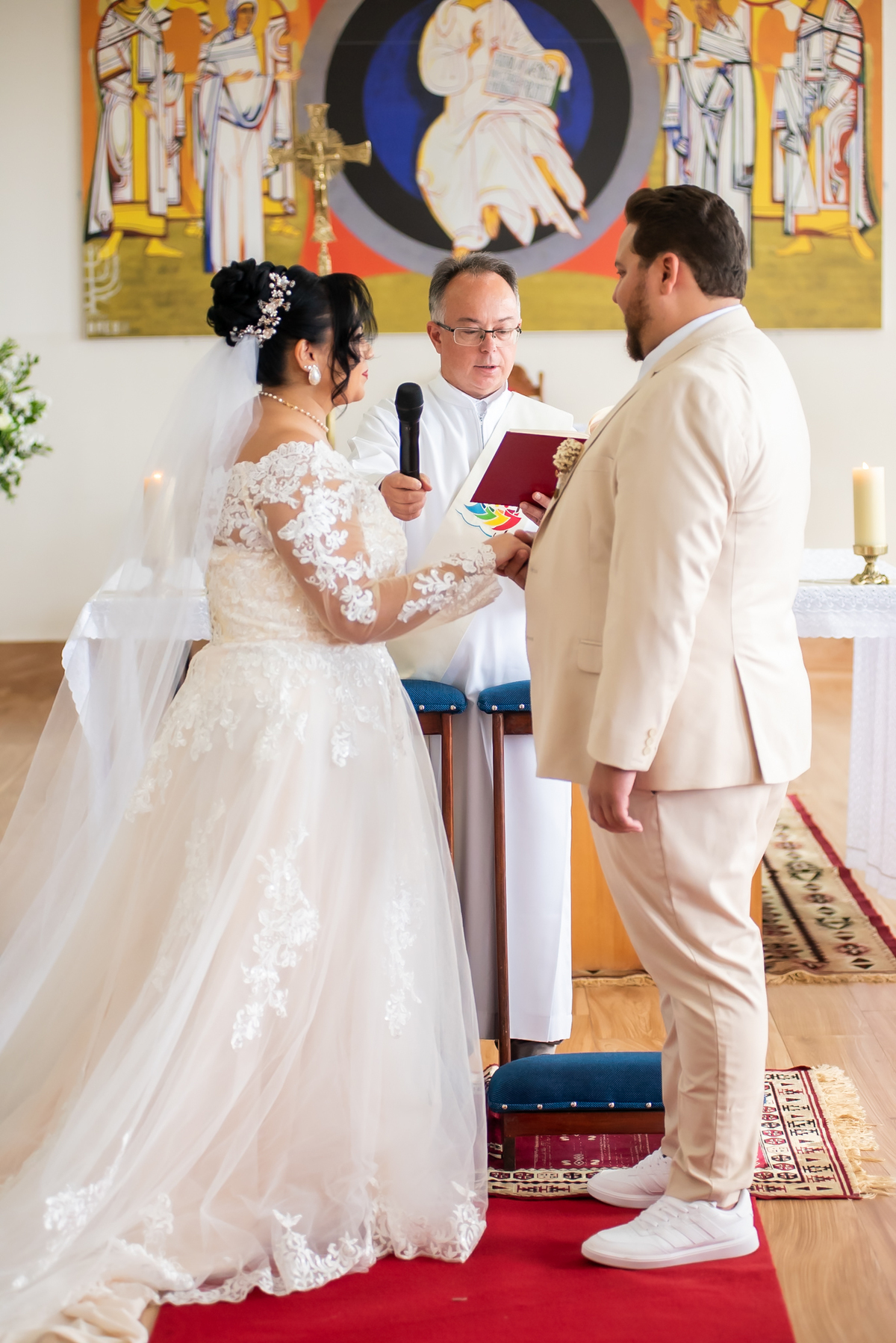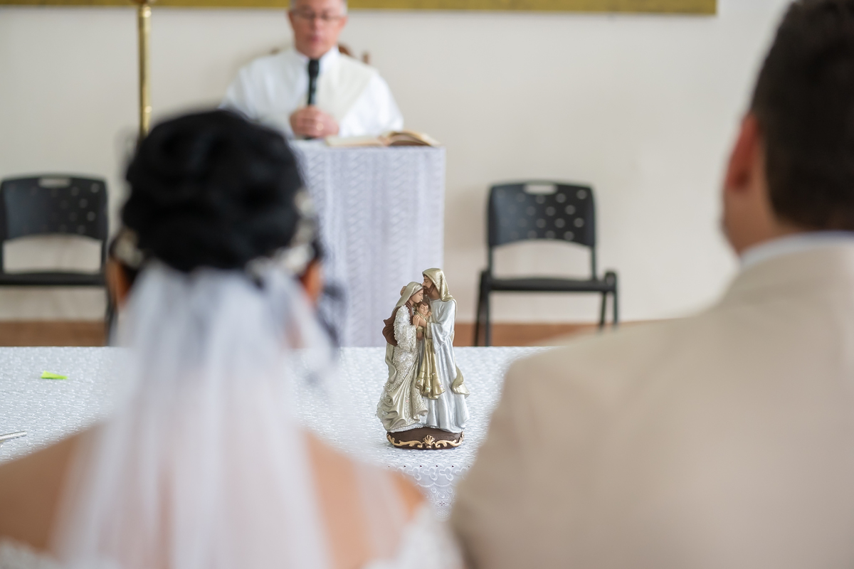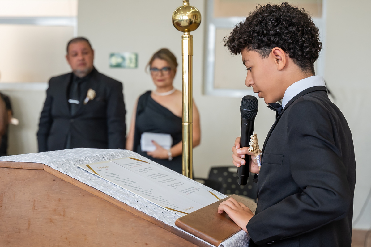 A cerimônia aconteceu no salão da Paróquia do Jardim Santa Gertrudes, rodeada de emoção, família e bênçãos que encheram o ambiente de luz.