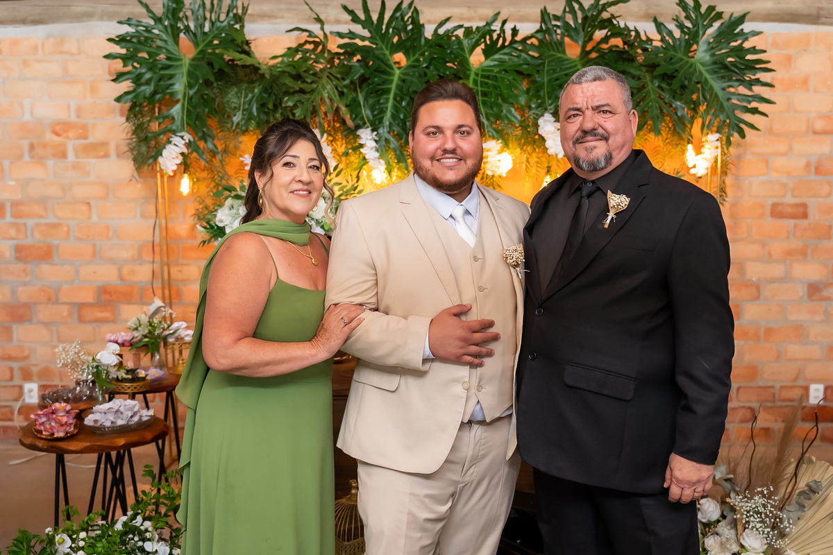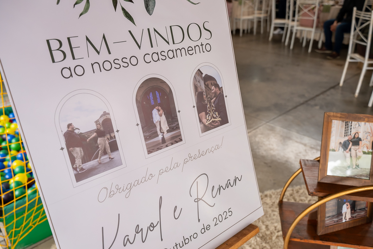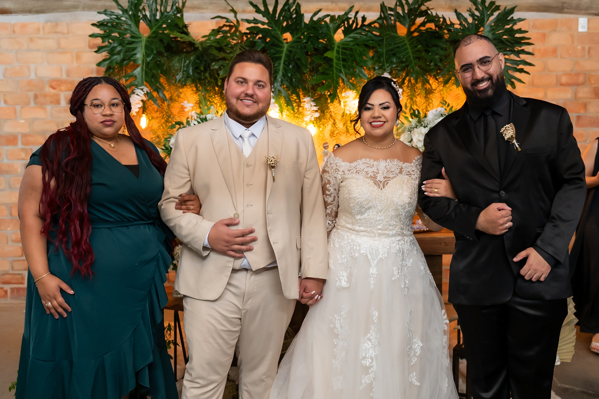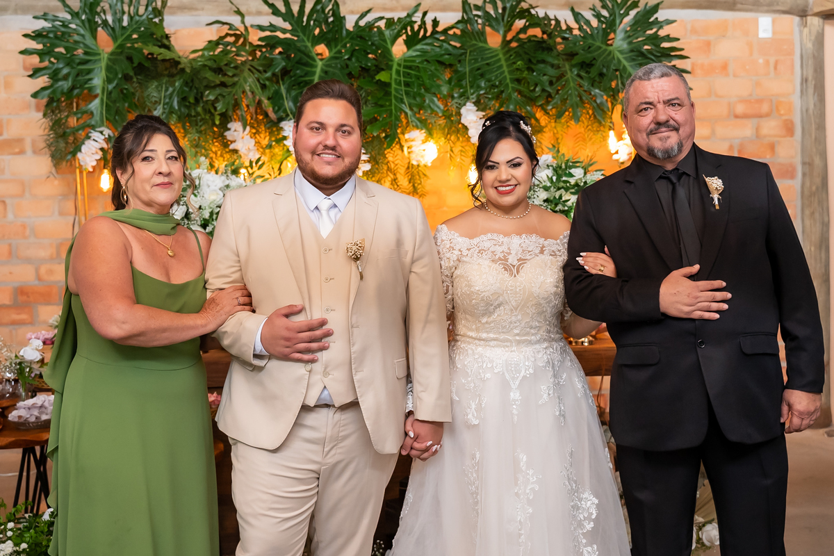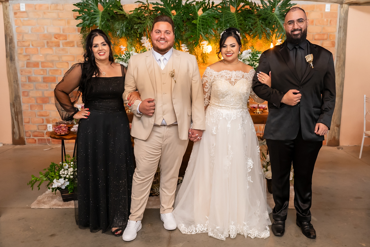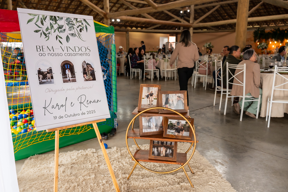 Logo depois, os convidados foram recebidos para celebrar no encantador Espaço Valle das Colinas, em Várzea Paulista — um cenário perfeito para viver cada sorriso, cada abraço e cada momento especial que marcou essa nova fase do casal.