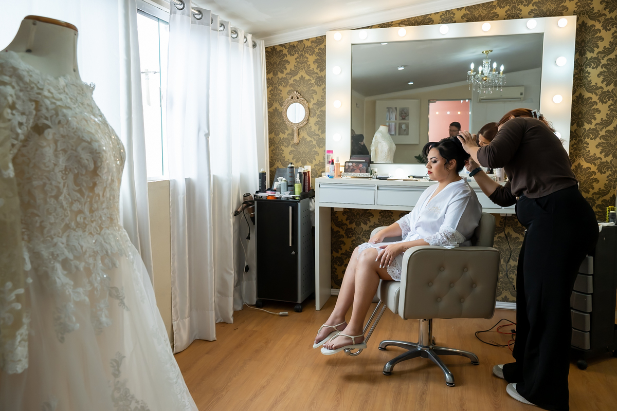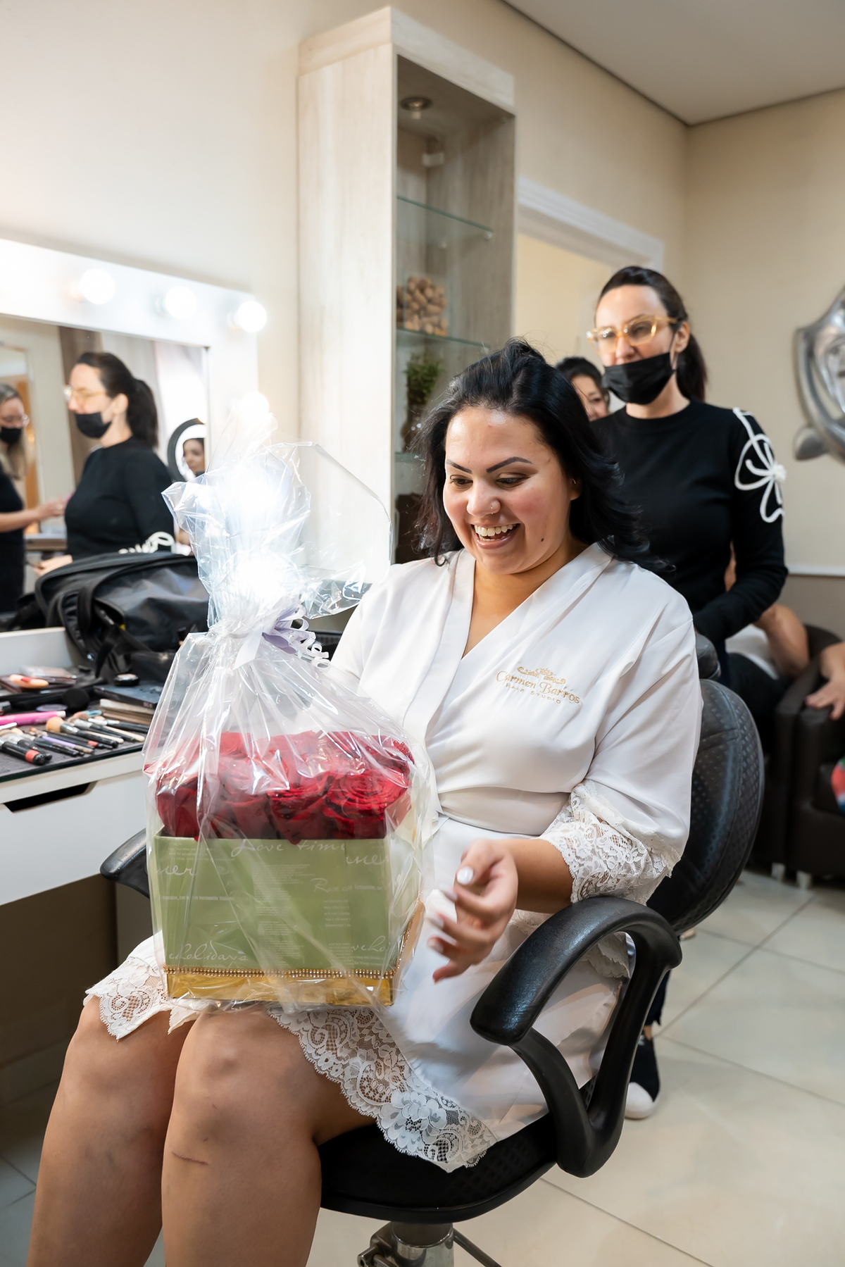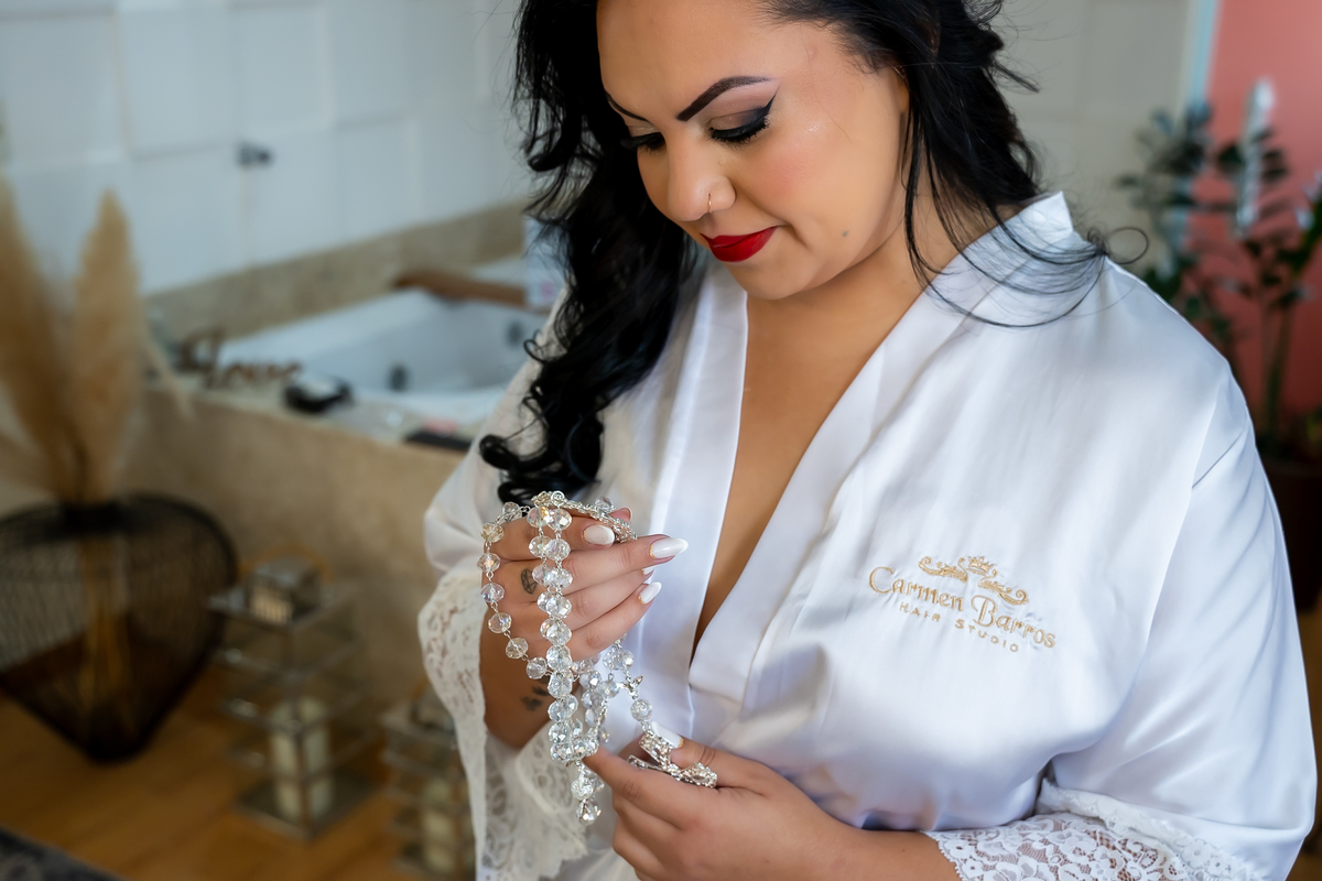 A preparação começou cedo, com toda a delicadeza e carinho no Carmem Barros Studio, onde a Karoline viveu seus primeiros momentos desse grande dia. 💍✨