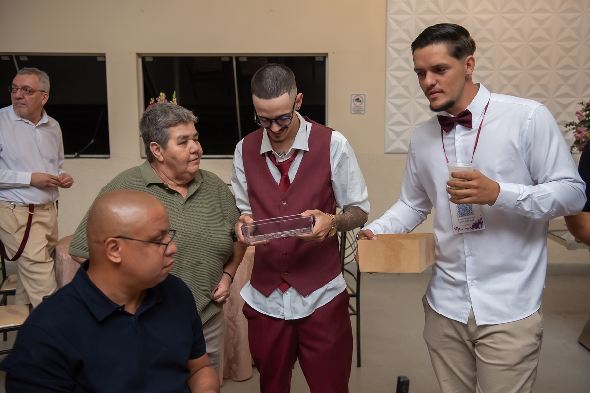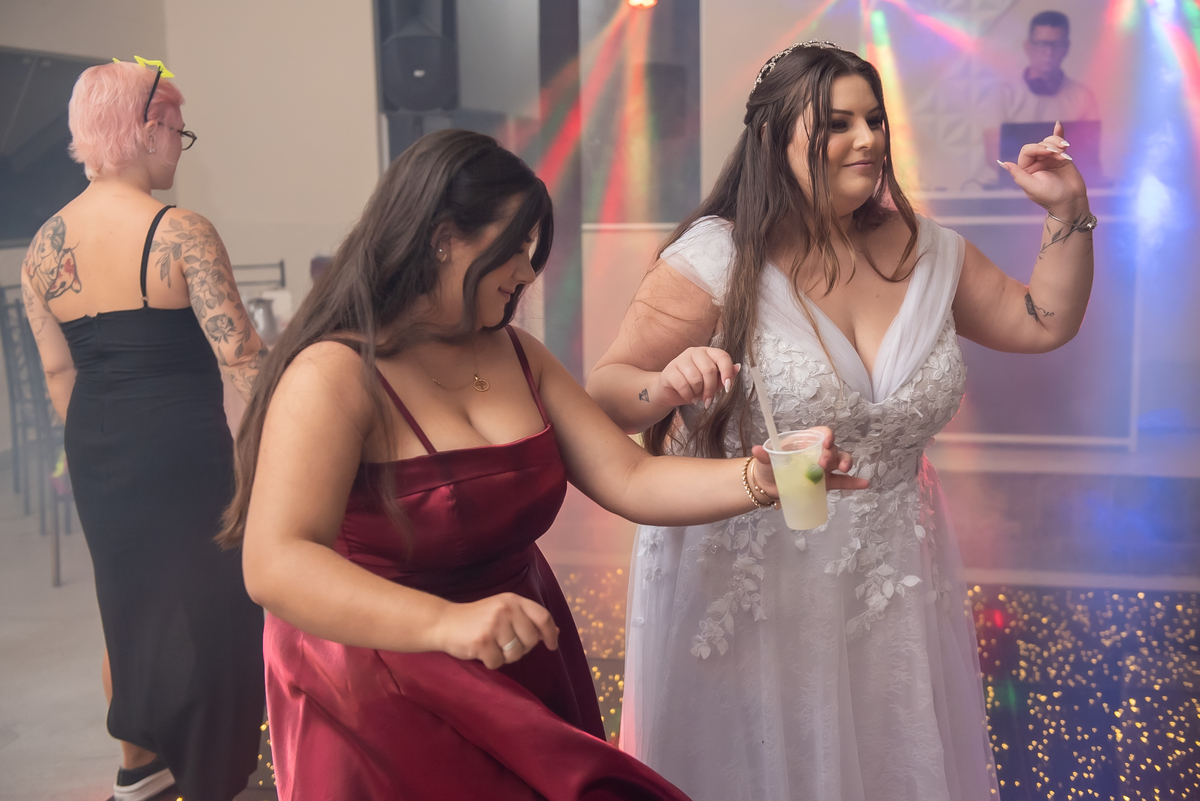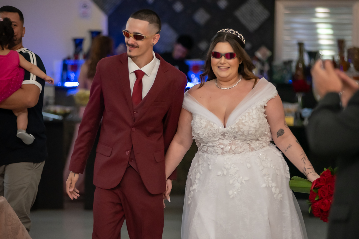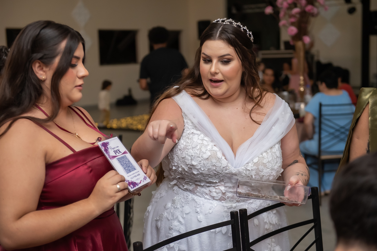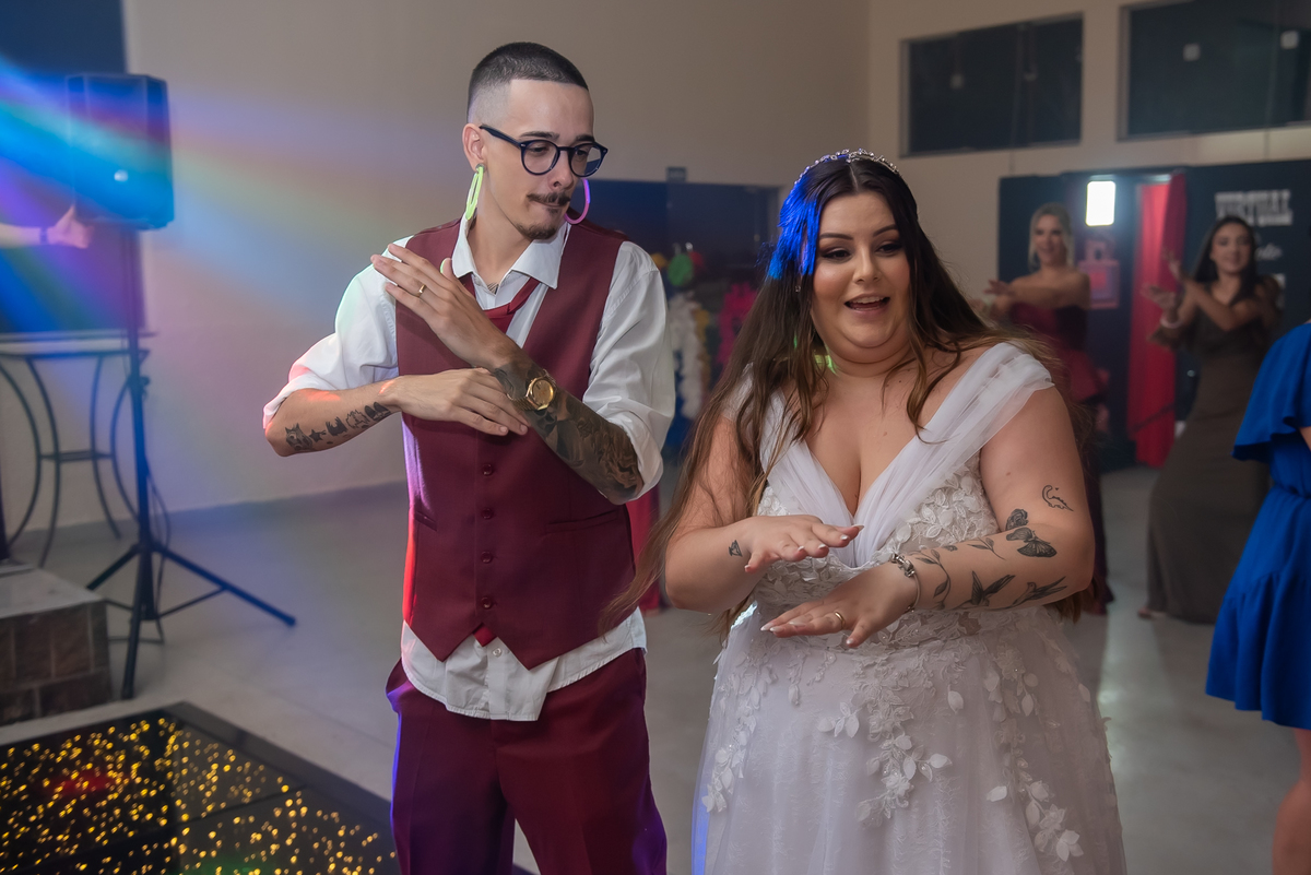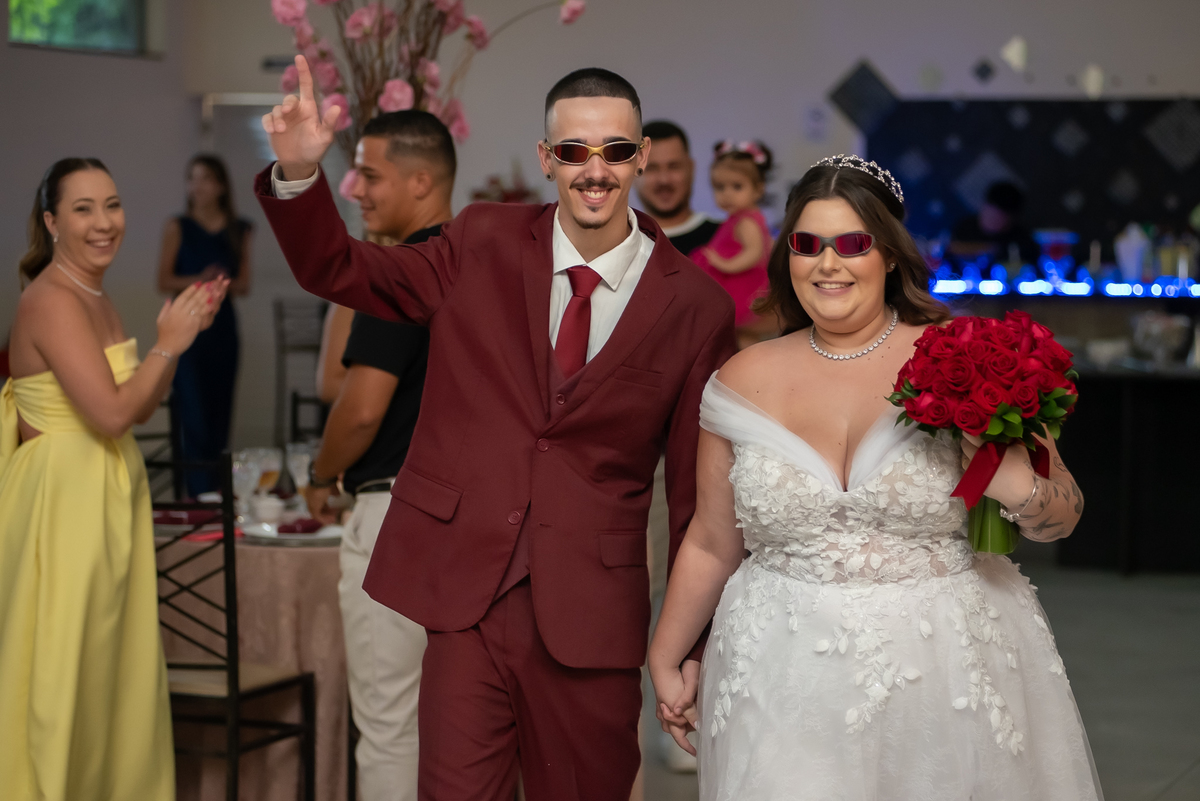 Os noivos aproveitaram cada instante: entraram na brincadeira com os convidados, fizeram trend, inovaram na tradição oferecendo chaves para resgatar litros de whisky 🥃 e garantiram muita diversão ao longo da noite.