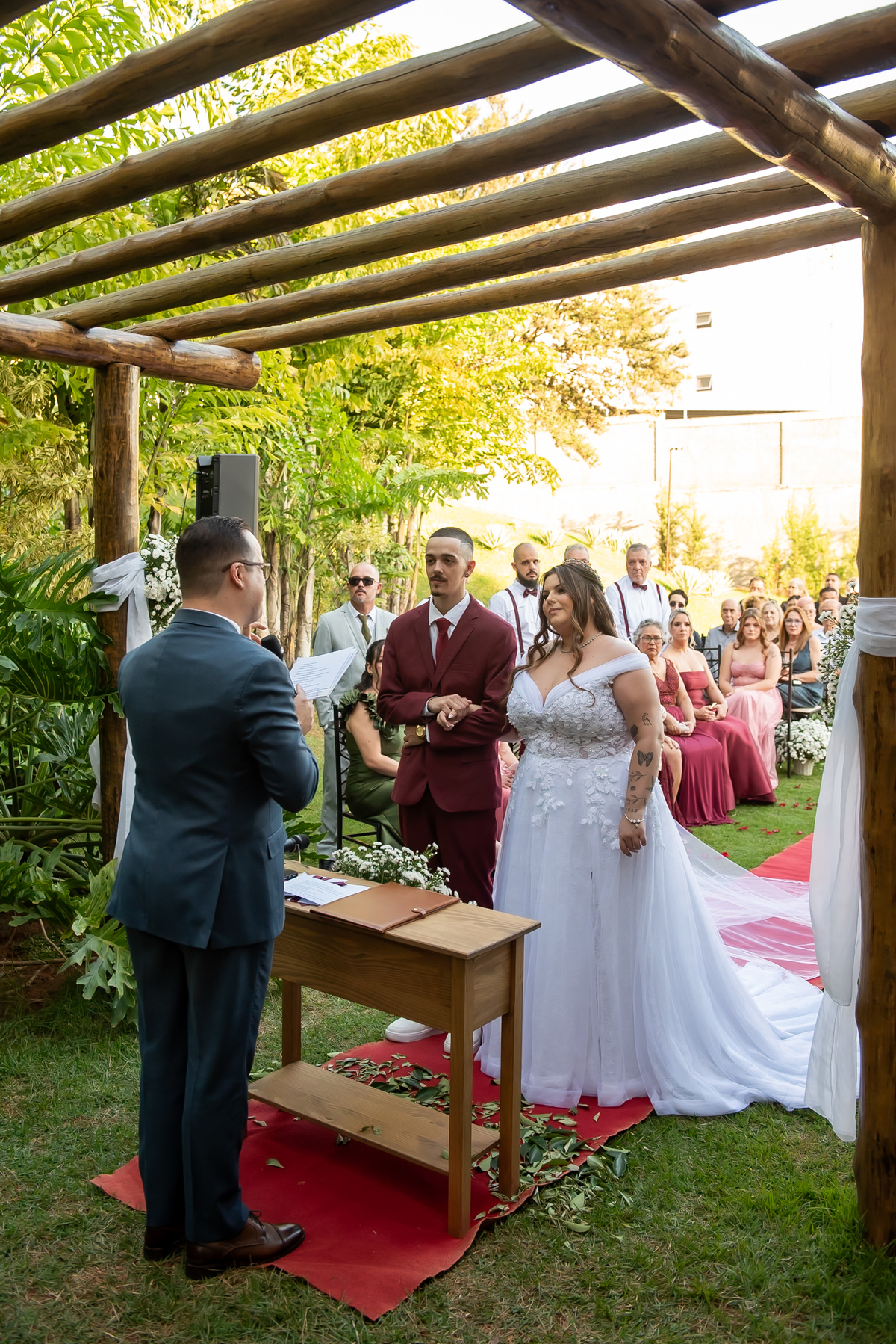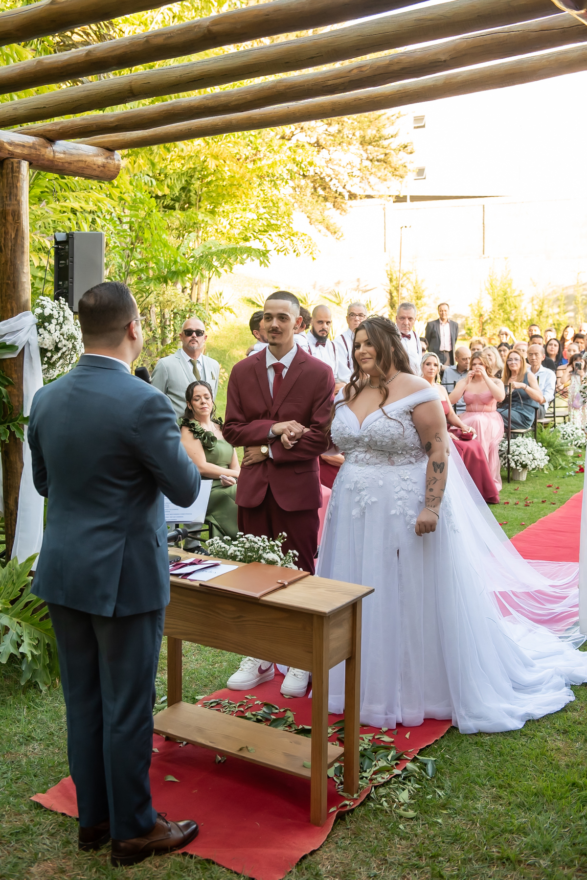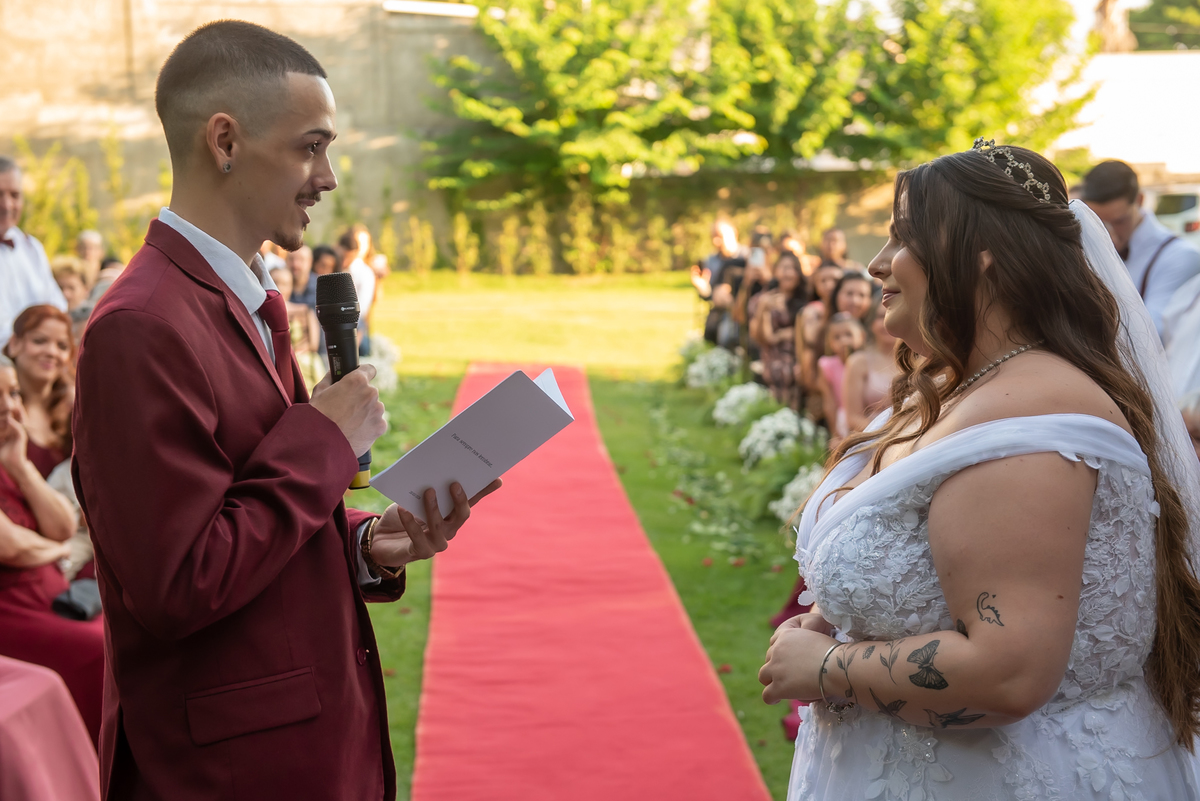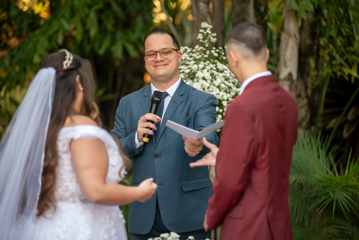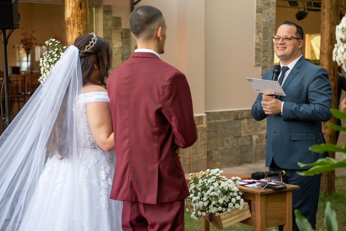 A cerimônia foi conduzida pelo celebrante Rodrigo do Carmo, que trouxe palavras únicas e cheias de significado para esse momento tão importante.