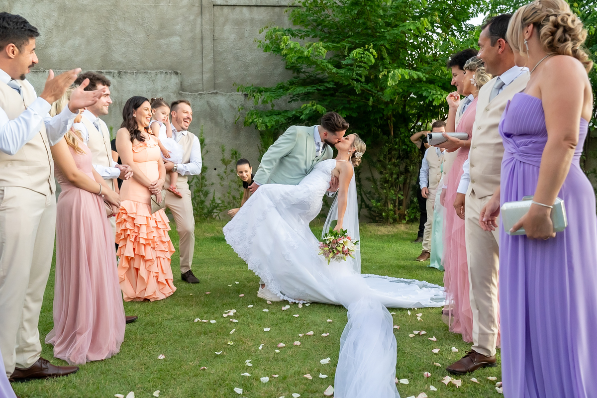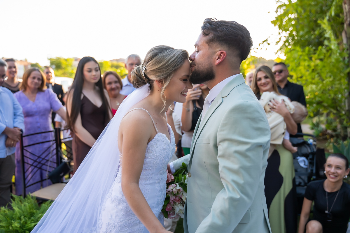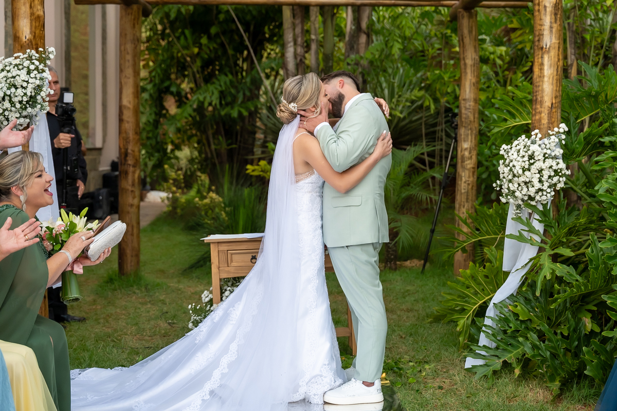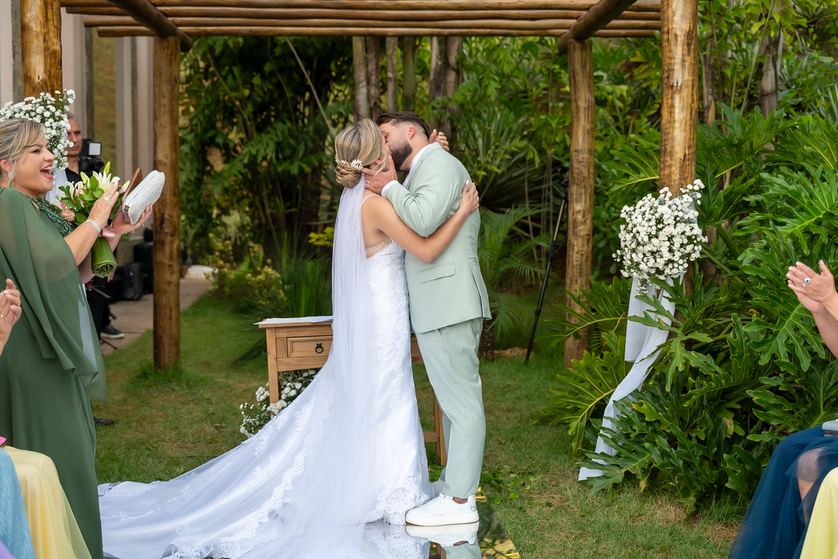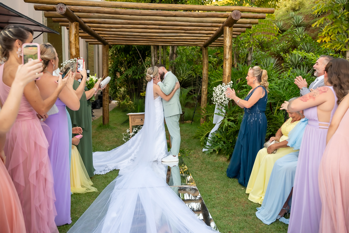 Após o “sim”, os noivos celebraram com um beijo inesquecível, fizeram um breve ensaio de casal e aproveitaram momentos divertidos com pais e padrinhos.
