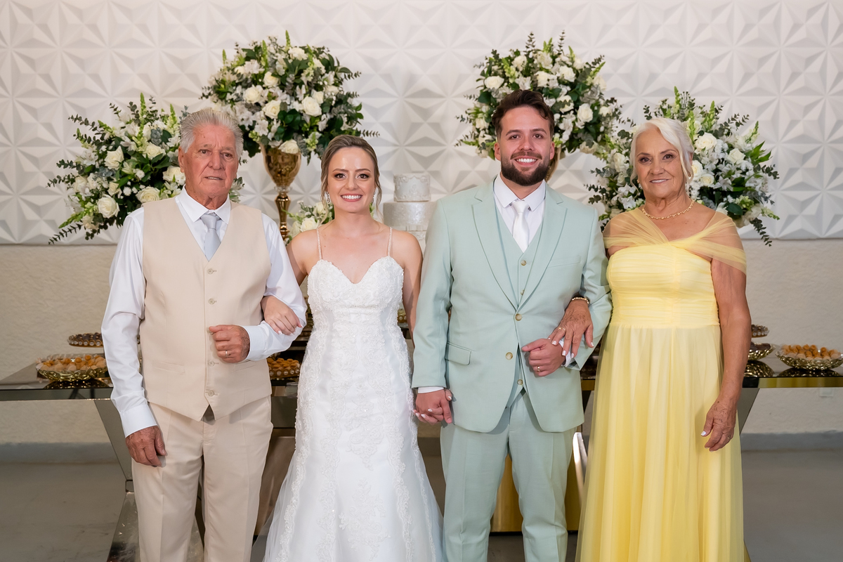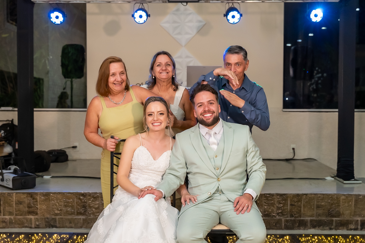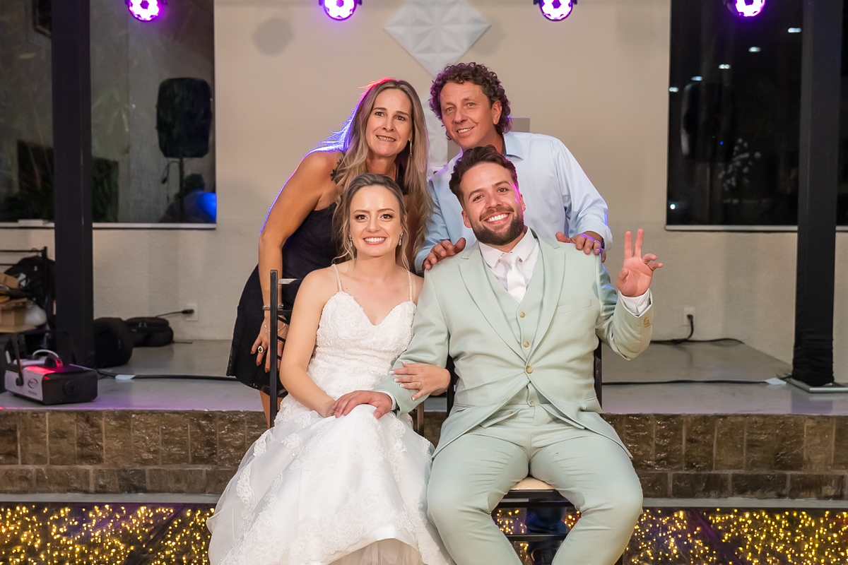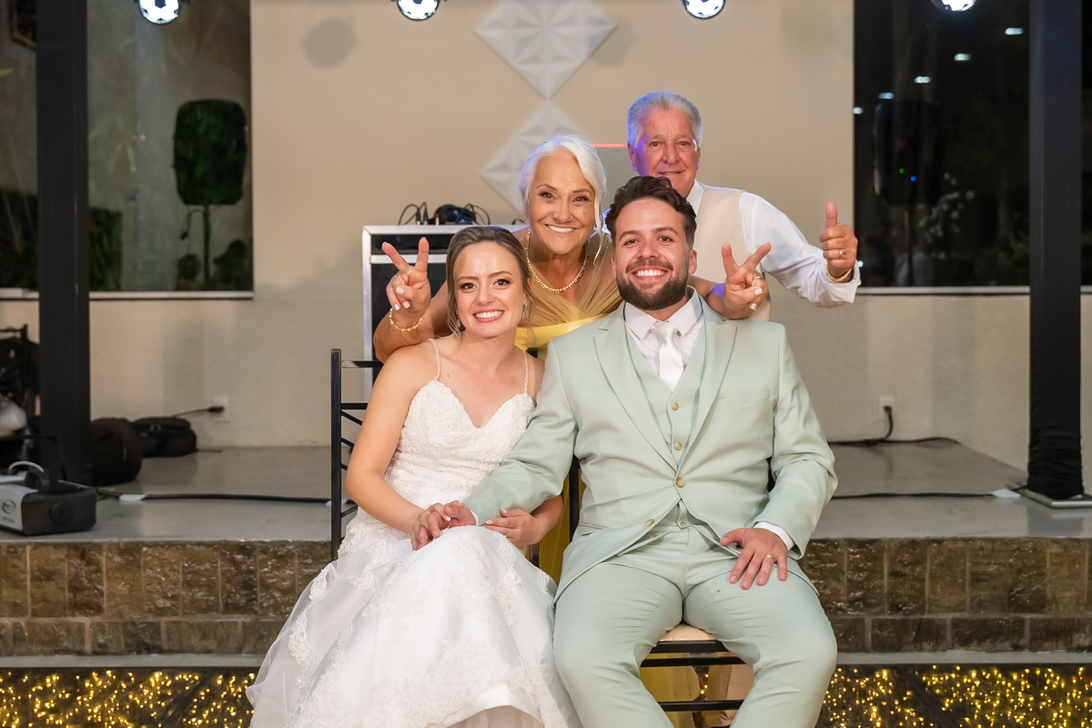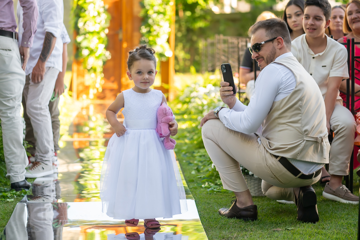 Após o “sim”, os noivos celebraram com um beijo inesquecível, fizeram um breve ensaio de casal e aproveitaram momentos divertidos com pais e padrinhos.