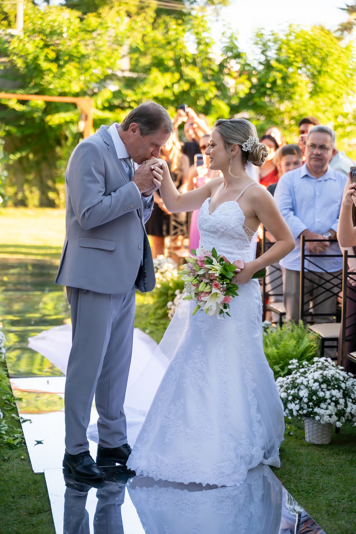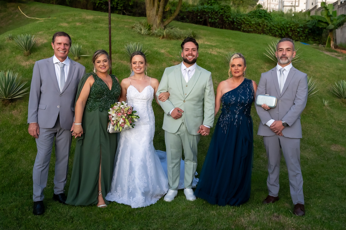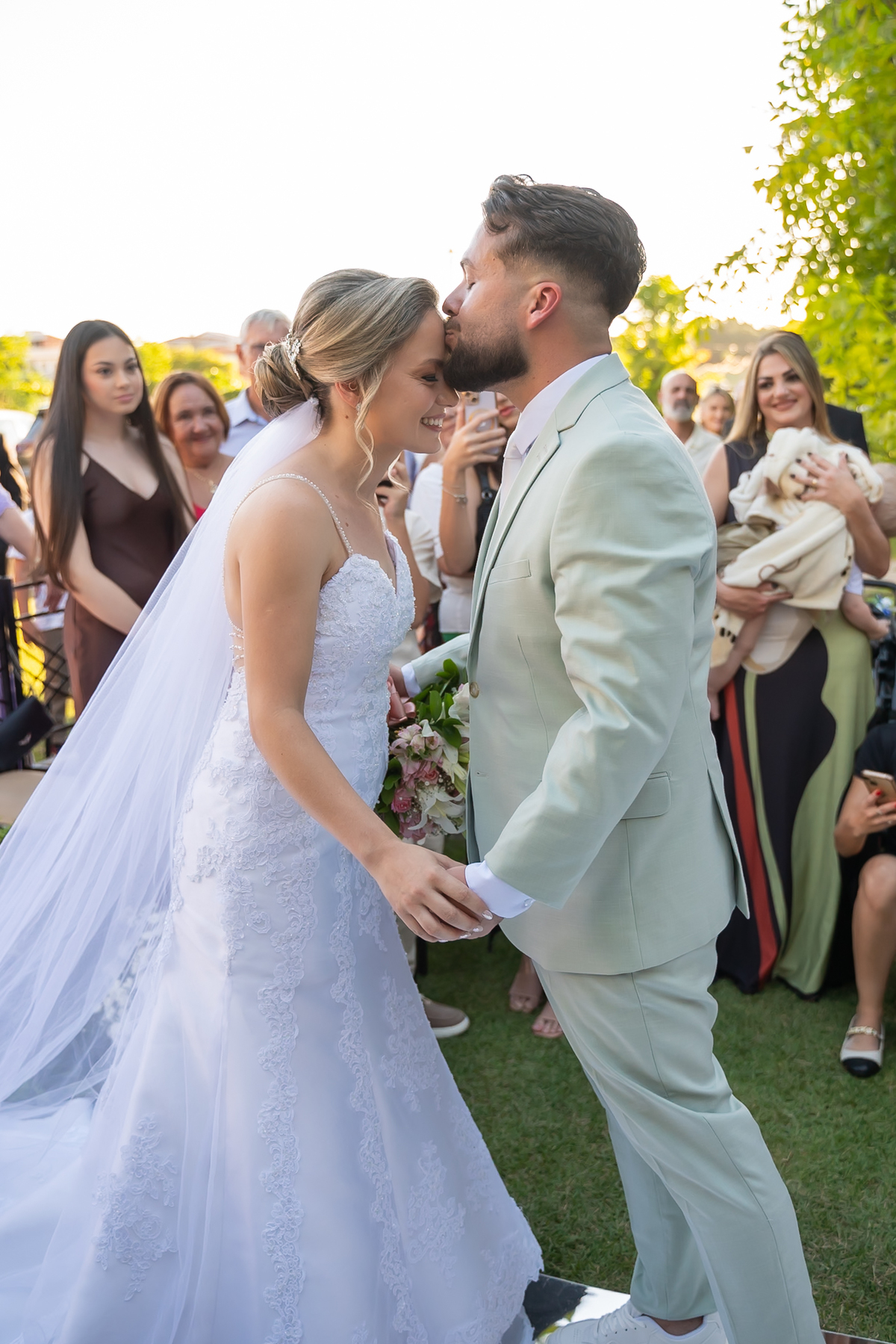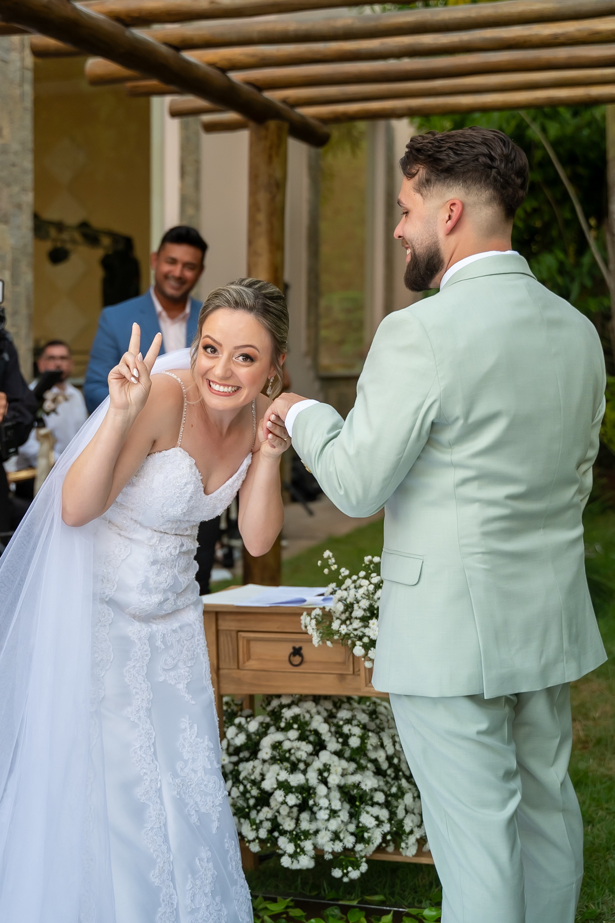 Após o “sim”, os noivos celebraram com um beijo inesquecível, fizeram um breve ensaio de casal e aproveitaram momentos divertidos com pais e padrinhos.