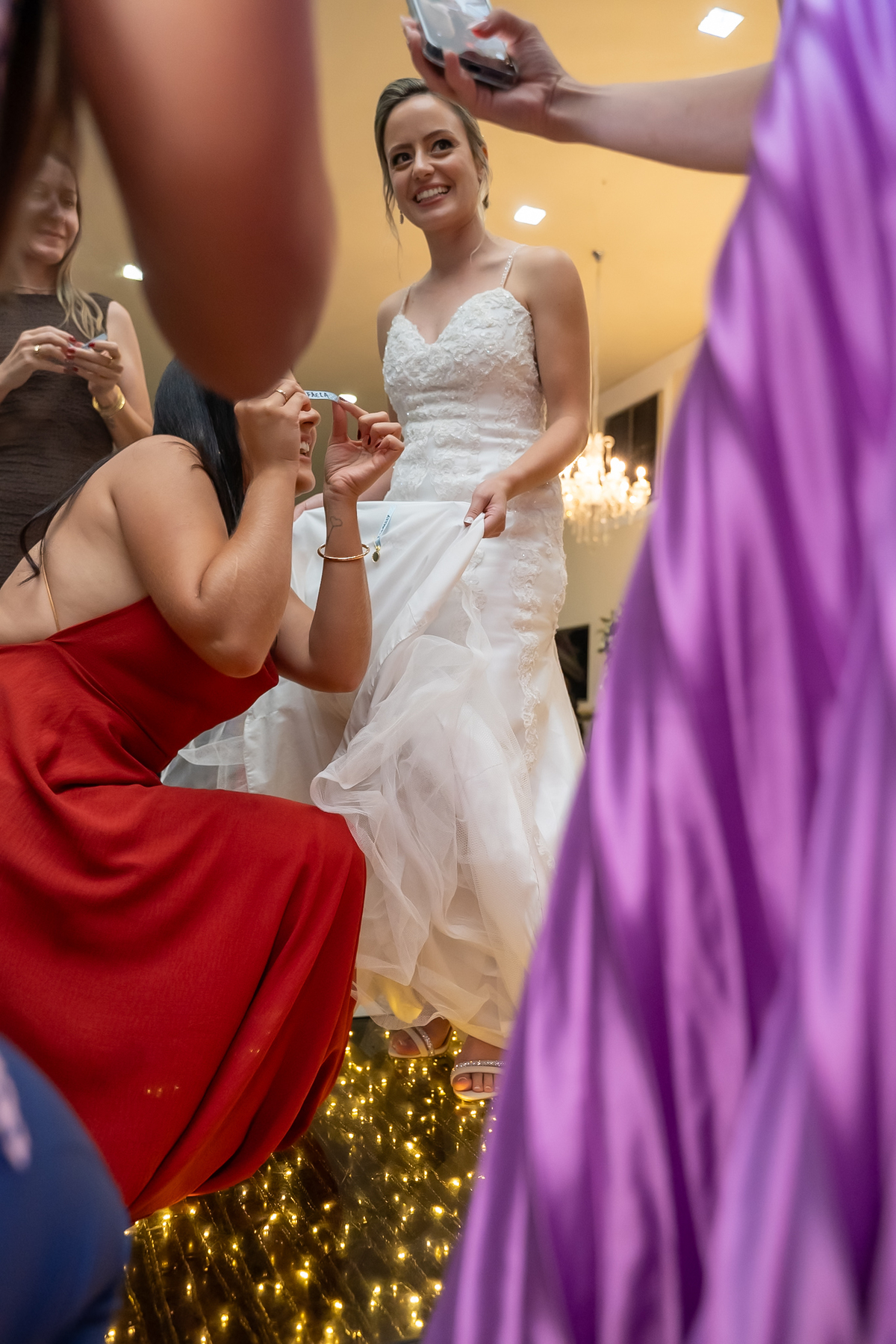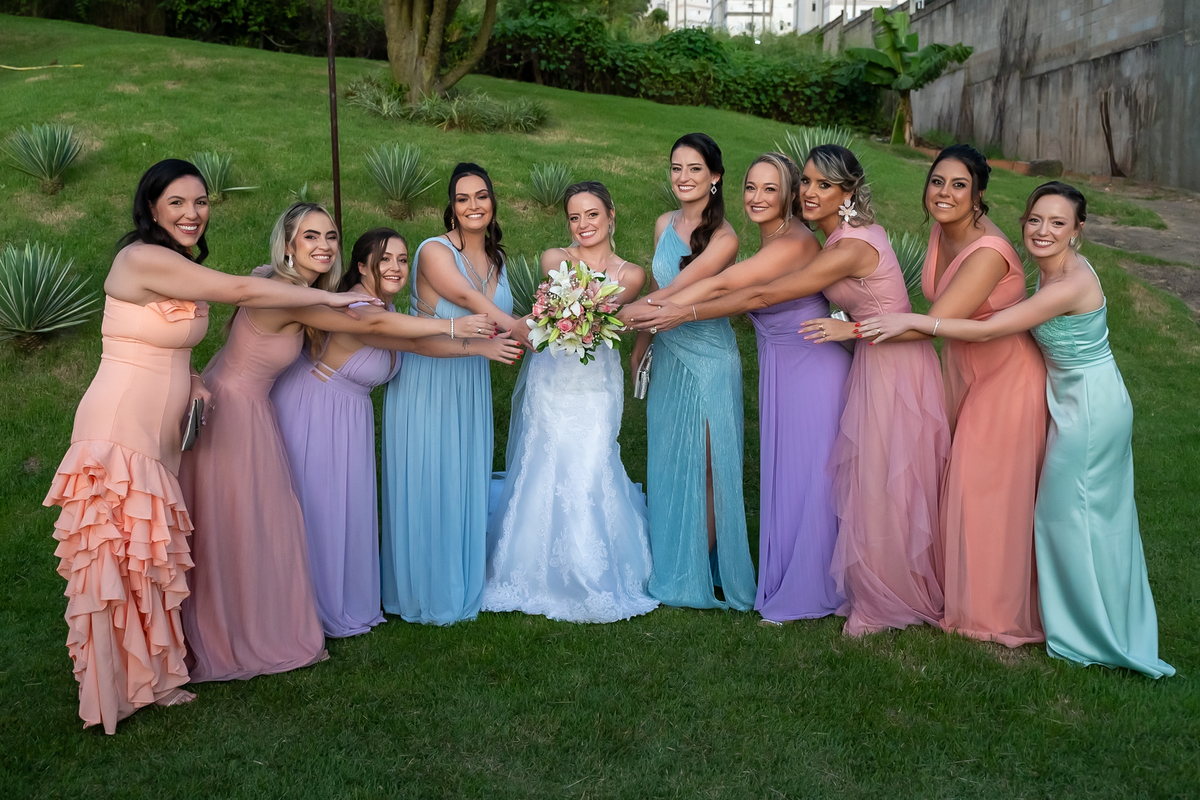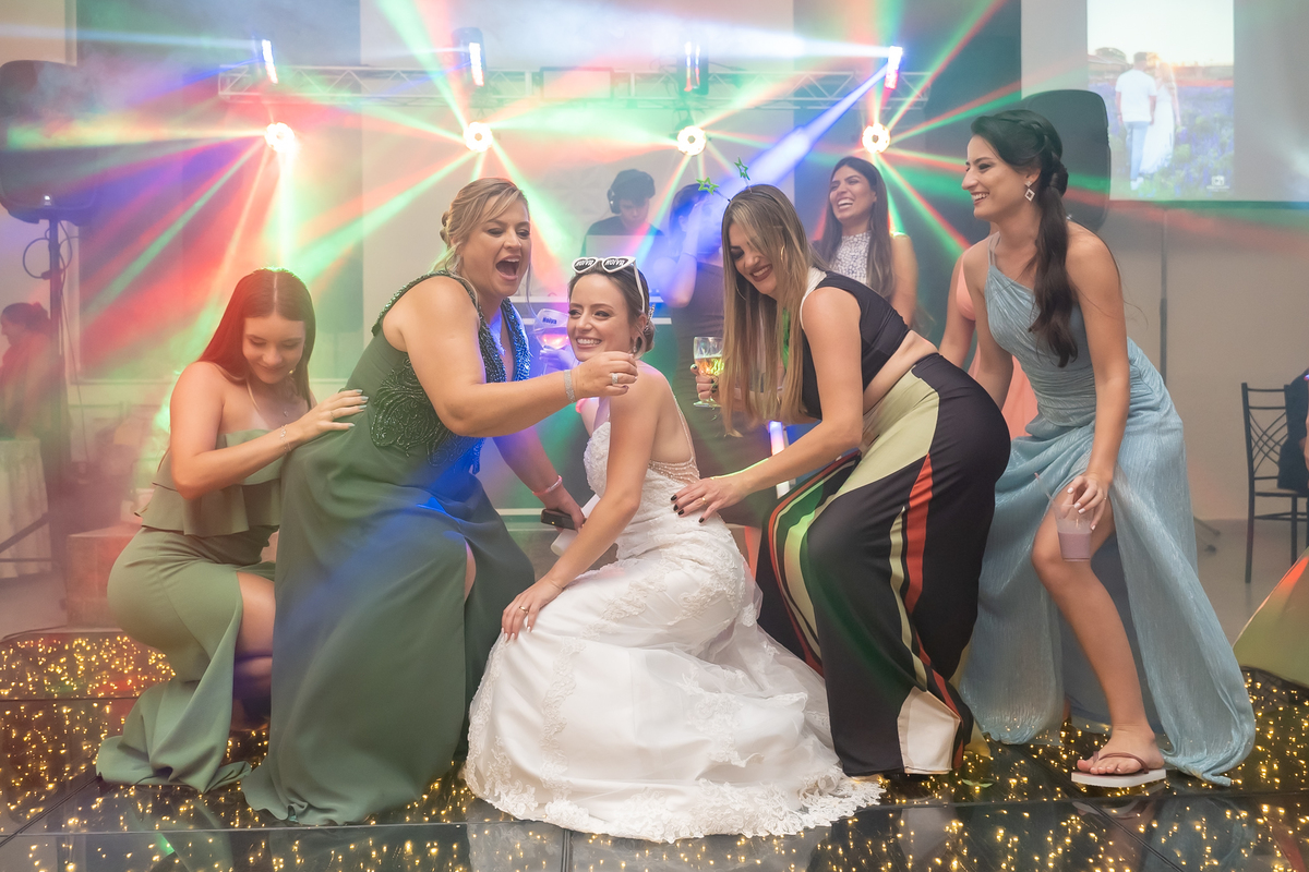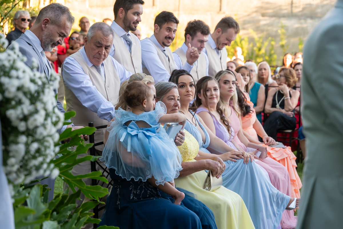 A passagem da gravata virou pura bagunça com o noivo e os padrinhos, e claro, não faltou o tão esperado lançamento do buquê.