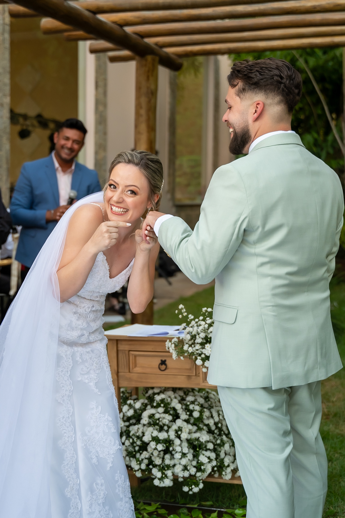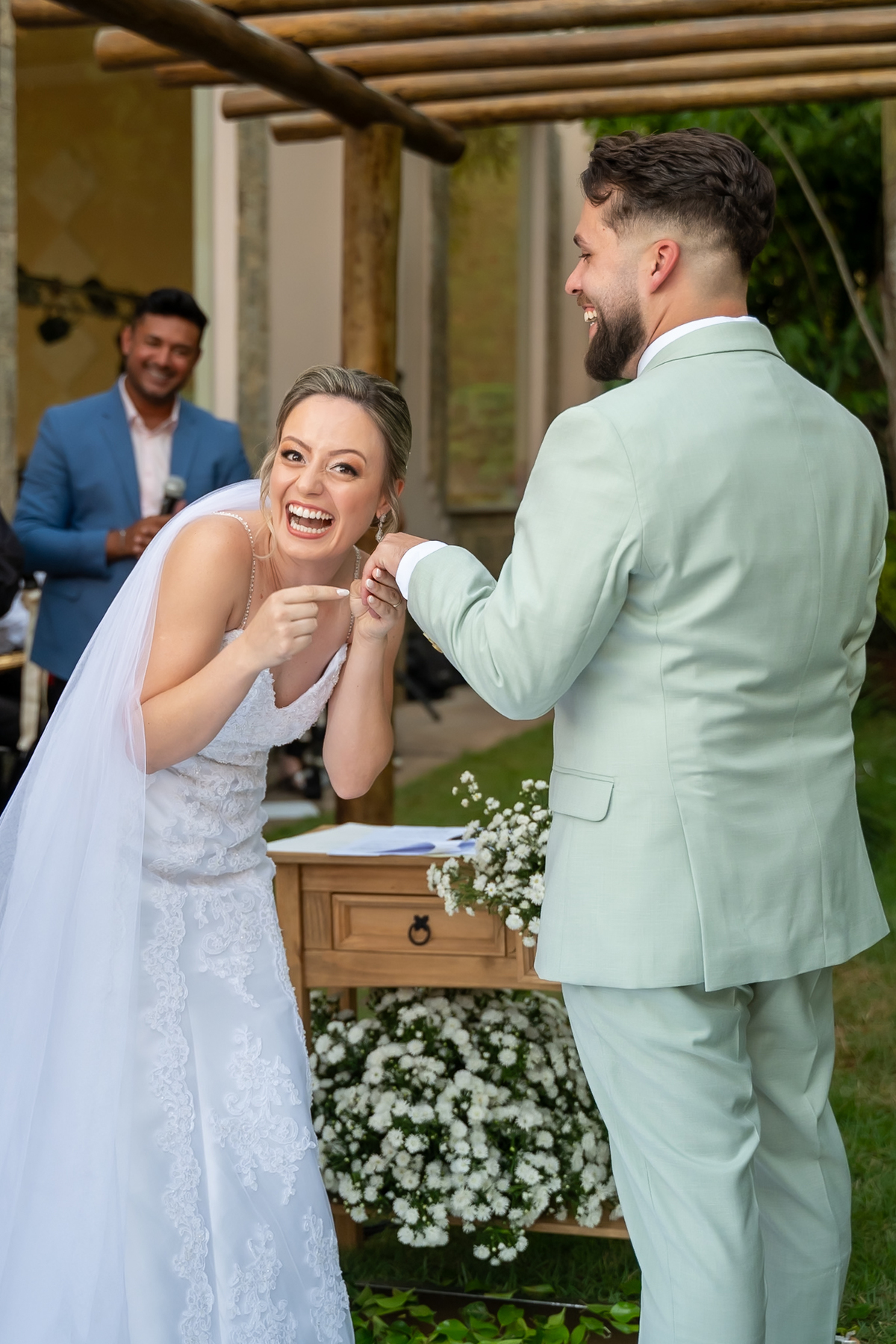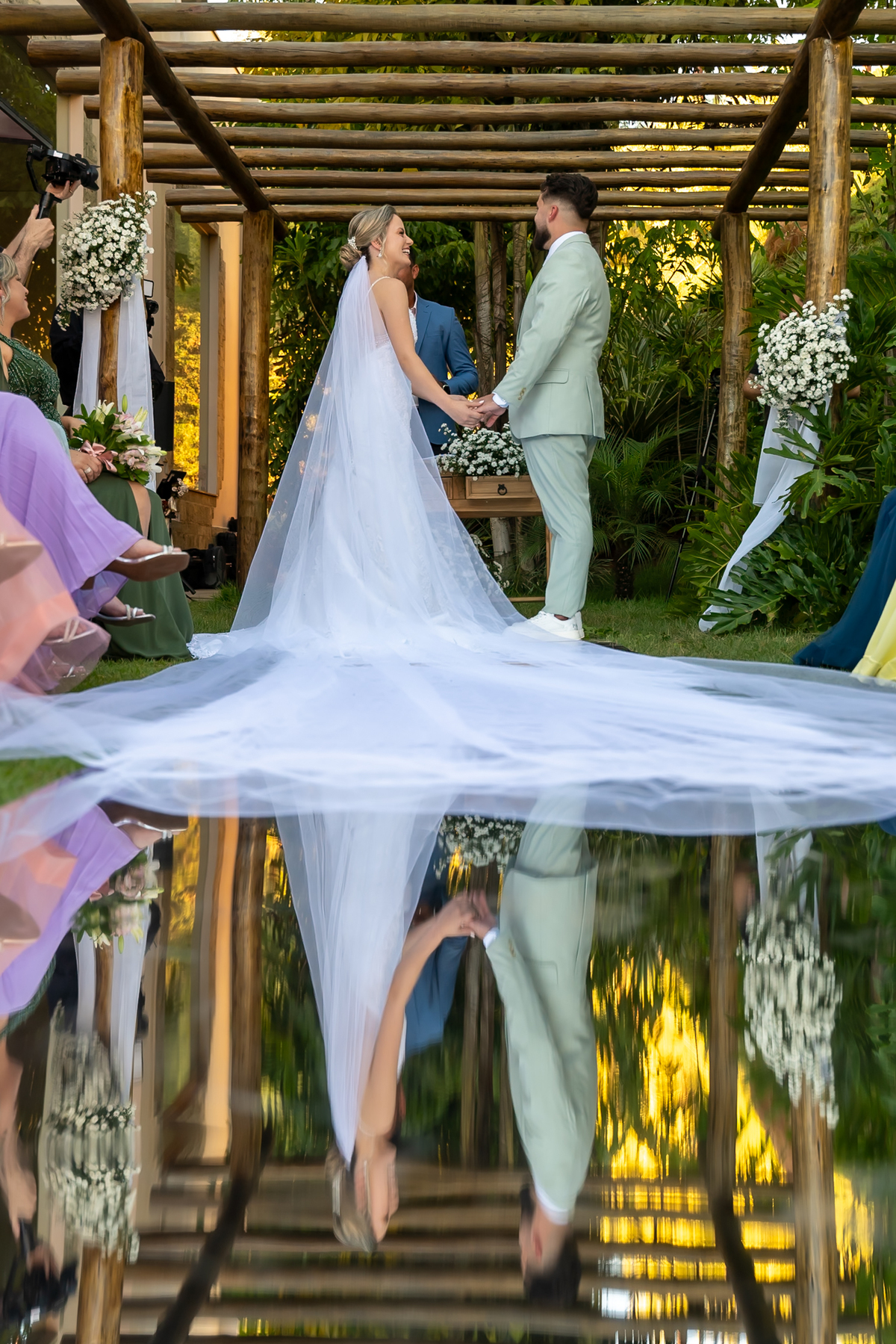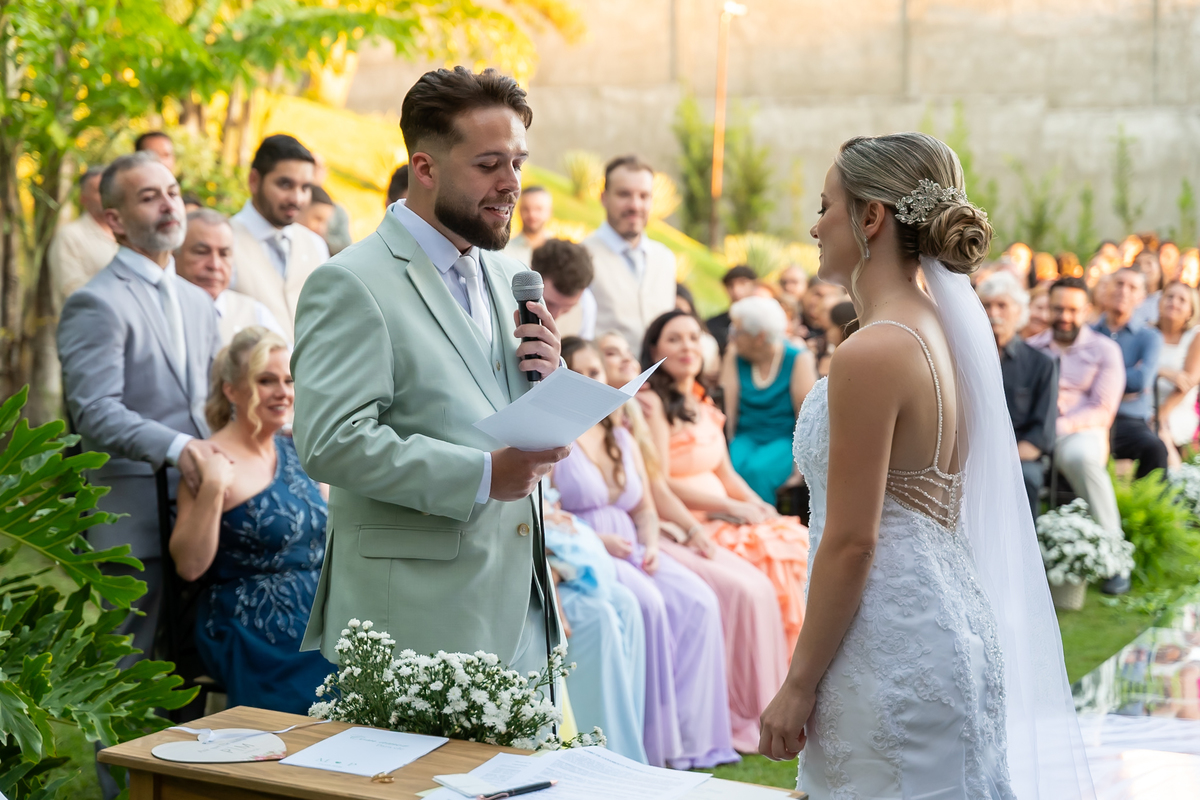 A cerimônia foi simplesmente emocionante! Conduzida pelo celebrante Fernando Oliveira, que encantou a todos com palavras marcantes. Monize e Paulo trocaram votos com leveza, alegria e muitos sorrisos, tornando tudo ainda mais especial.