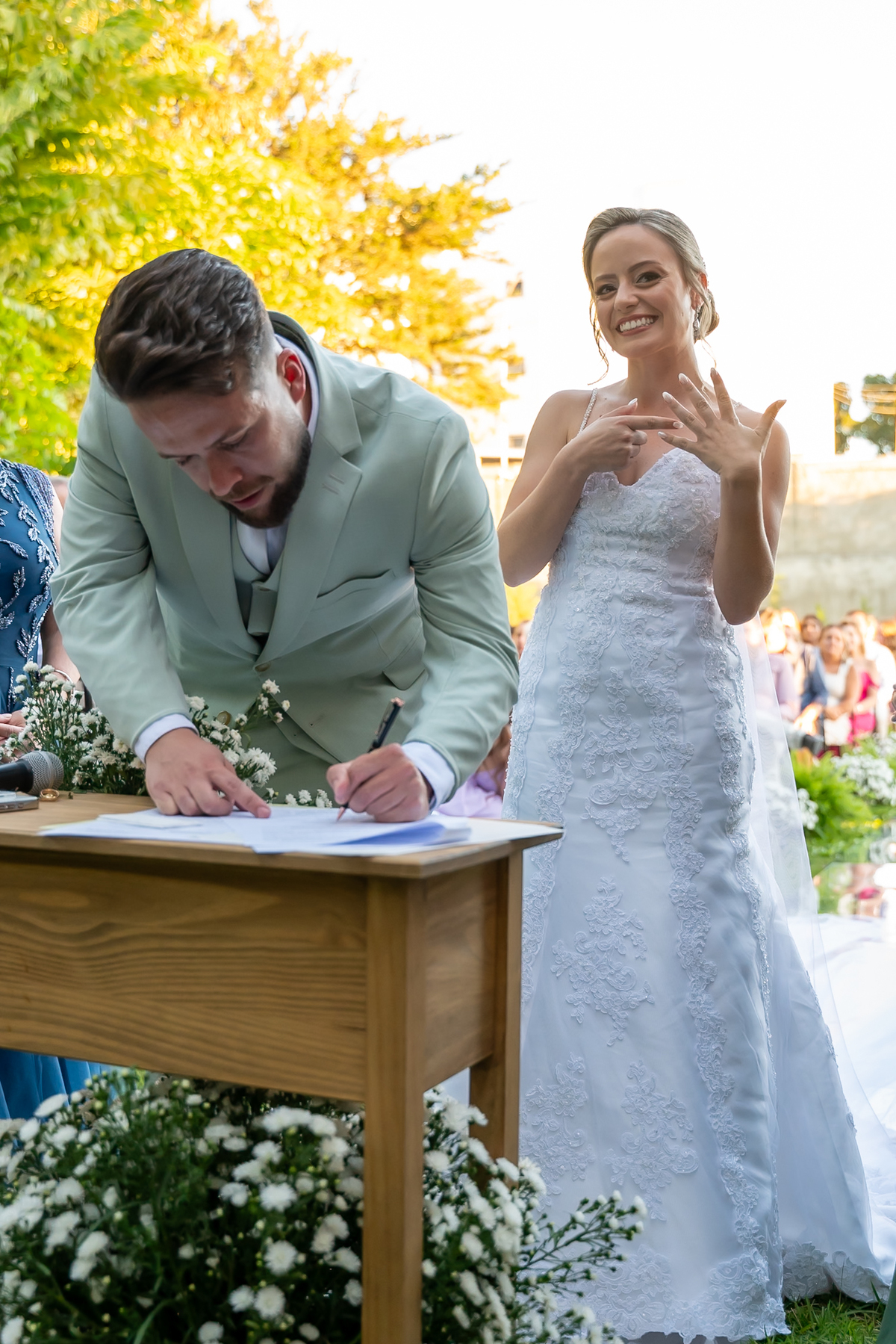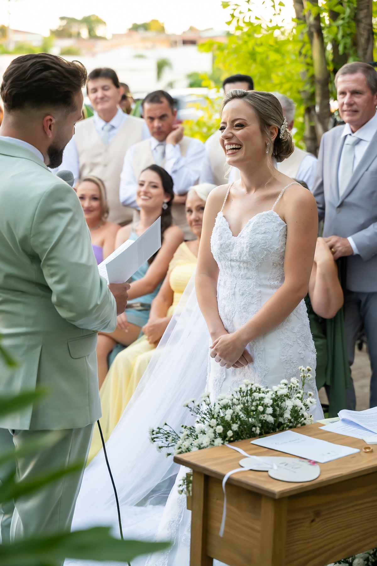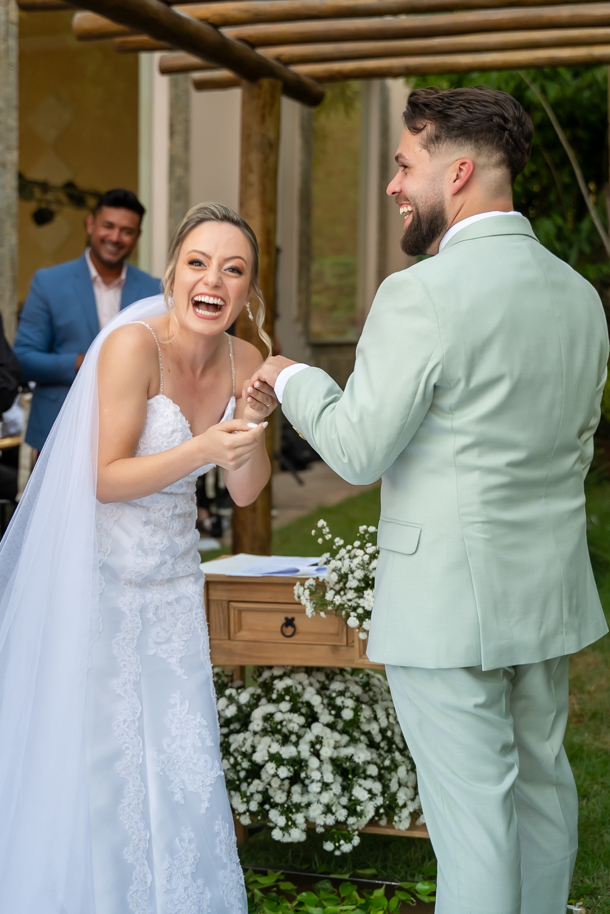 A cerimônia foi simplesmente emocionante! Conduzida pelo celebrante Fernando Oliveira, que encantou a todos com palavras marcantes. Monize e Paulo trocaram votos com leveza, alegria e muitos sorrisos, tornando tudo ainda mais especial.